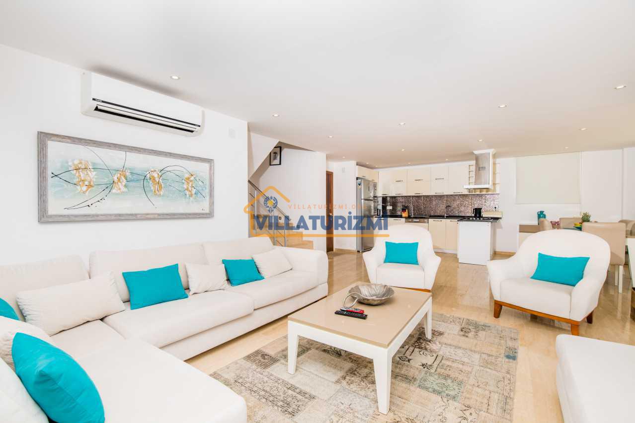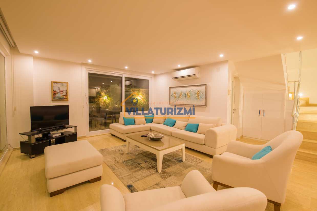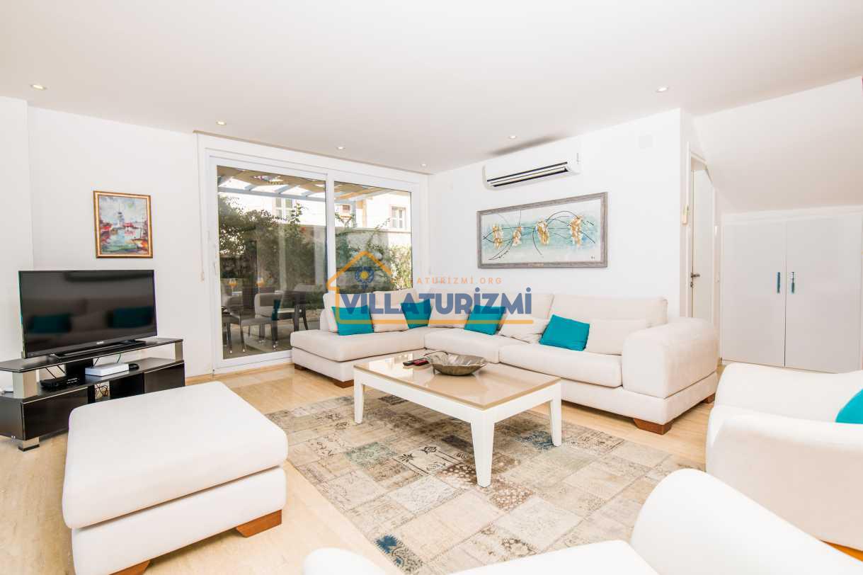 Salon : Zemin katta yer almaktadır. Deniz manzaralıdır. L tipi koltuk, TV , Klima