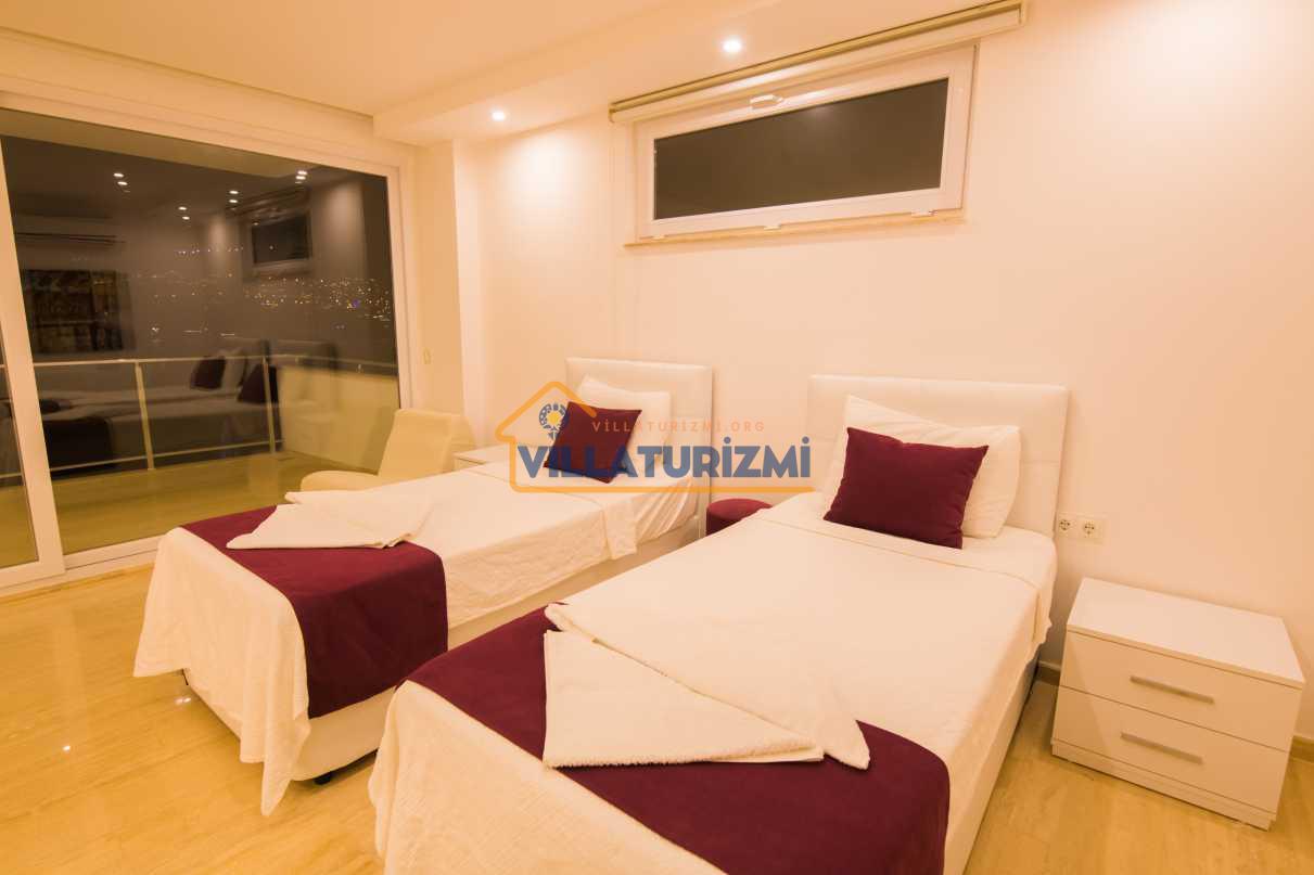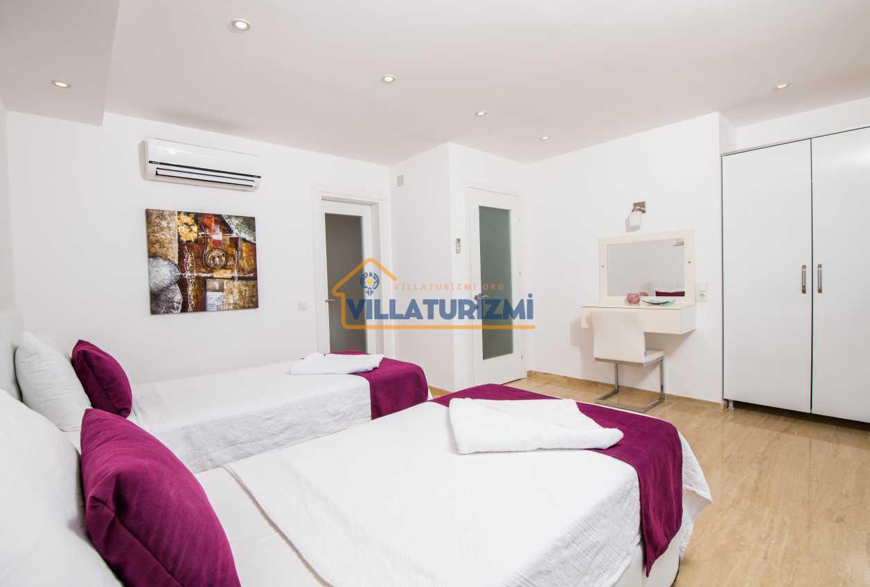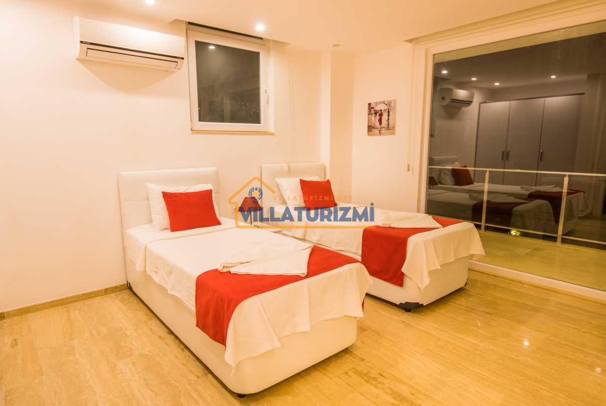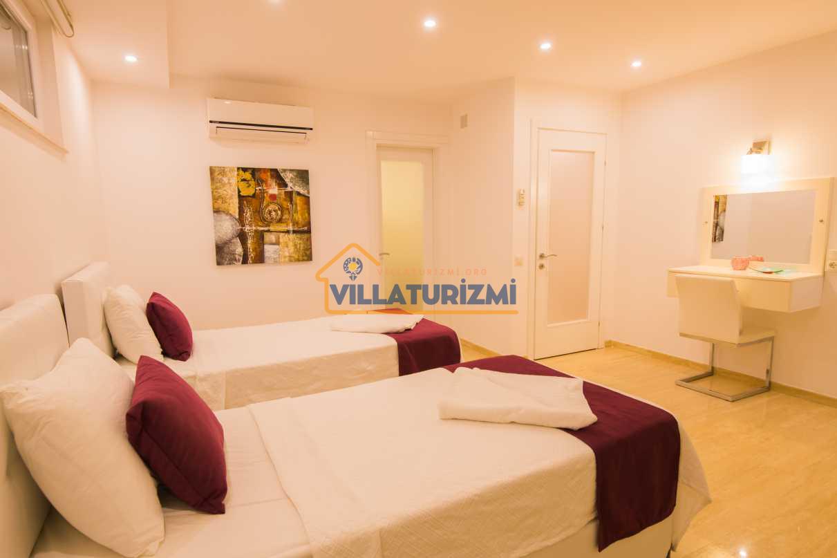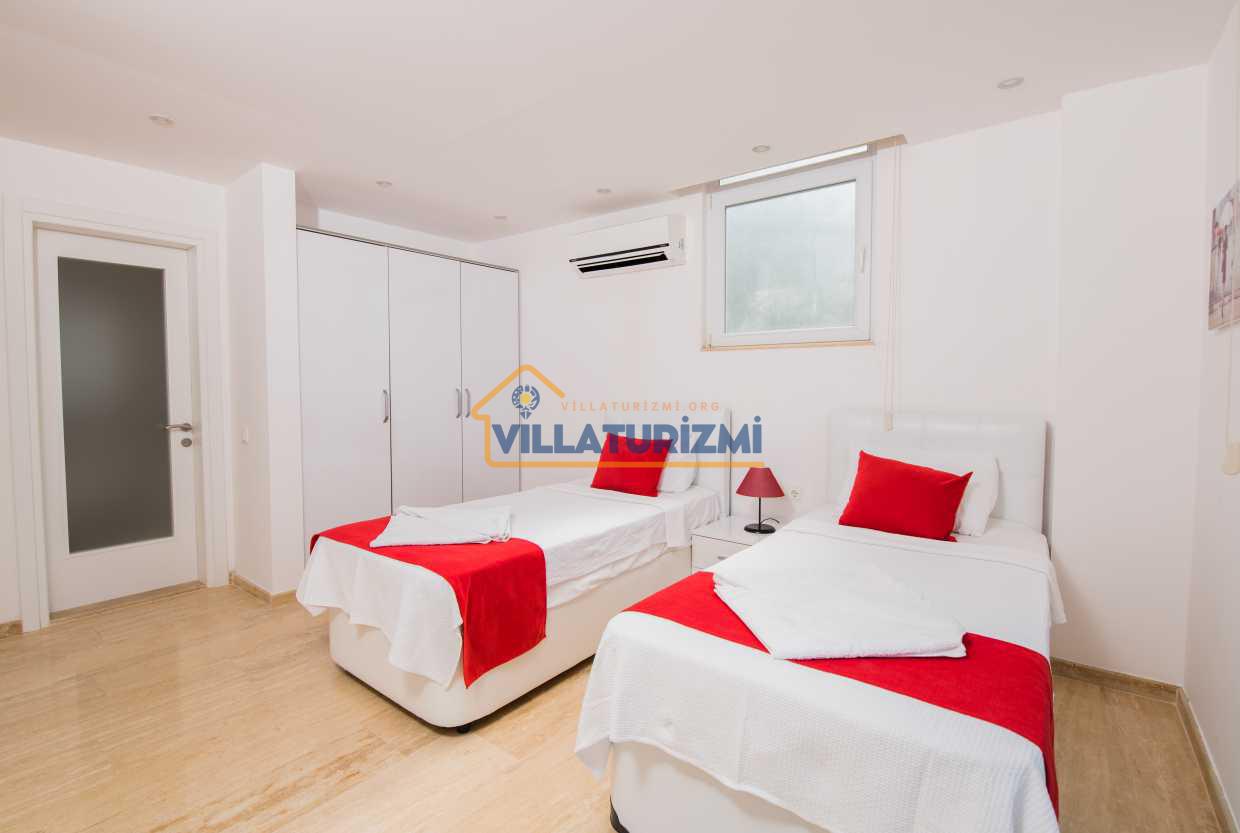 2. Yatak Odası : 2 adet tek kişilik yatak mevcuttur. klima, komidin, elbise dolabı, makyaj masası, saç kurutma makinesi ve banyo bulunmaktadır. Geniş bir balkona sahiptir, deniz manzaralıdır.