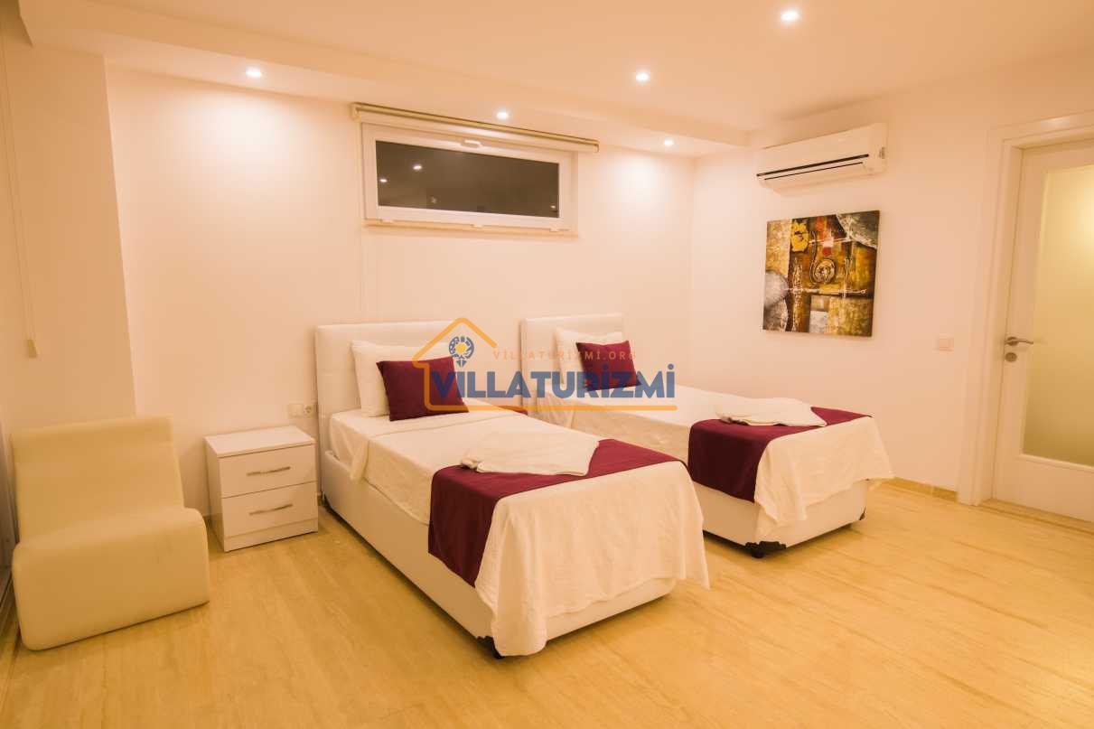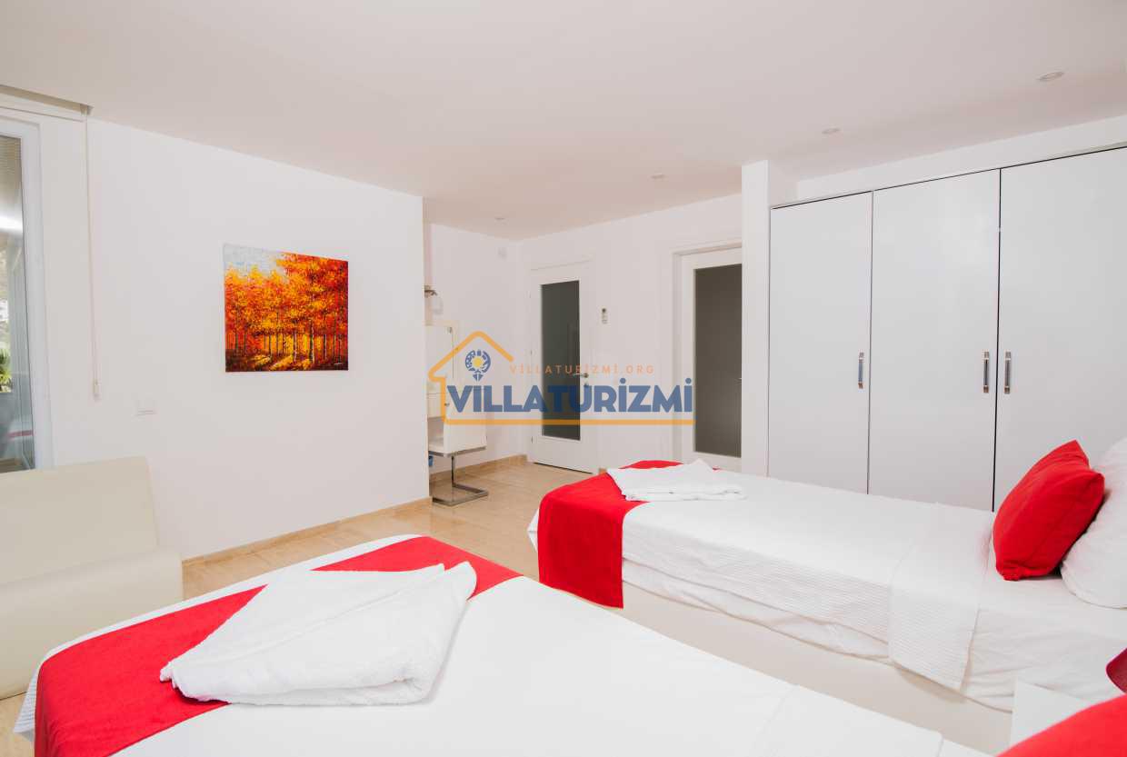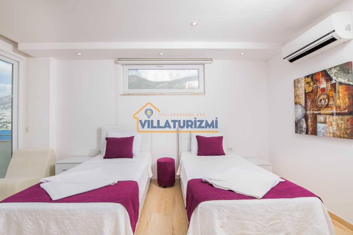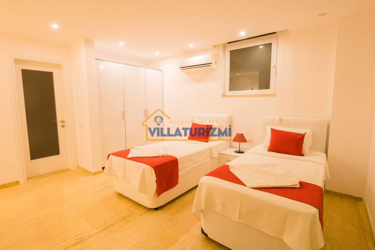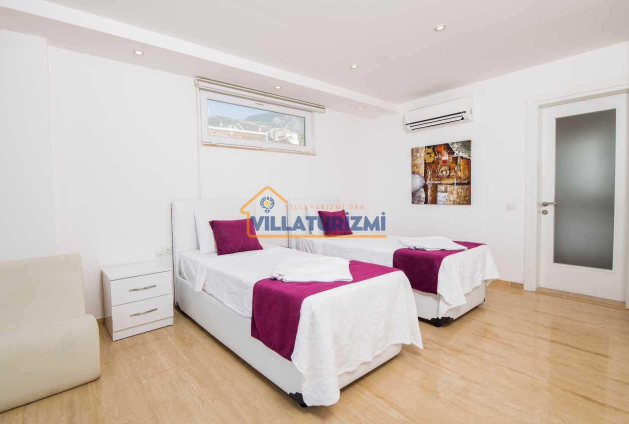 2. Yatak Odası : 2 adet tek kişilik yatak mevcuttur. klima, komidin, elbise dolabı, makyaj masası, saç kurutma makinesi ve banyo bulunmaktadır. Geniş bir balkona sahiptir, deniz manzaralıdır.