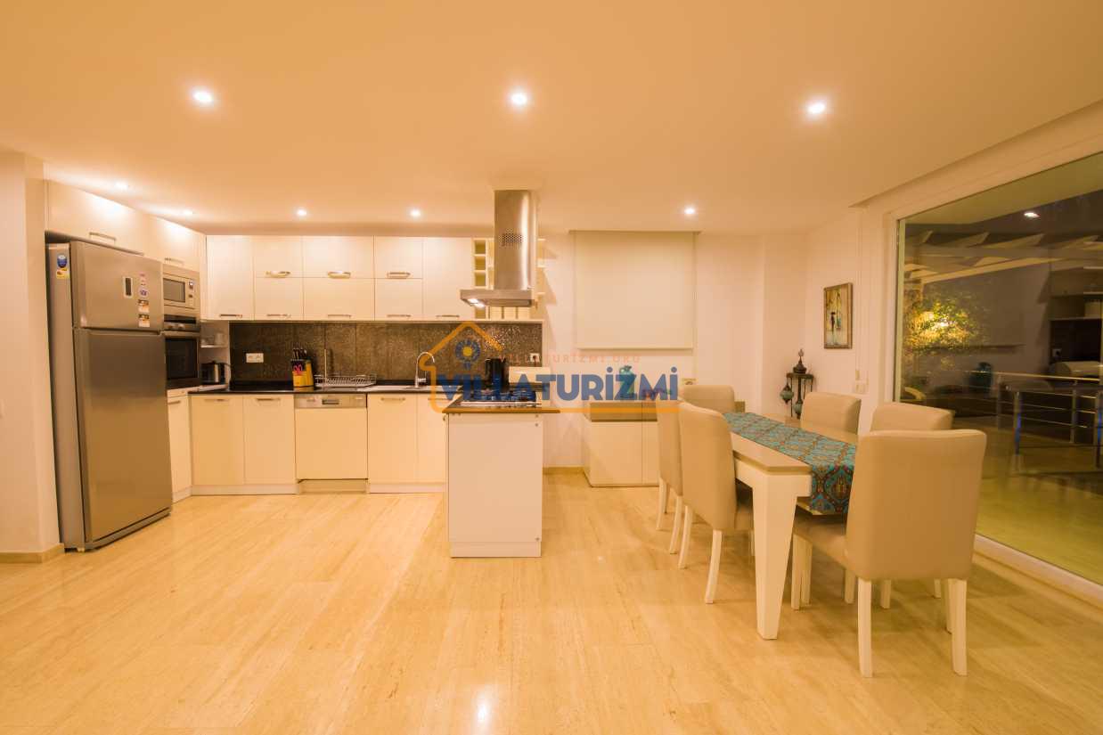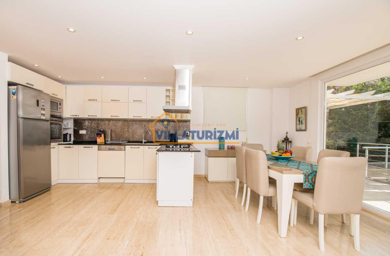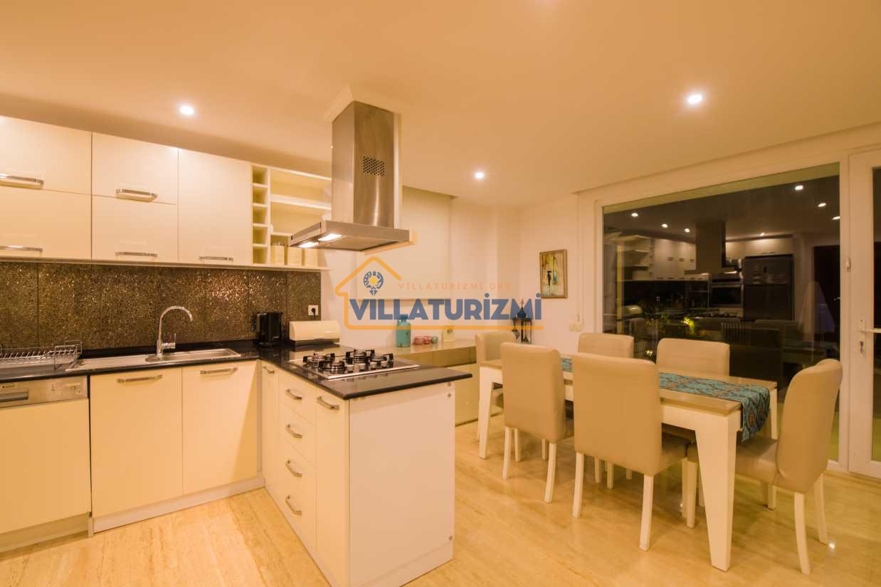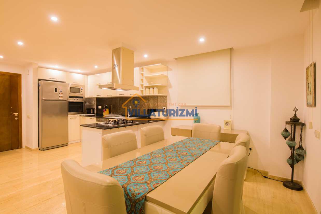 Mutfak : Zemin katta yer almaktadır. Modern Amerikan tipi Mutfak. 6 kişilik masa ve sandalye, fırın, mikro dalga, 6 kişilik yemek takımı, tost makinesi, tava, çay-su bardakları tencereler, çatal bıçak vb.