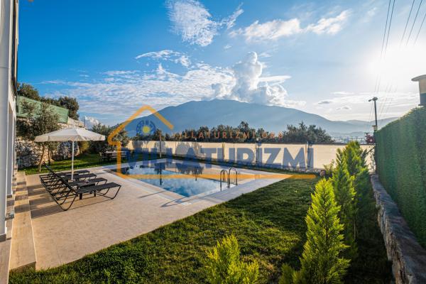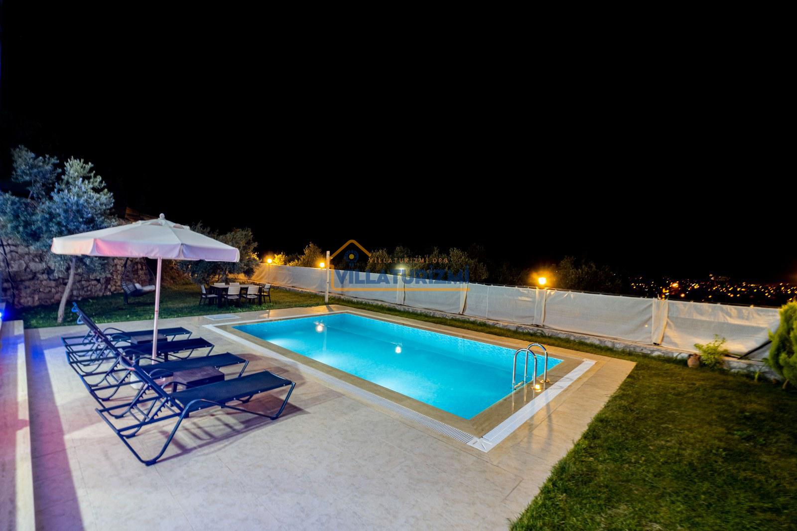Havuz Terası:Tamamen villaya ait olan havuz çevresinde konaklayacak kişi sayısına yeterli şezlong ve şemsiye bulunmaktadır.