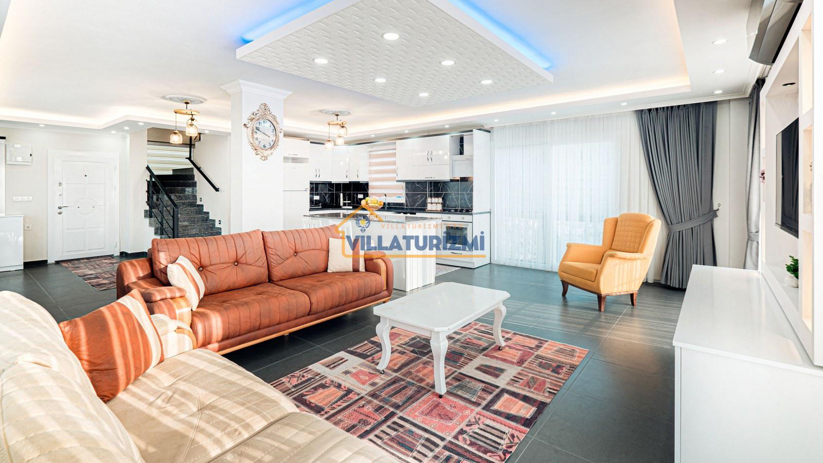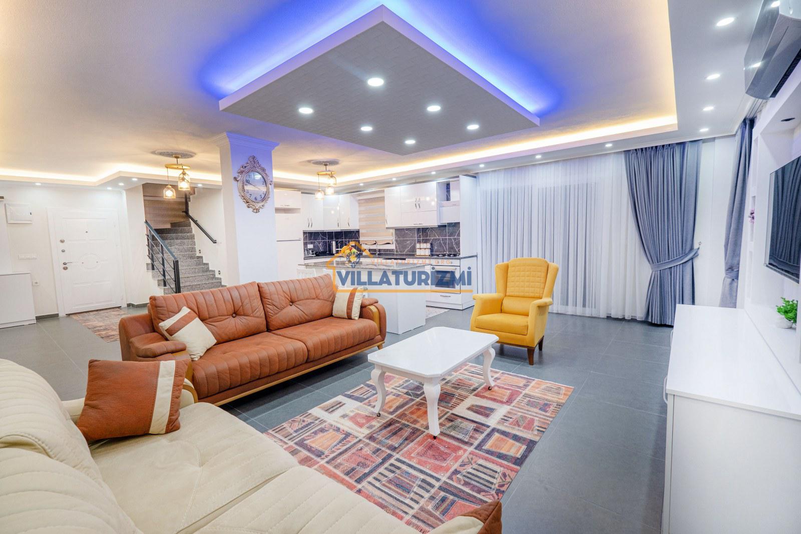 Salon: Villamızın salonunda; oturma grubu, TV, uydu alıcısı, klima, sehpa ve kablosuz modem yer almaktadır.