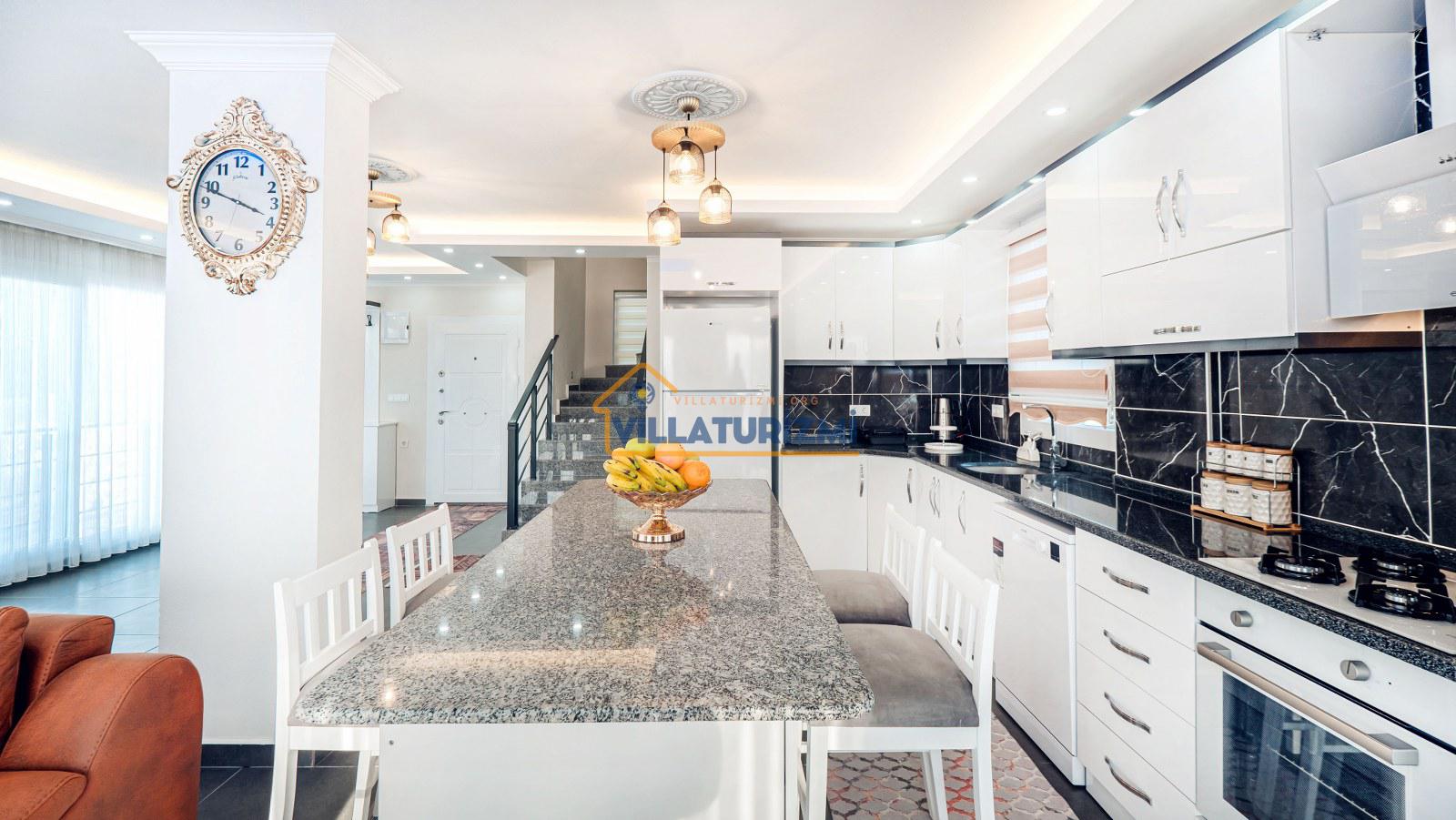 Mutfak: Lüks ve geniş bir mutfağa sahiptir. Buzdolabı, bulaşık makinası, çamaşır makinesi, fırın, 4´lü ocak, kettle, 8 kişilik yemek takımı, tava, tencereler, çatal, bıçak vb. Mutfağımız ´da misafirlerimiz için her şey düşünülmüştür.