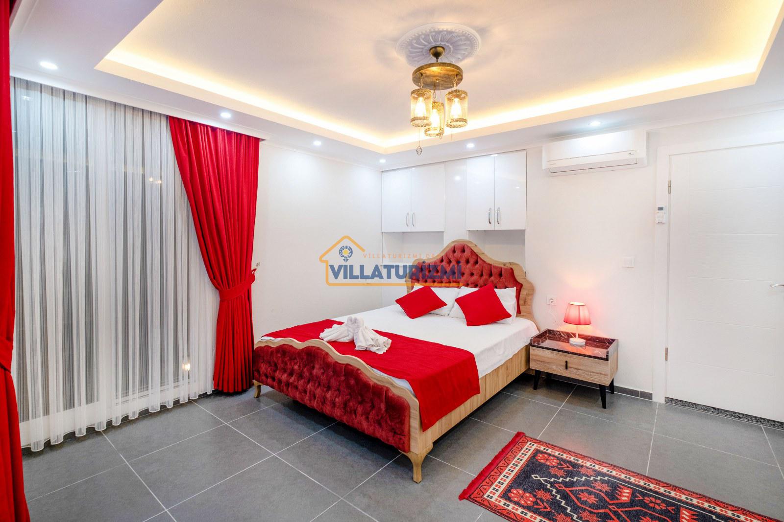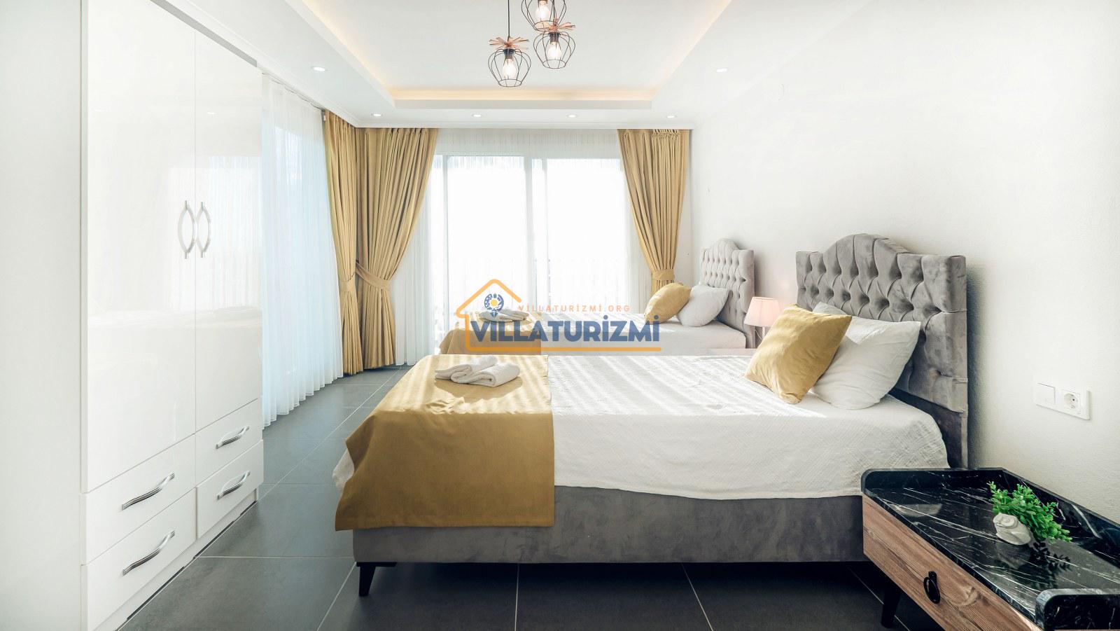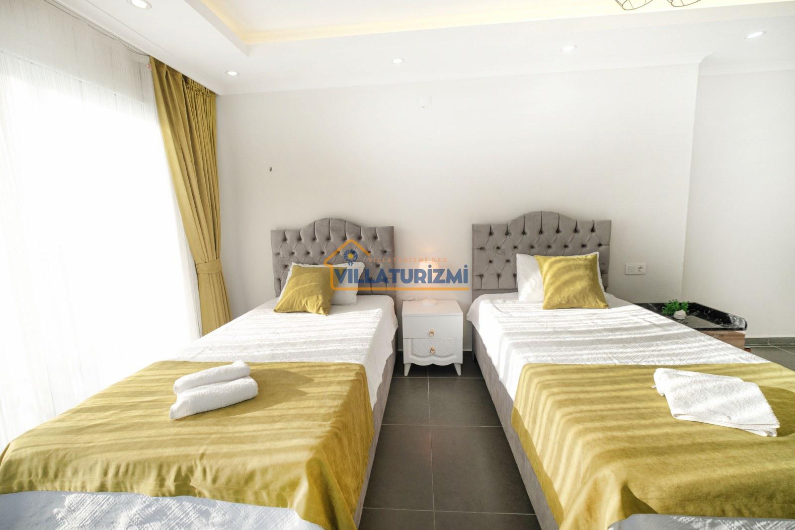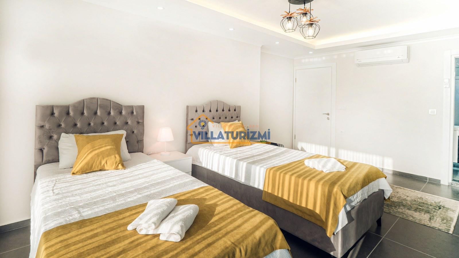Özel havuzlu yazlık villamız, 2 yatak odasında 1 çift kişilik ve 2 tek kişilik yatak bulunmaktadır.