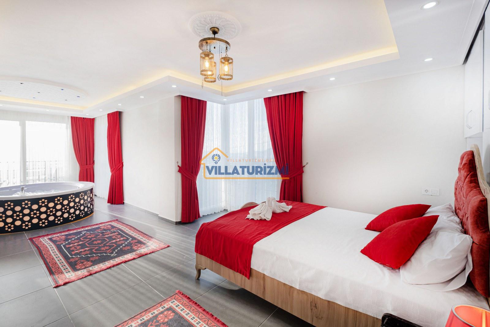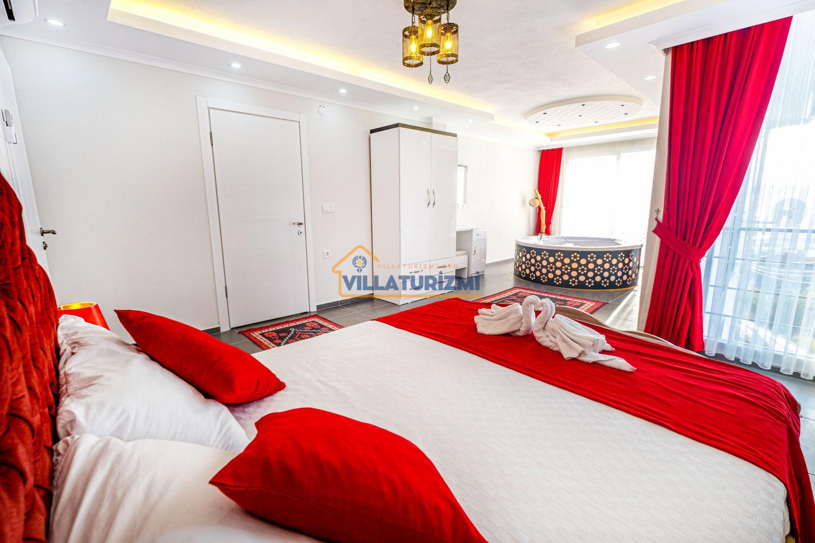 1.Yatak Odası:1 adet çift kişilik yatak, komodin, klima banyo jakuzi bulunmaktadır.