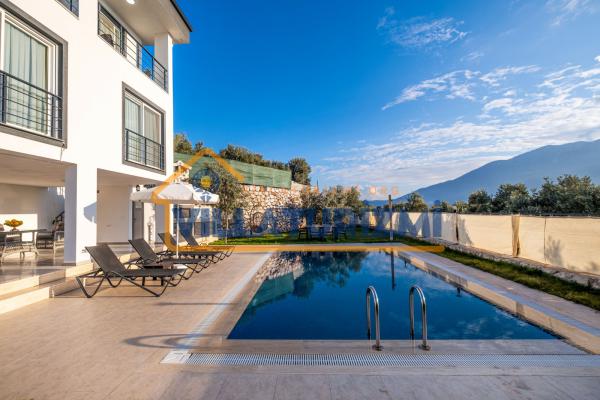 Özellikler: Özel açık yüzme havuzu, güneşlenme alanı, şezlonglar, özel bahçe, özel park yeri ve mangal alanı.
