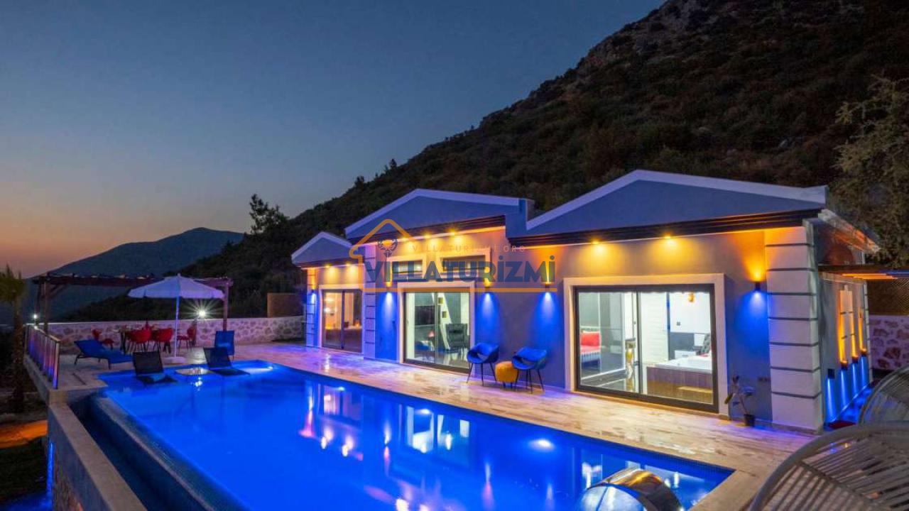 Villa İpek, Kalkan Üzümlü mevkiinde konumlanmış panoramik deniz manzaralı, doğa ile iç içe, korunaklı havuzlu, jakuzisi ile konforlu balayı villası seçeneklerimizdendir.