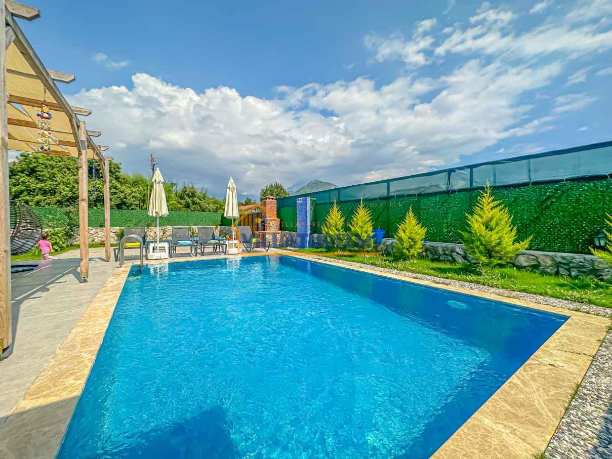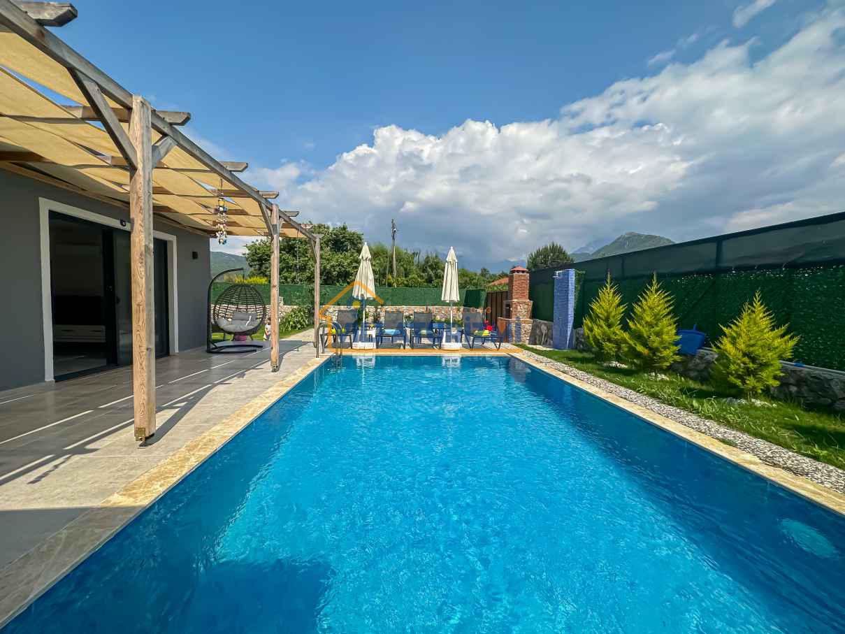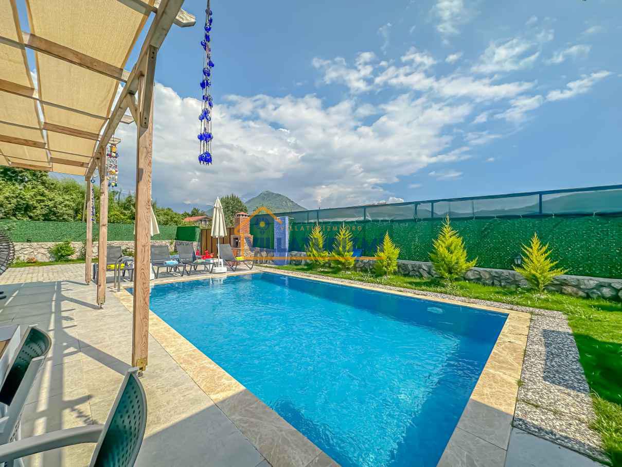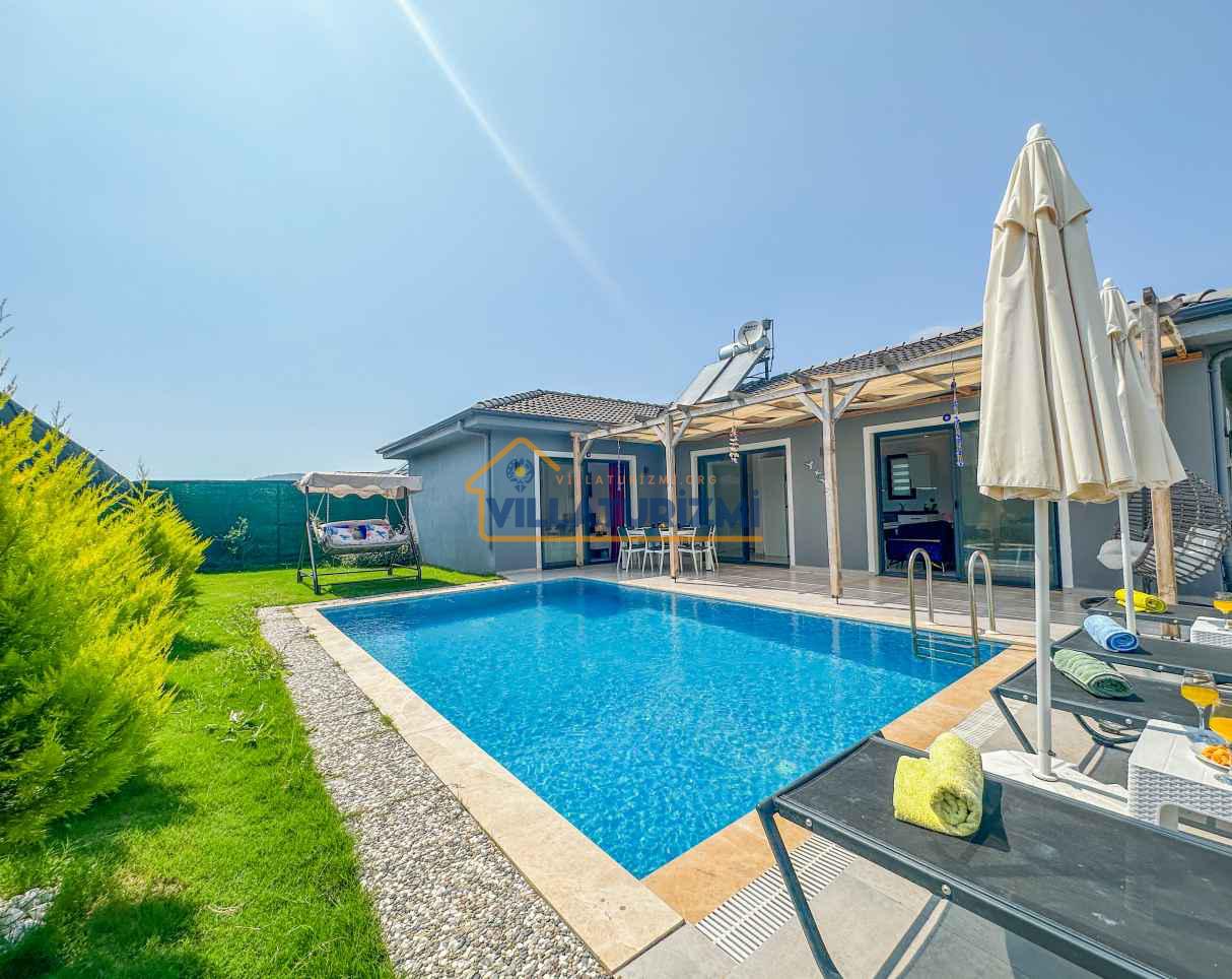 Özellikler: Özel açık yüzme havuzu, güneşlenme alanı, şezlonglar, özel bahçe, özel park yeri ve mangal alanı.