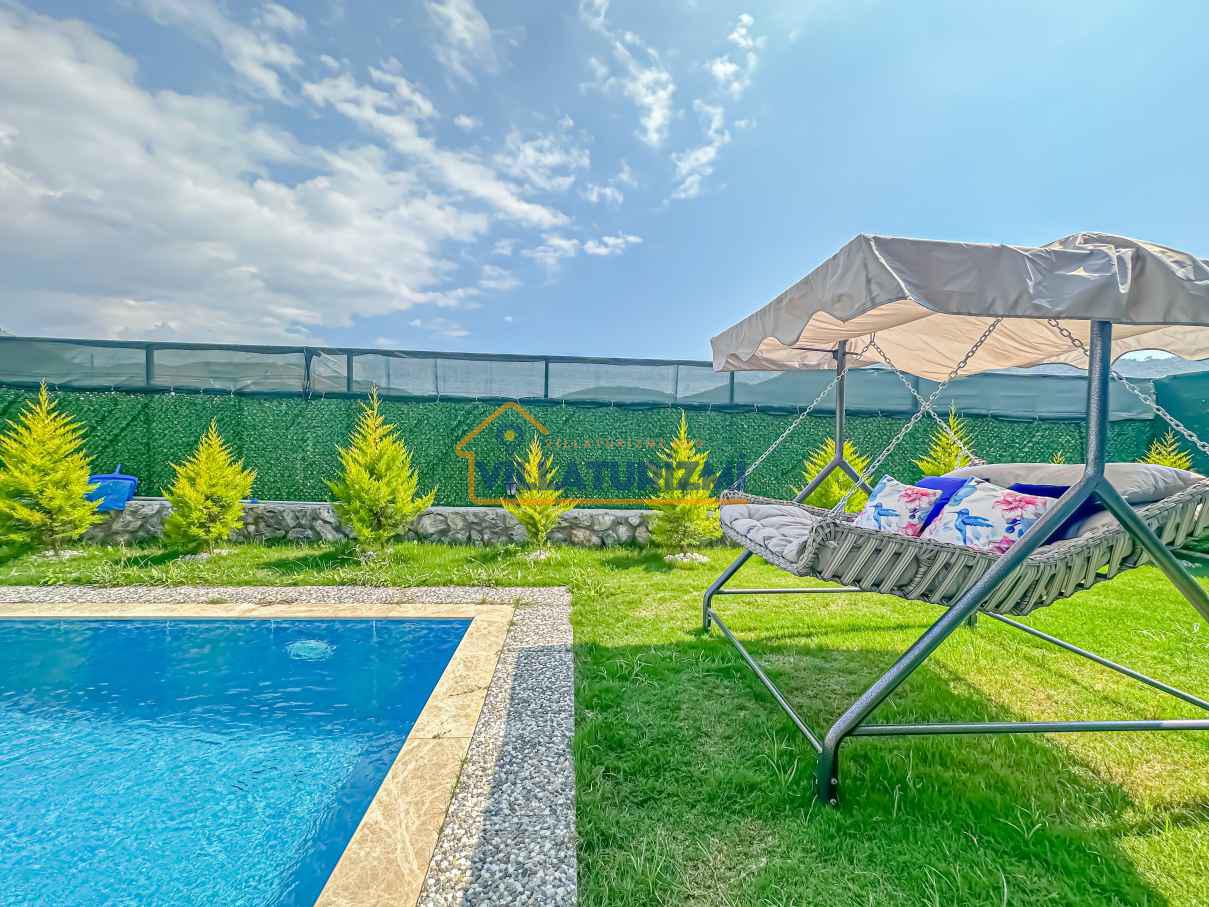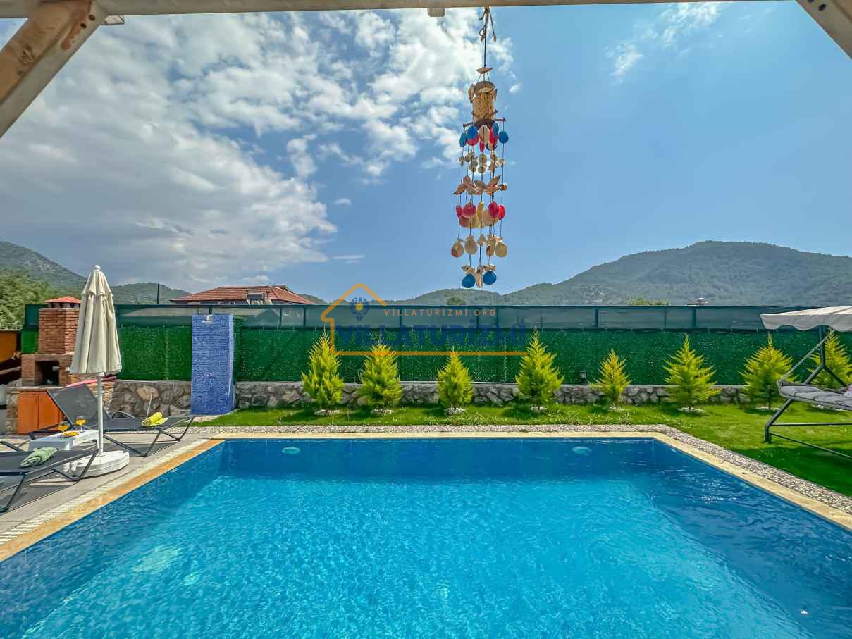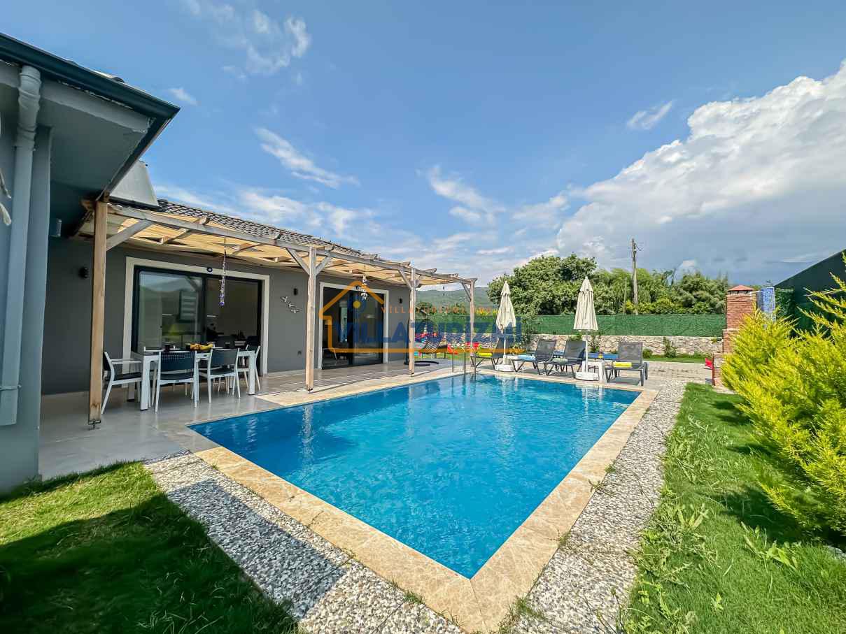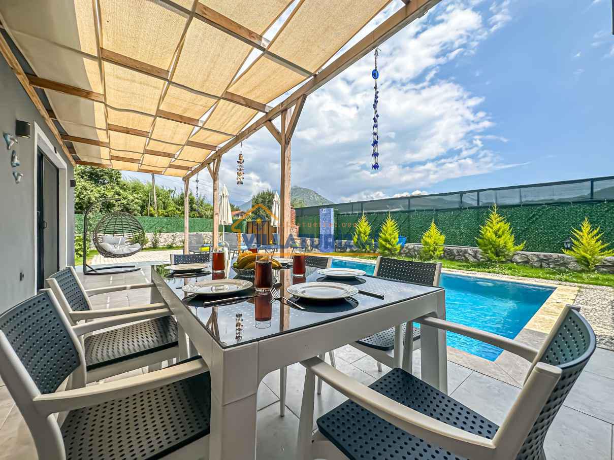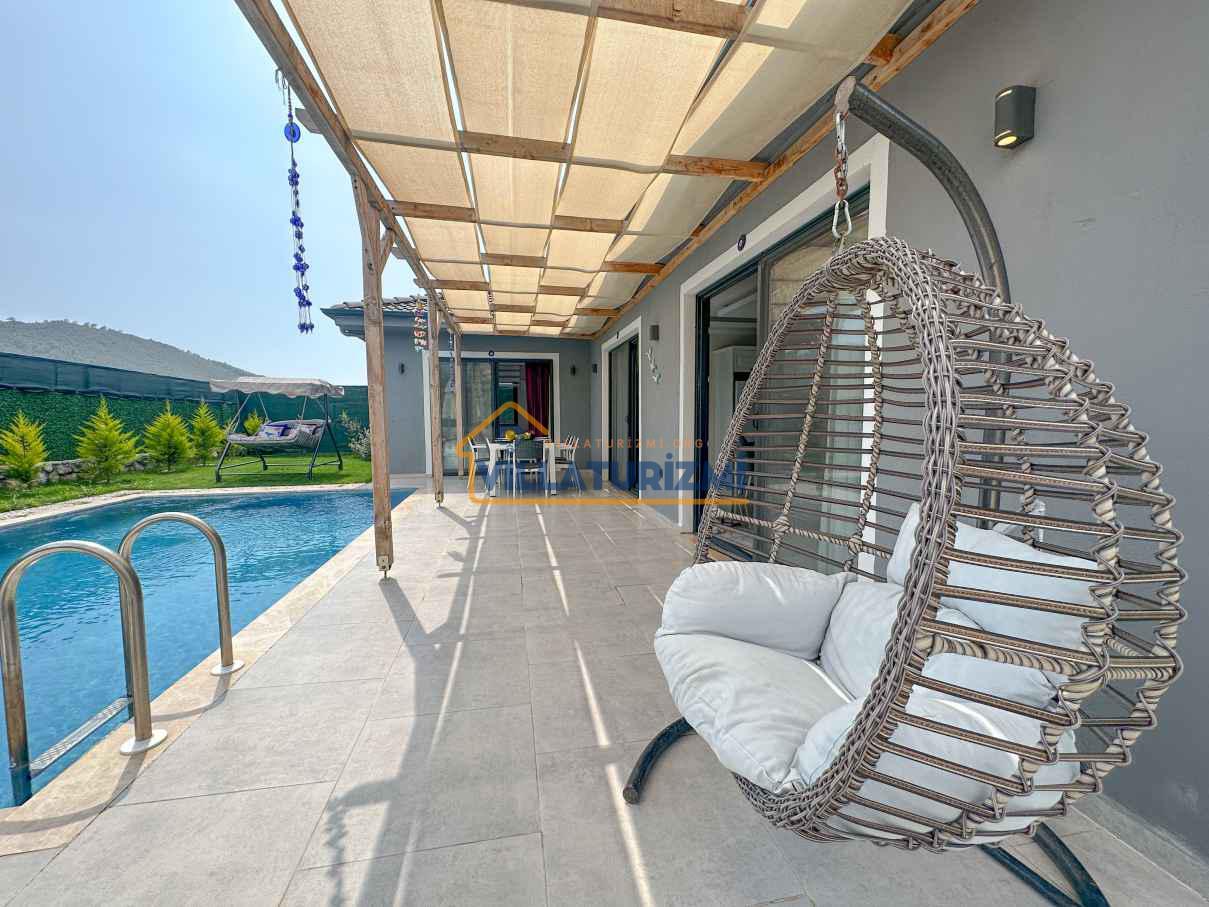 Özellikler: Özel açık yüzme havuzu, güneşlenme alanı, şezlonglar, özel bahçe, özel park yeri ve mangal alanı.
