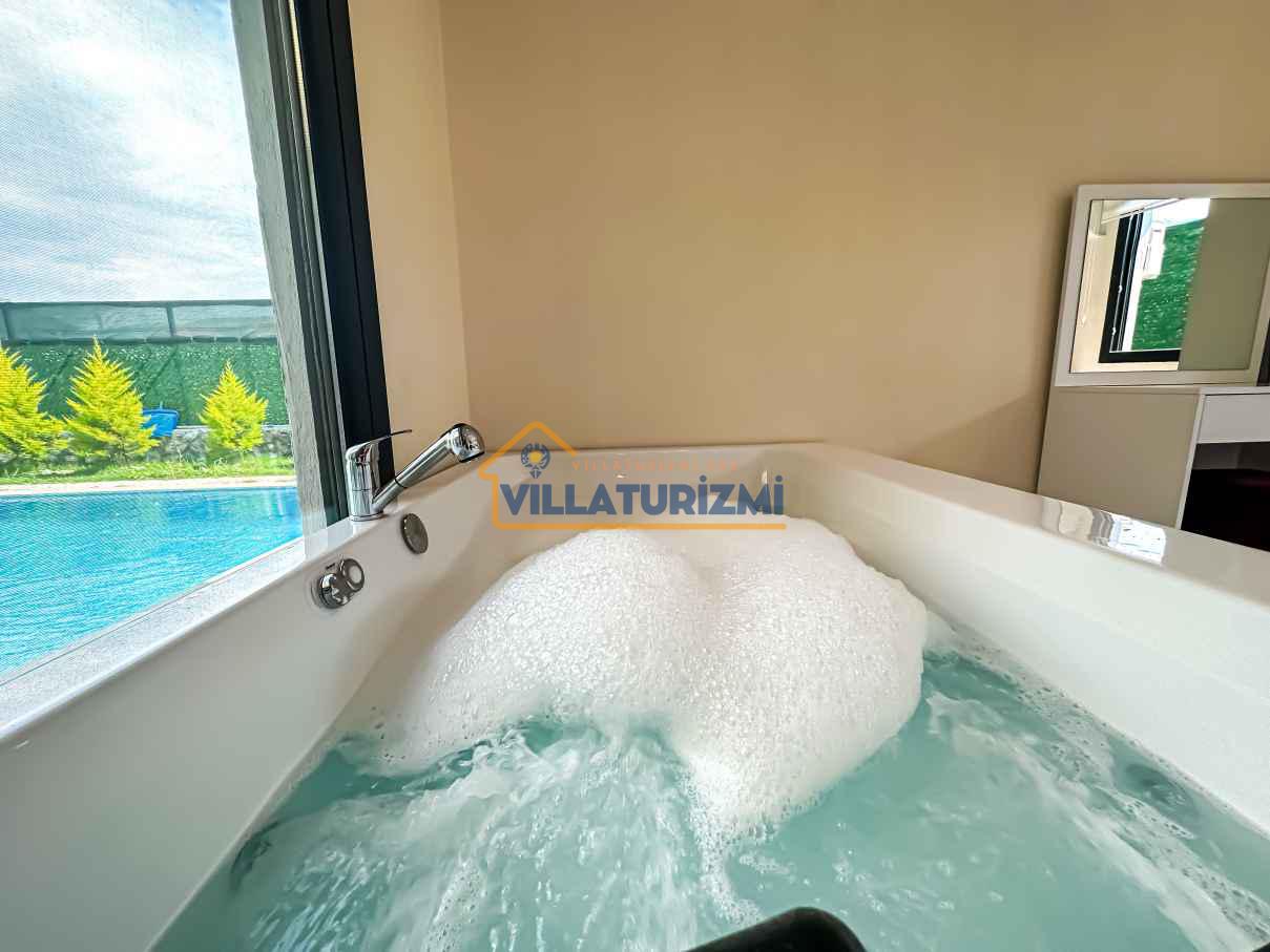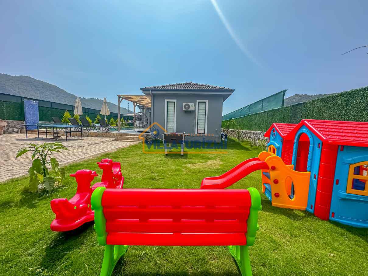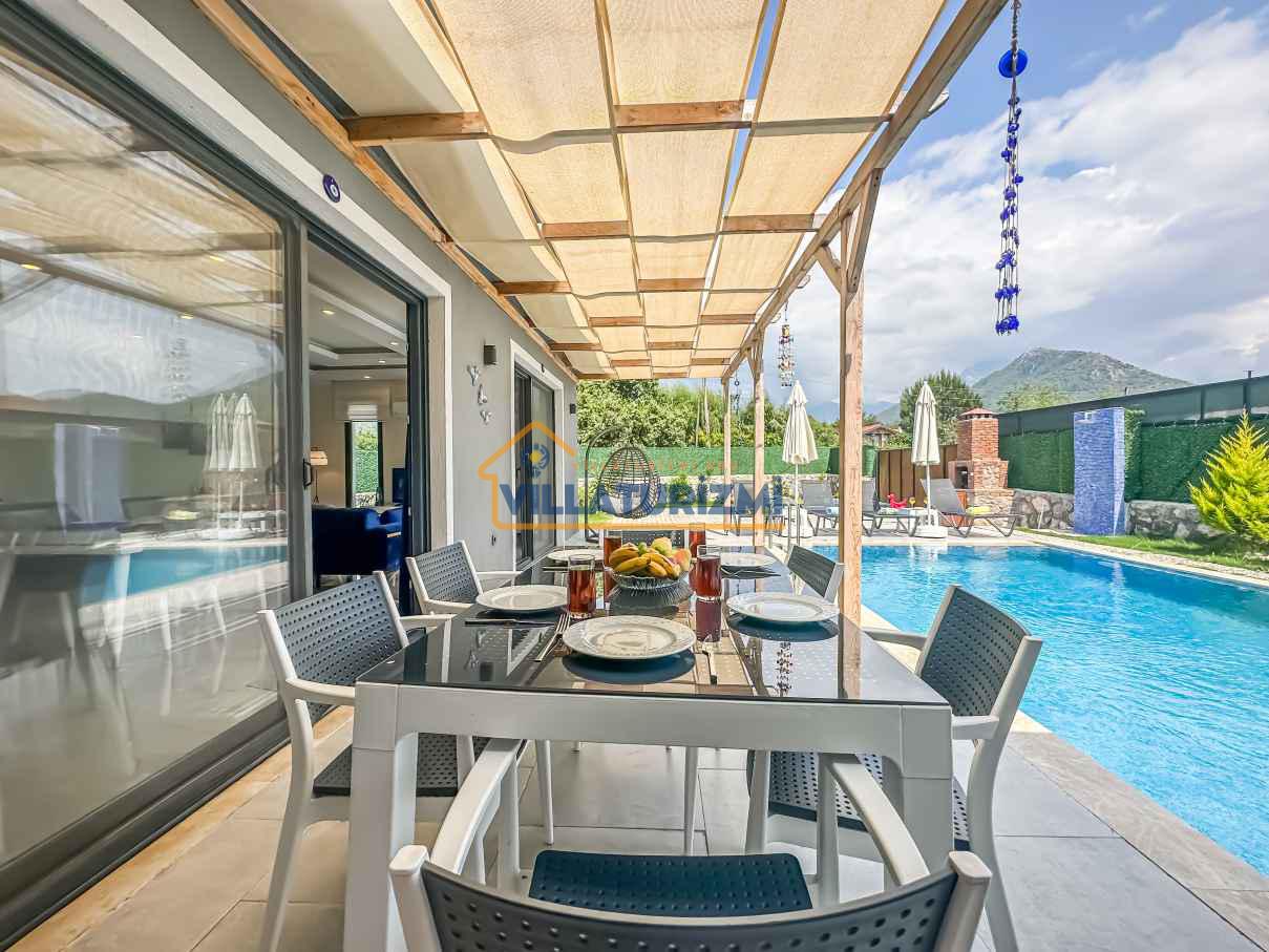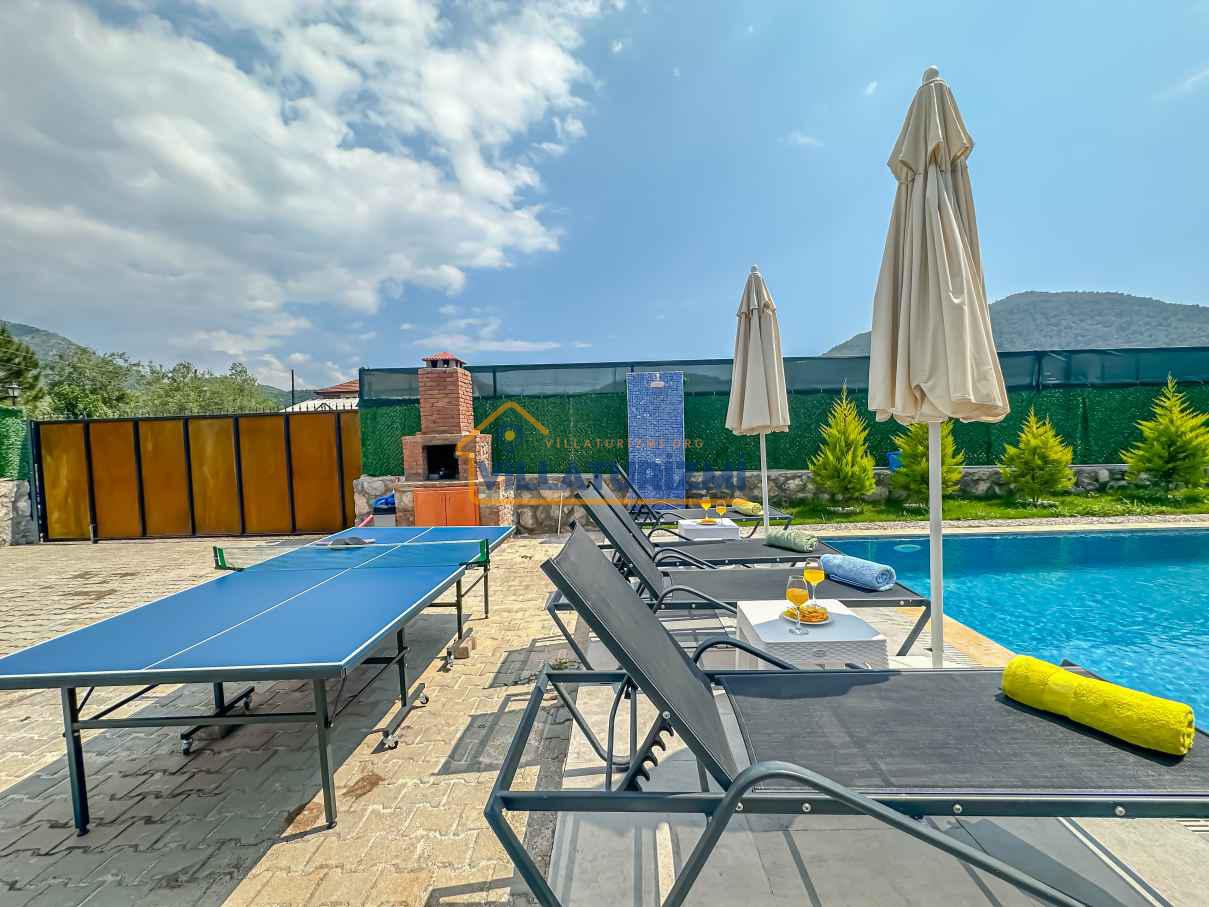 Özellikler: Özel açık yüzme havuzu, güneşlenme alanı, şezlonglar, özel bahçe, özel park yeri ve mangal alanı.