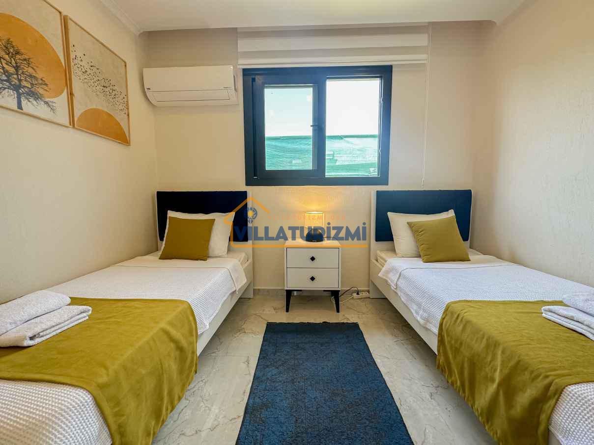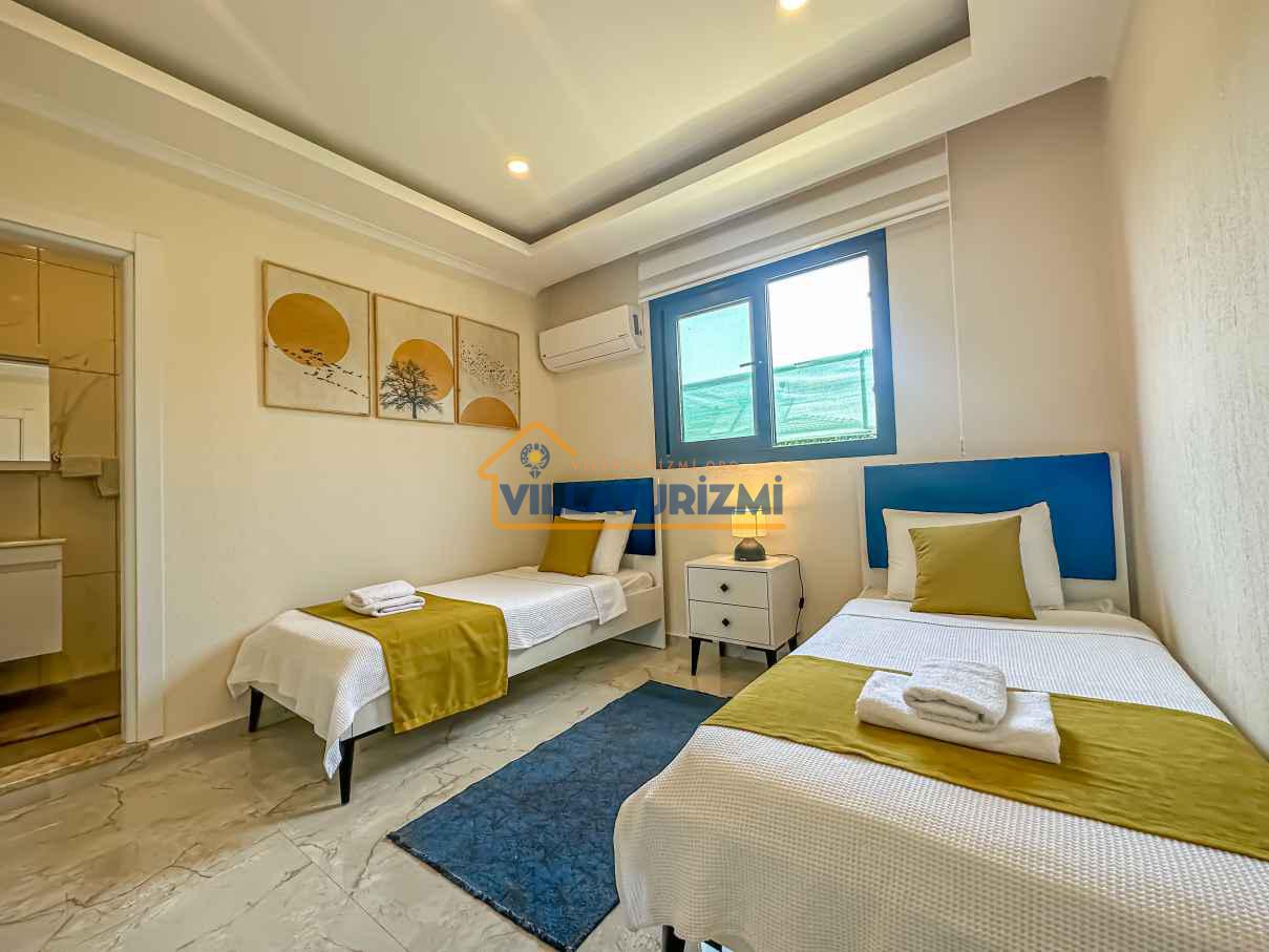2.Yatak odası: 2 adet tek kişilik yatak, elbise dolabı, saç kurutma makinesi, klima, banyo ve WC vardır.