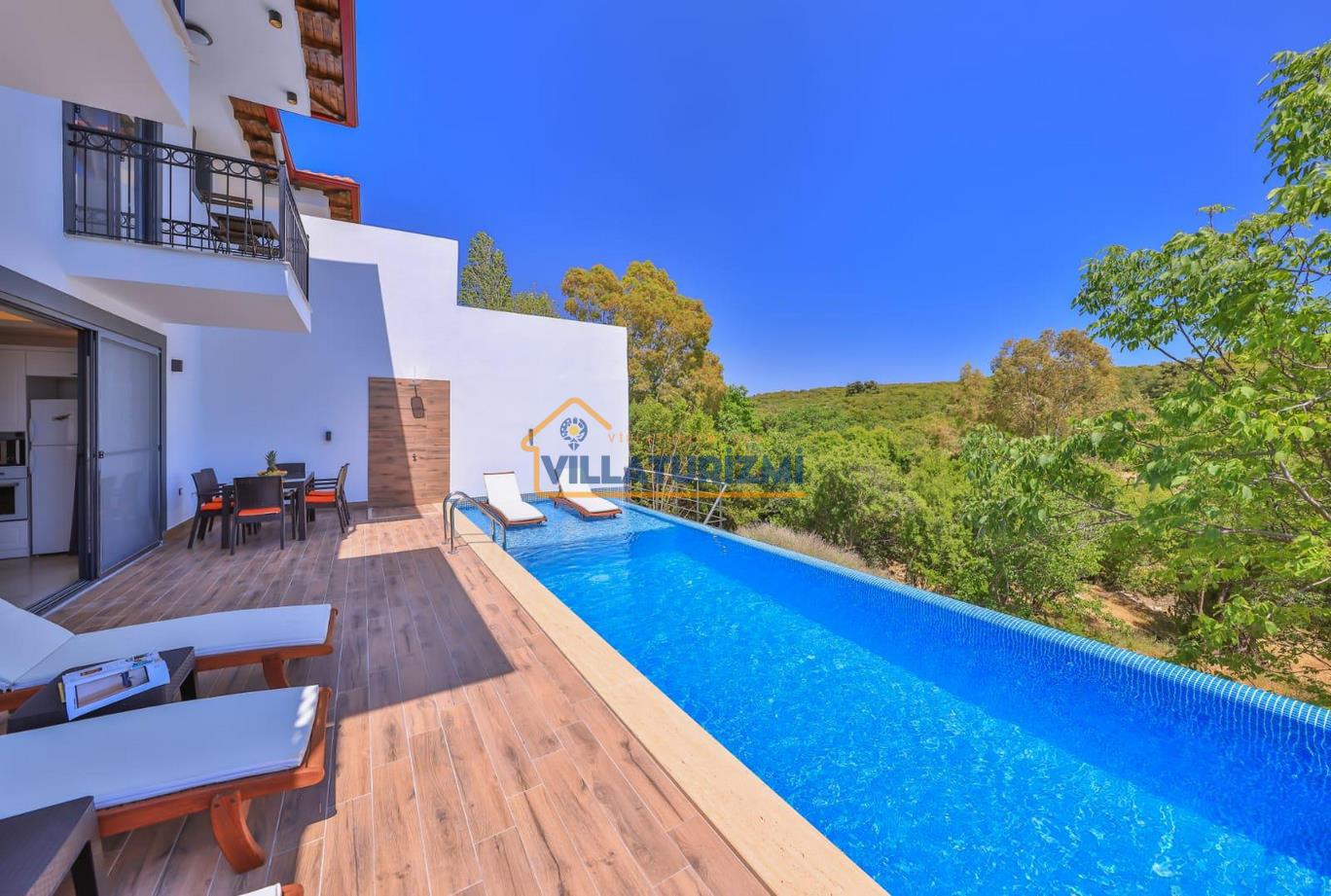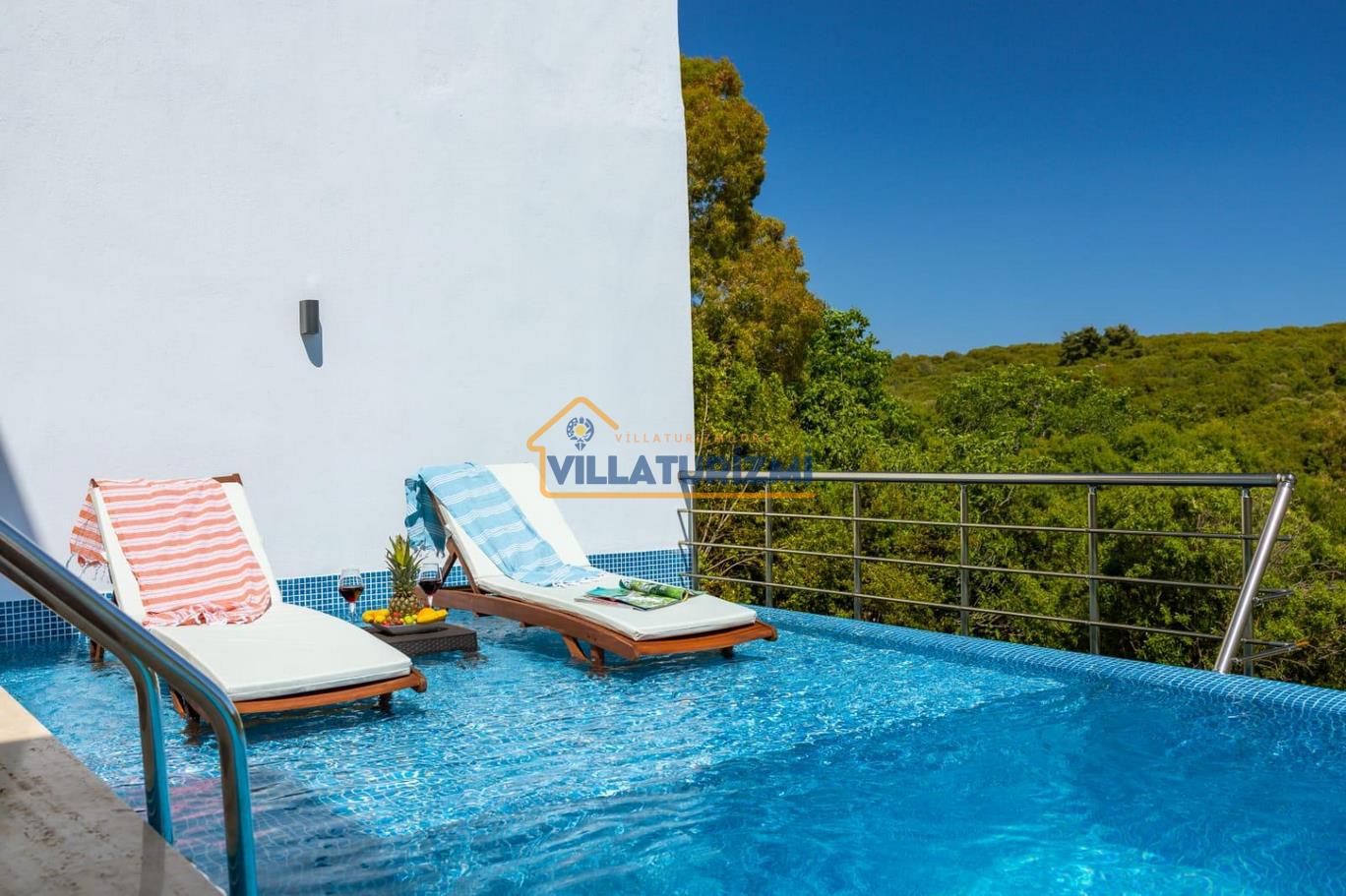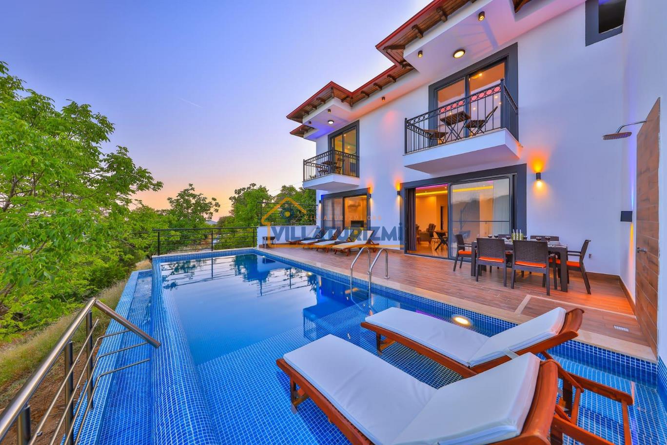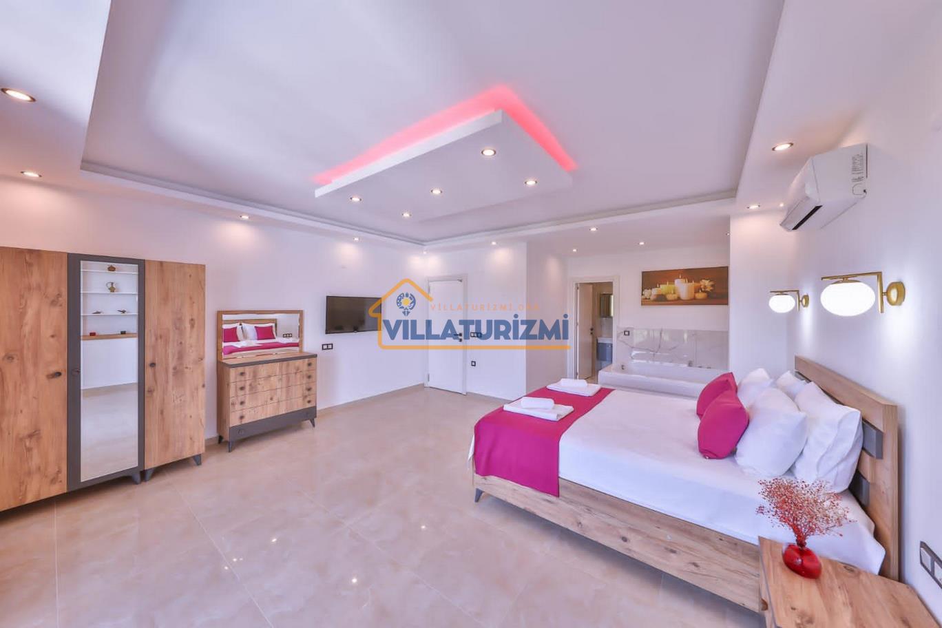 Özel tasarlanmış olan bu villamız balayı çiftleri için uygundur. Villamızın master odasında jakuzi yer almaktadır balayı çiftleri içinde muhteşem bir kiralık villadır. Villamızın havuz ve bahçe kısmı korunaklı olup havuz keyfini rahatça çıkarmanızı sağlayacaktır.
