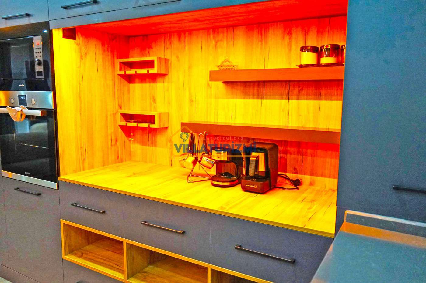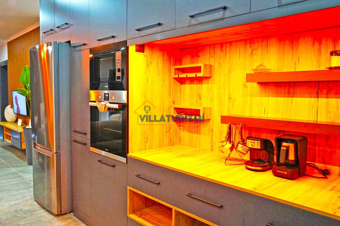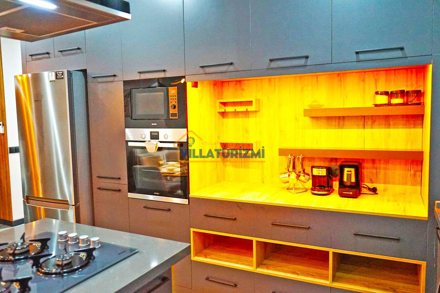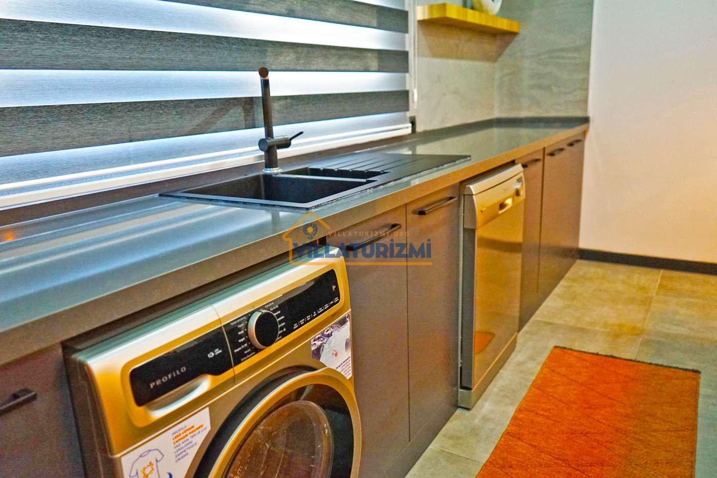 Mutfak: buzdolabı, fırın, mikrodalga, çamaşır makinası, bulaşık makinası, 4’lü ocak, elektrikli su ısıtıcısı (ketıl), ekmek kızartma makinesi, 8 kişilik yemek takımı, tava, tencereler, çatal ve bıçak takımı ve diğer mutfak malzemesi mevcuttur.