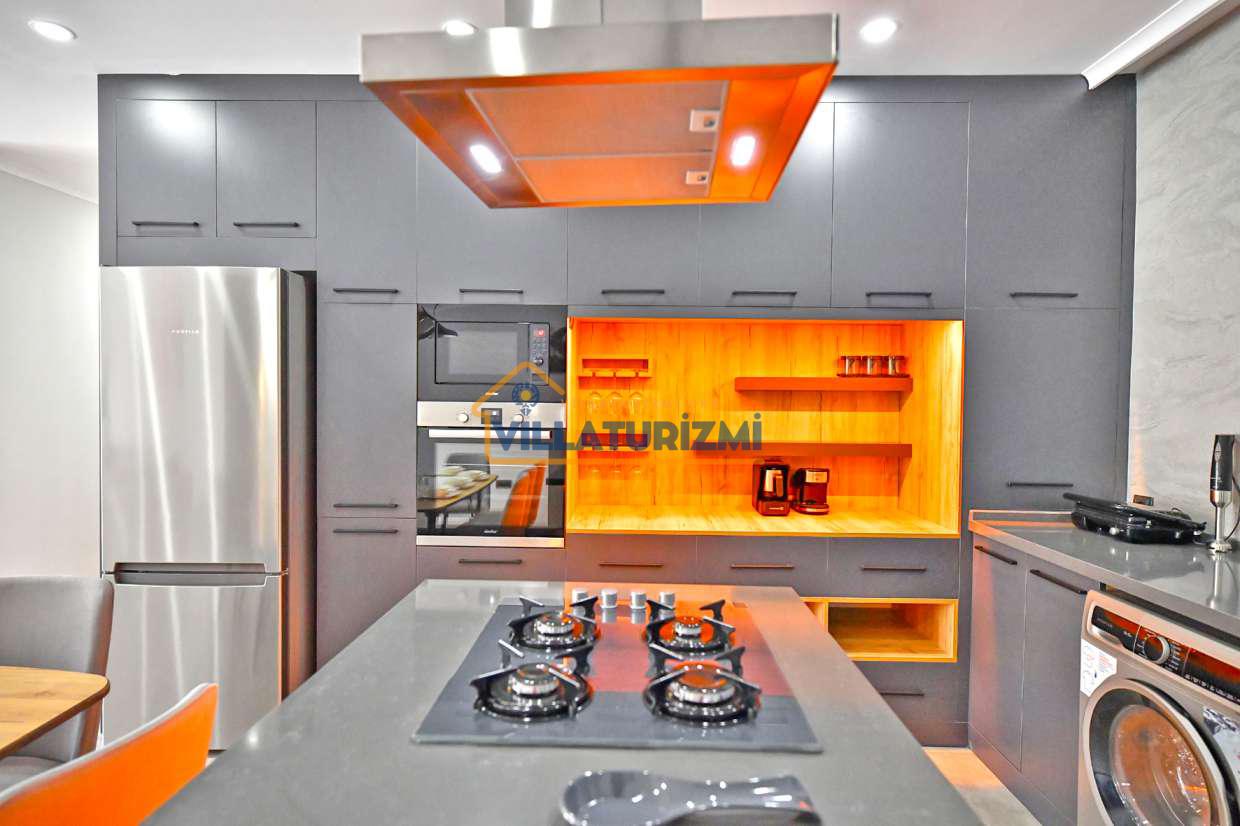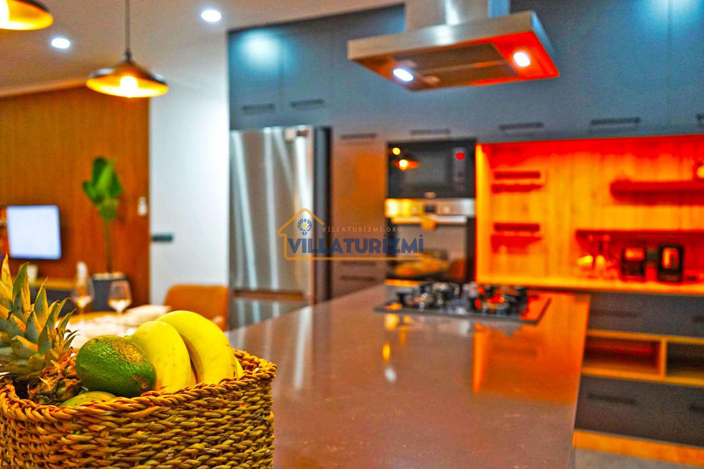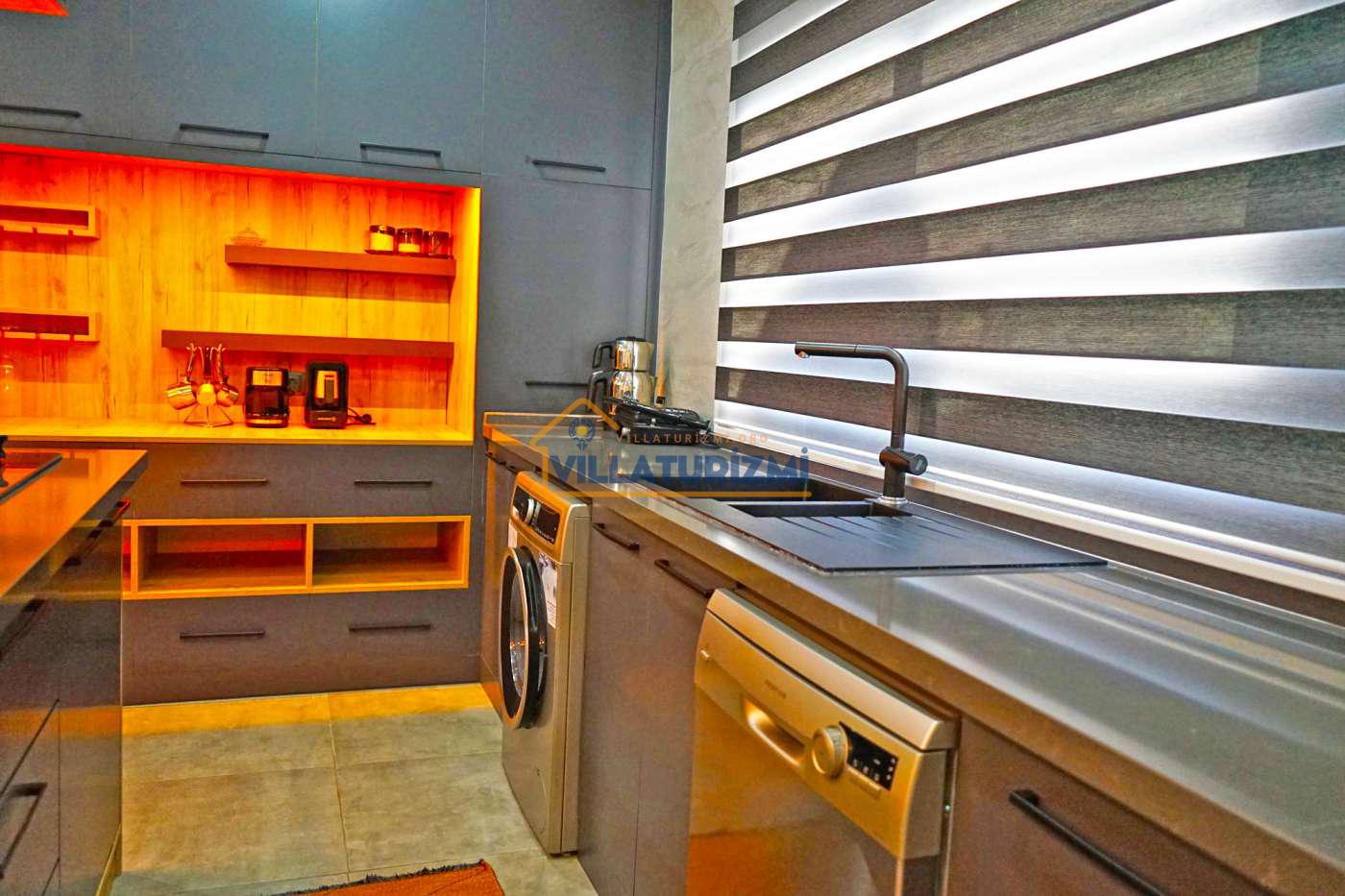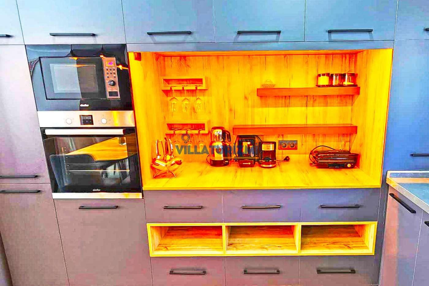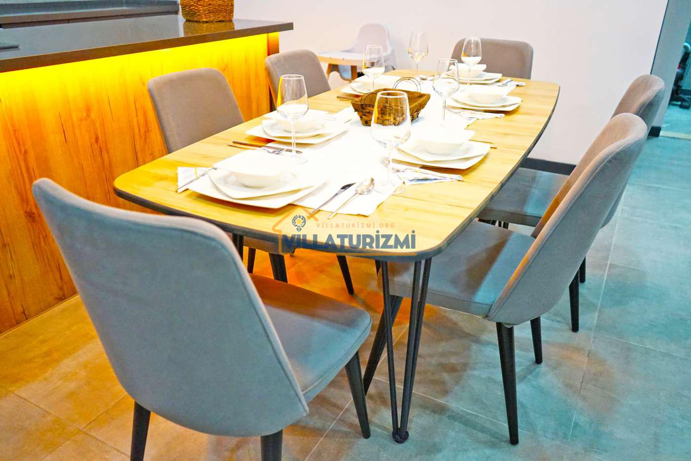 Mutfak: buzdolabı, fırın, mikrodalga, çamaşır makinası, bulaşık makinası, 4’lü ocak, elektrikli su ısıtıcısı (ketıl), ekmek kızartma makinesi, 8 kişilik yemek takımı, tava, tencereler, çatal ve bıçak takımı ve diğer mutfak malzemesi mevcuttur.