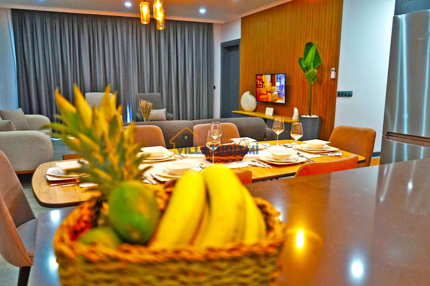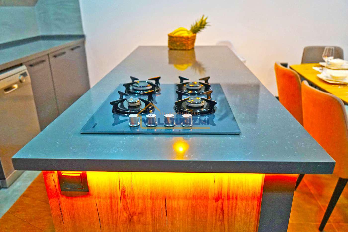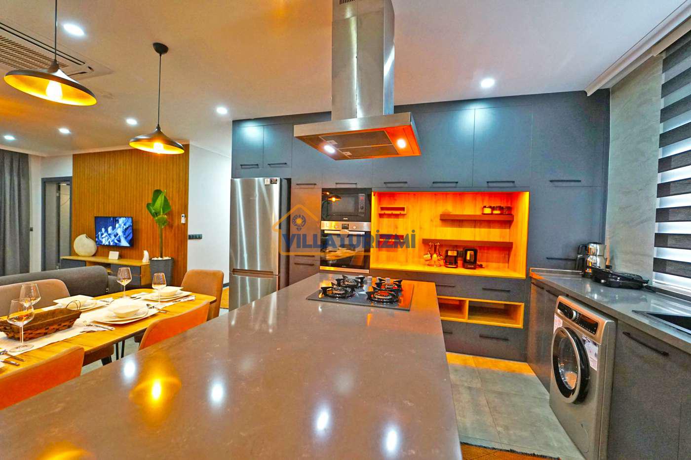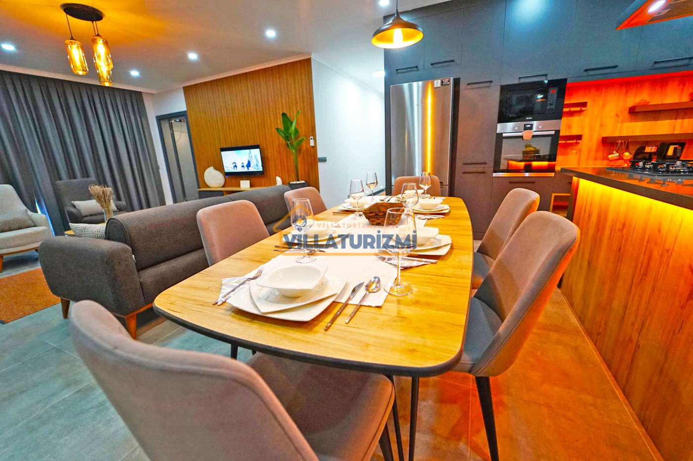 Mutfak: buzdolabı, fırın, mikrodalga, çamaşır makinası, bulaşık makinası, 4’lü ocak, elektrikli su ısıtıcısı (ketıl), ekmek kızartma makinesi, 8 kişilik yemek takımı, tava, tencereler, çatal ve bıçak takımı ve diğer mutfak malzemesi mevcuttur.