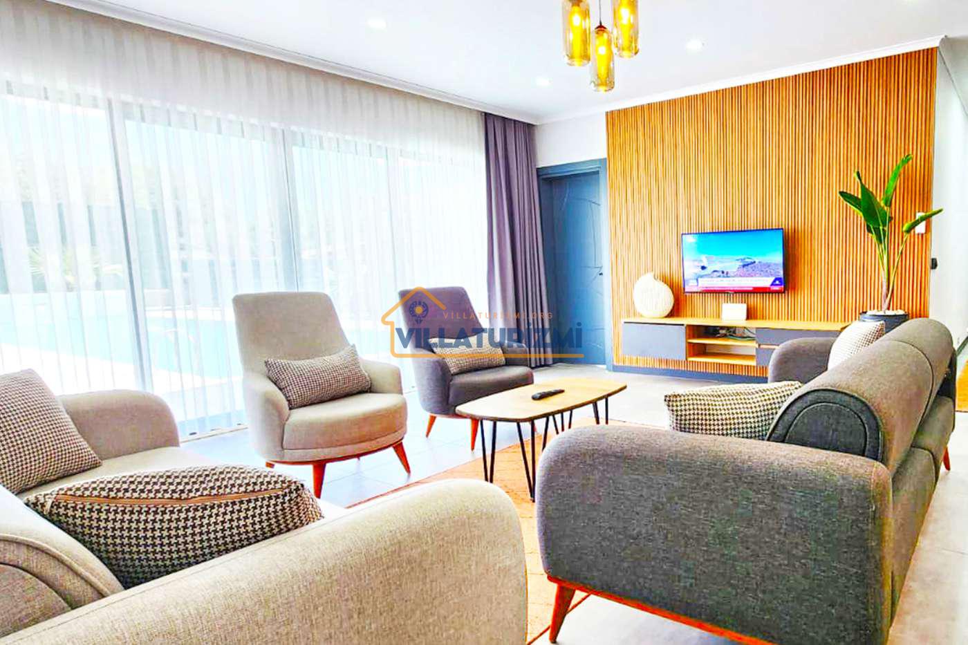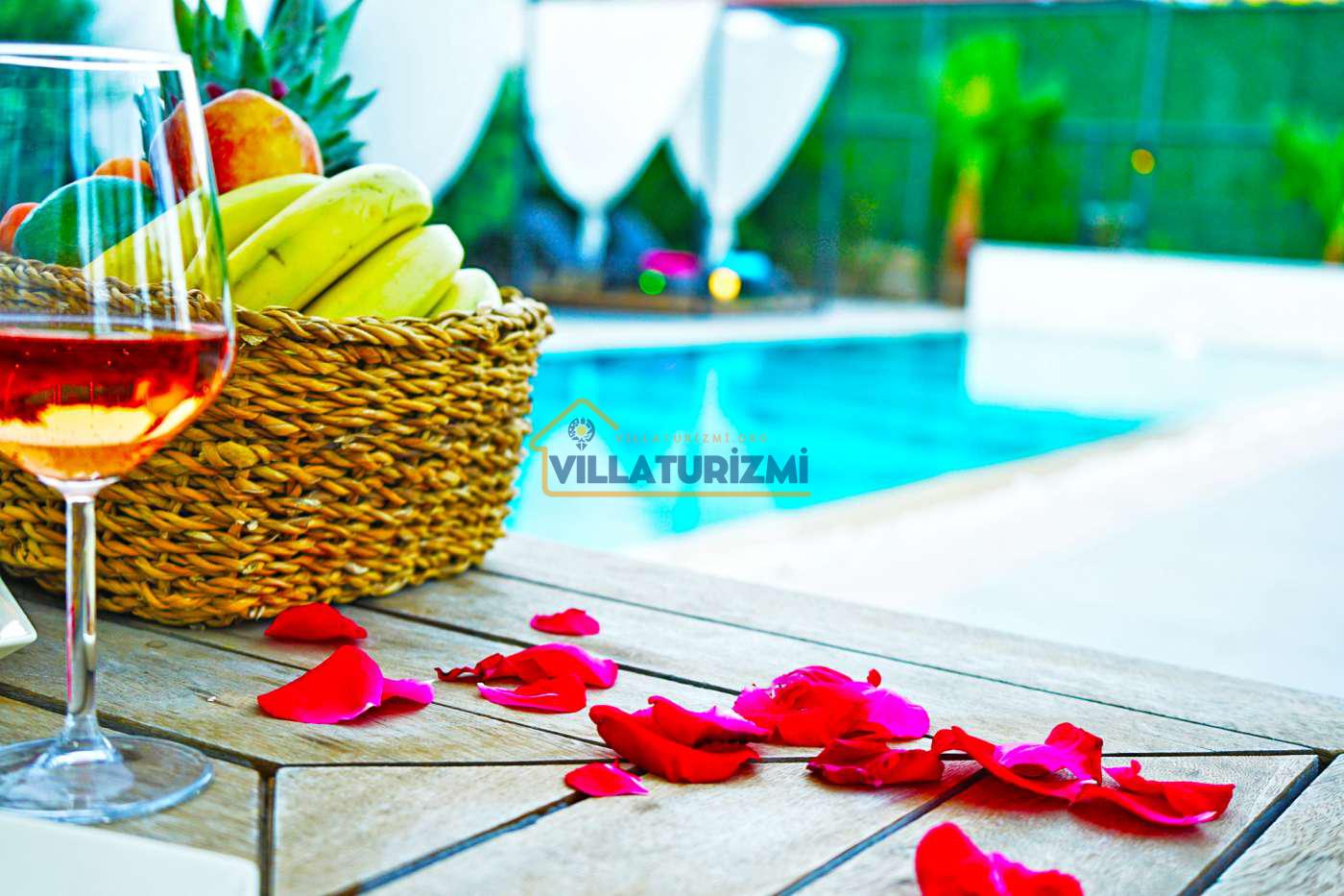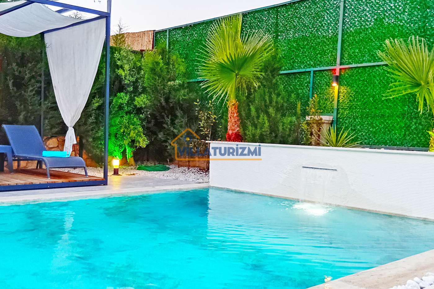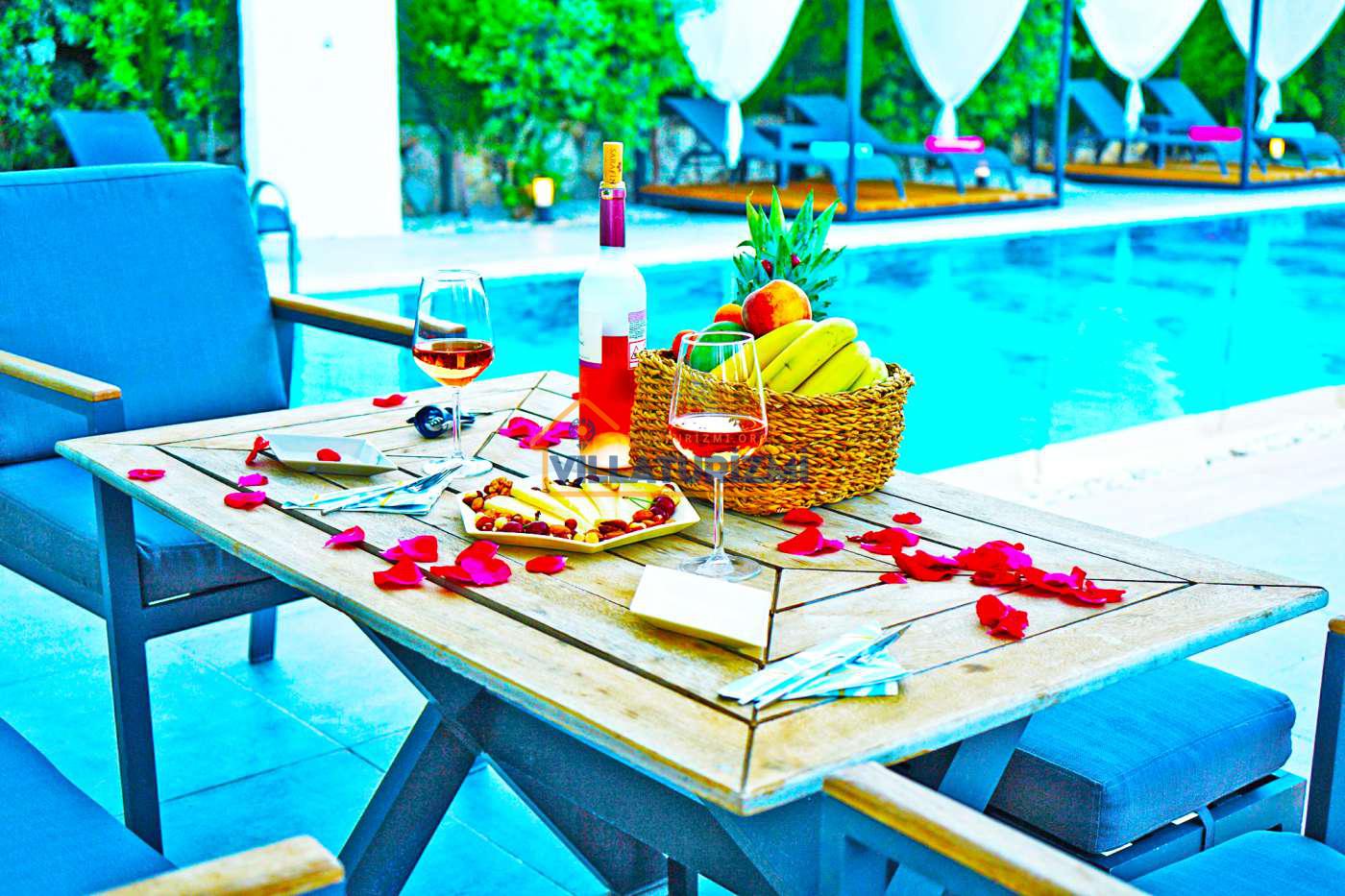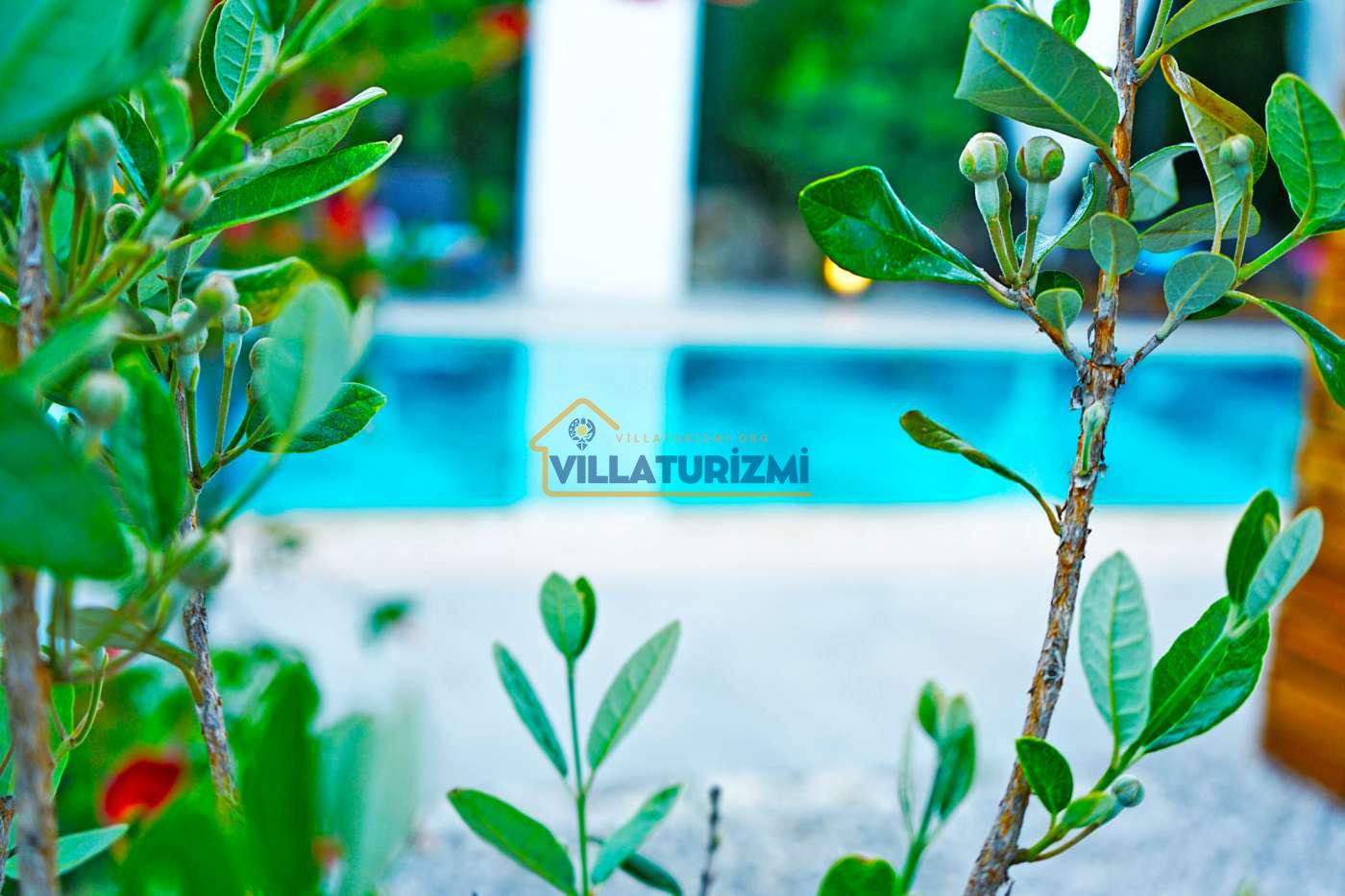 Lüks villamızda özel bahçe ve özel yüzme havuzu bulunmaktadır. Özel yüzme havuzu korunaklıdır. Havuz kenarında güneşlenme terası bulunmaktadır. Konforlu villamız zevkle dekore edilmiştir. Villa içerisinde tüm ev dekorasyon eşyaları, beyaz eşyalar vardır.