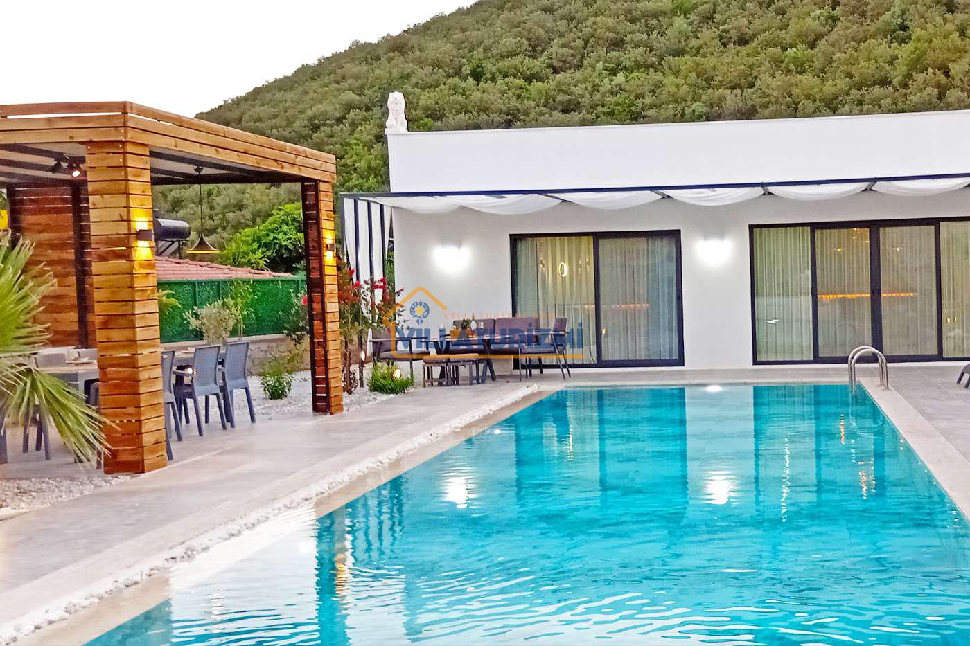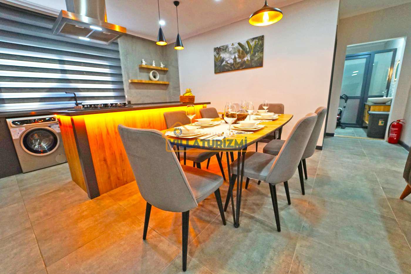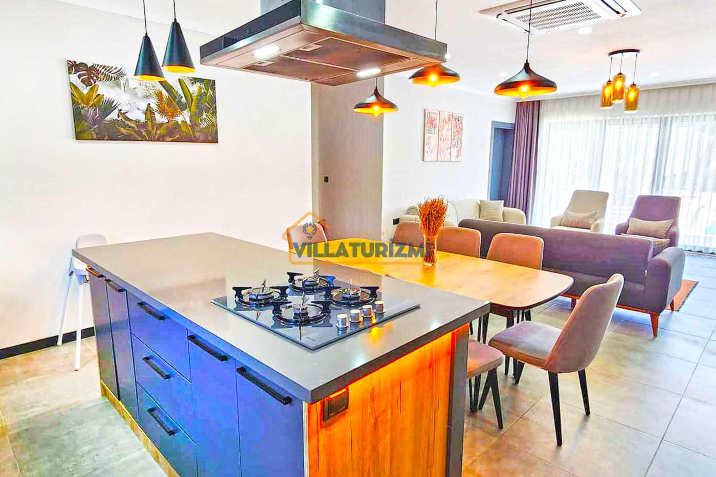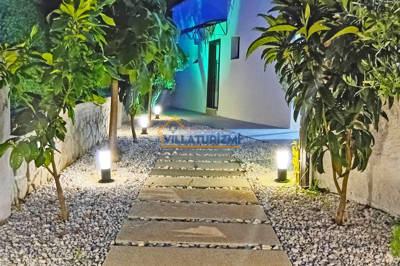 Lüks villamızda özel bahçe ve özel yüzme havuzu bulunmaktadır. Özel yüzme havuzu korunaklıdır. Havuz kenarında güneşlenme terası bulunmaktadır. Konforlu villamız zevkle dekore edilmiştir. Villa içerisinde tüm ev dekorasyon eşyaları, beyaz eşyalar vardır.