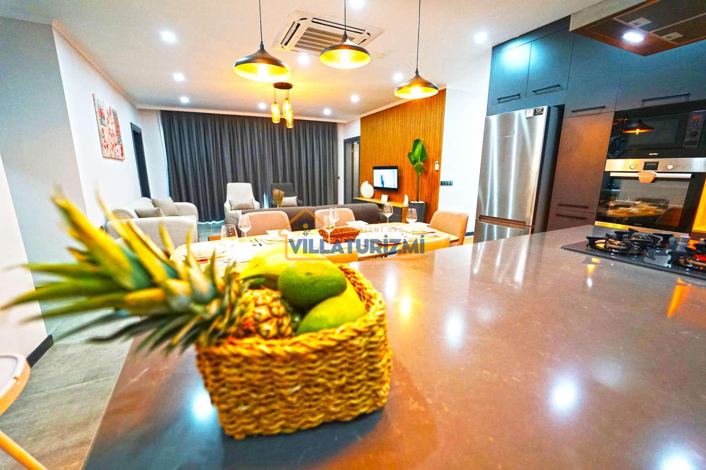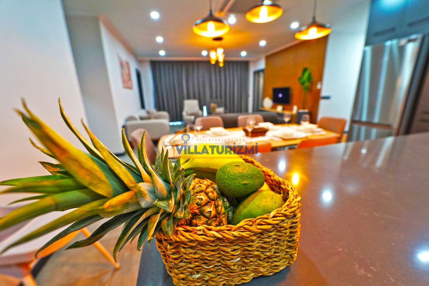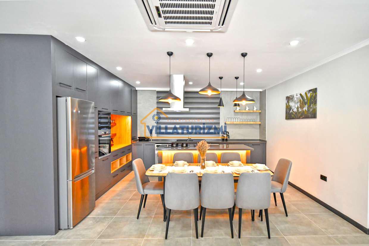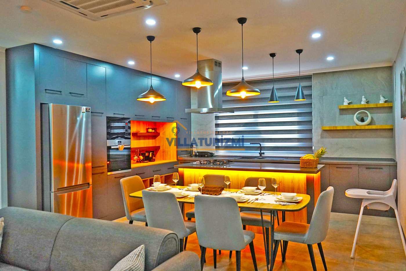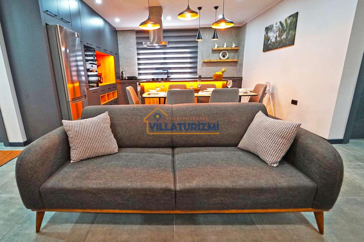 Lüks villamızda özel bahçe ve özel yüzme havuzu bulunmaktadır. Özel yüzme havuzu korunaklıdır. Havuz kenarında güneşlenme terası bulunmaktadır. Konforlu villamız zevkle dekore edilmiştir. Villa içerisinde tüm ev dekorasyon eşyaları, beyaz eşyalar vardır.