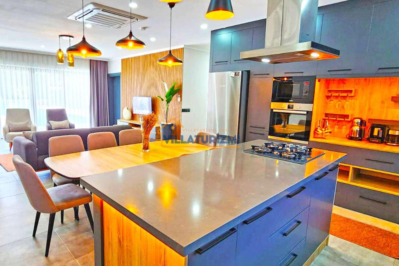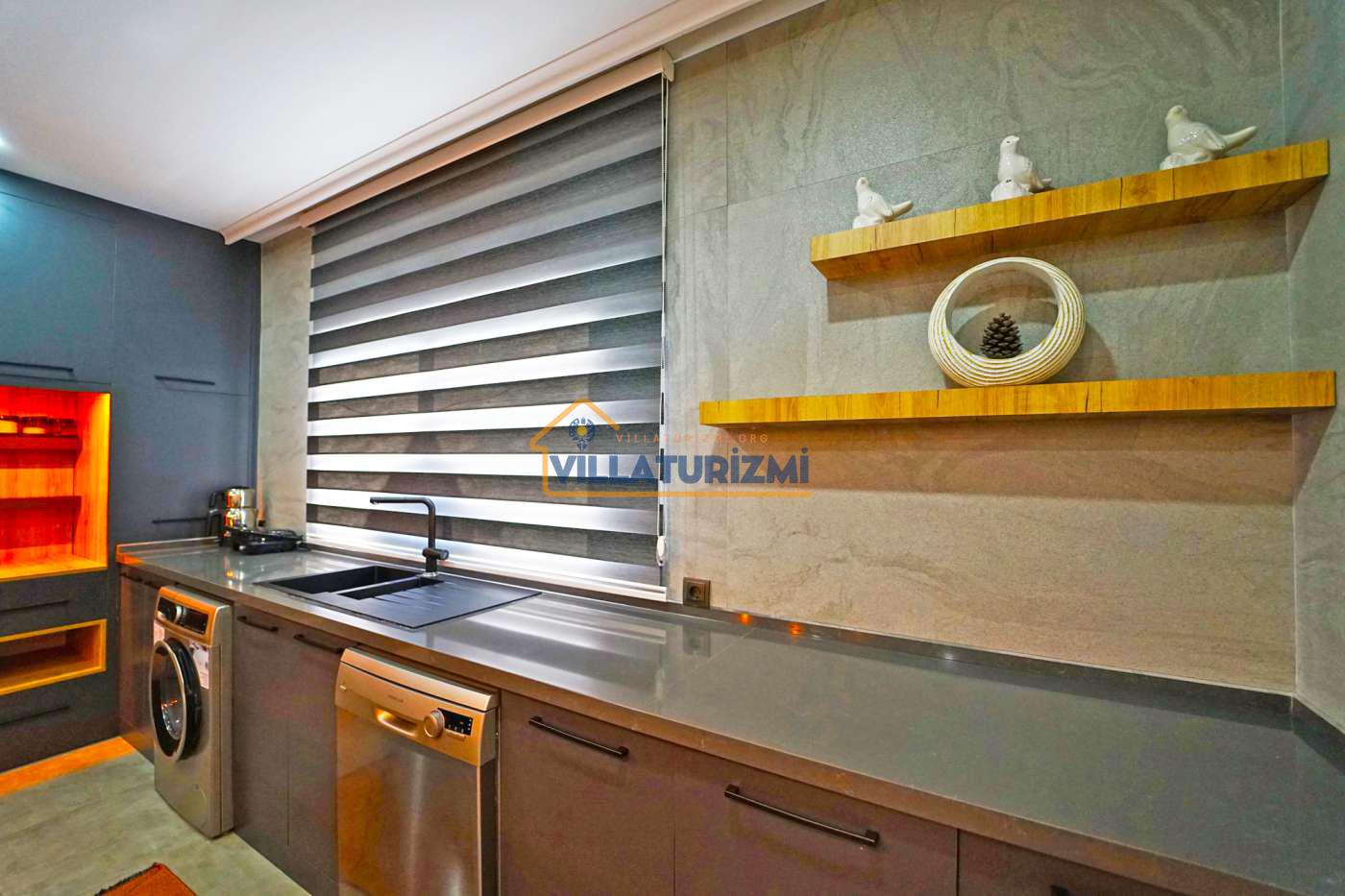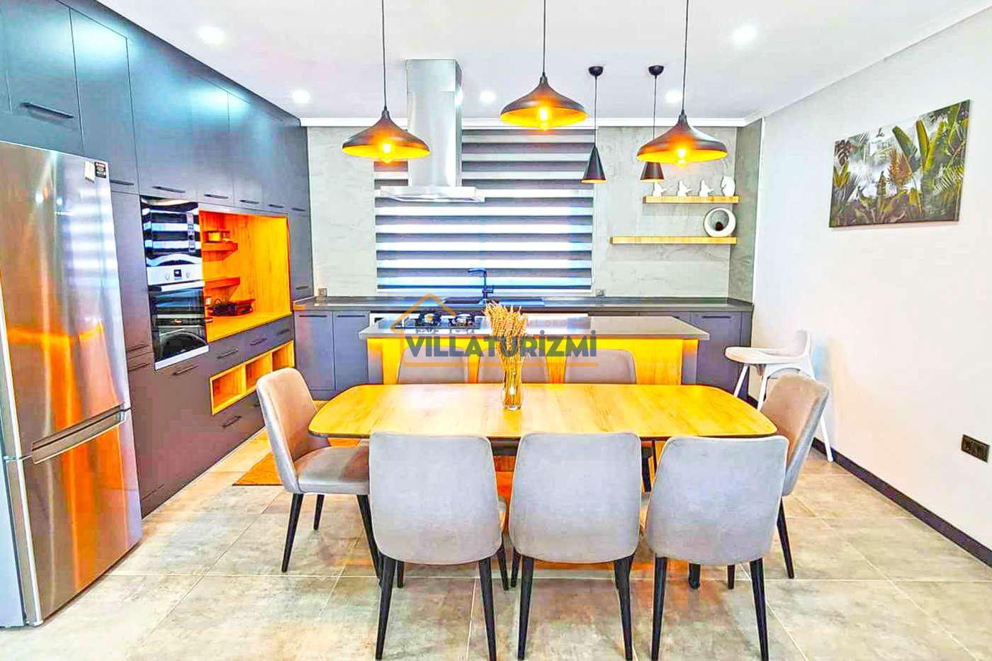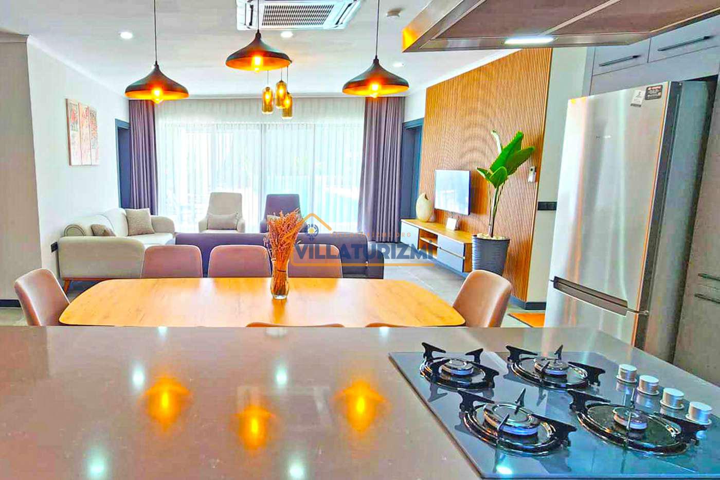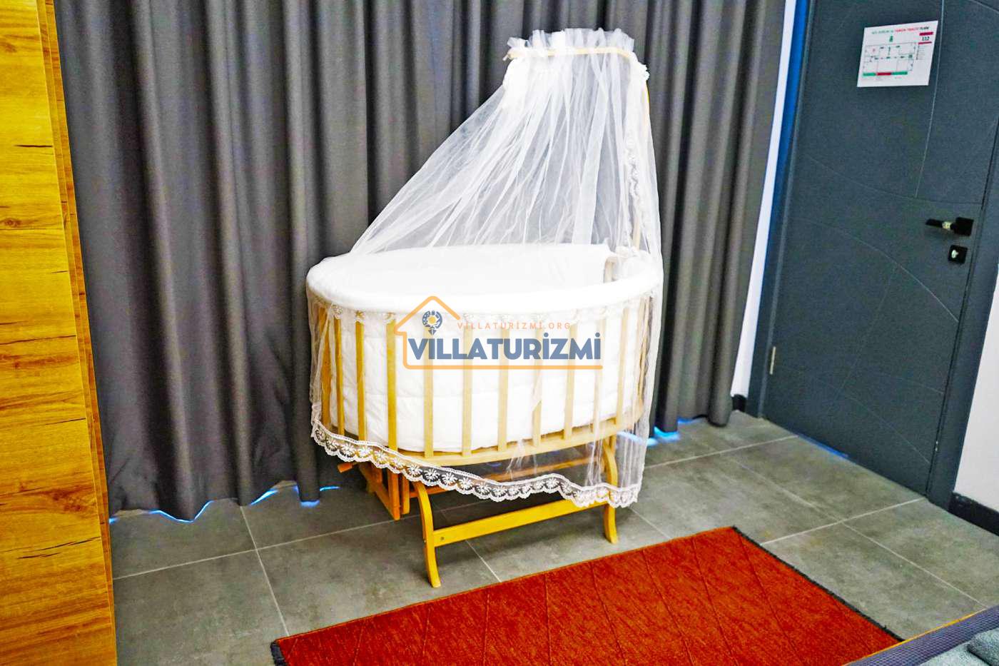 Lüks villamızda özel bahçe ve özel yüzme havuzu bulunmaktadır. Özel yüzme havuzu korunaklıdır. Havuz kenarında güneşlenme terası bulunmaktadır. Konforlu villamız zevkle dekore edilmiştir. Villa içerisinde tüm ev dekorasyon eşyaları, beyaz eşyalar vardır.