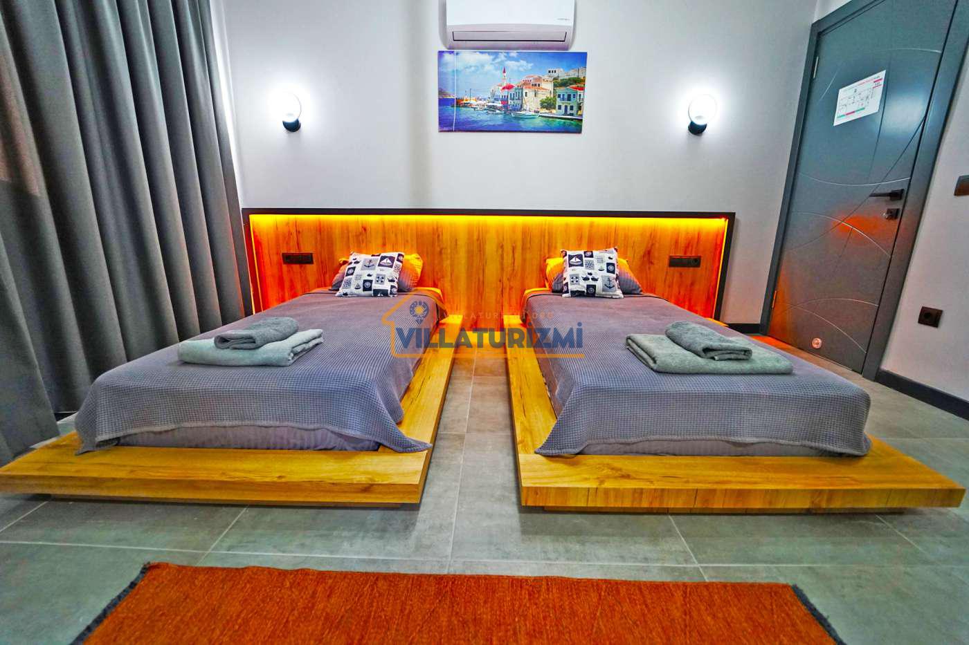 Villa Mamon Luxury, geniş aileler için uygun tatil villamız, 4 yatak odalı 8 kişi konaklama kapasitelidir. 4 yatak odasında 3 çift kişilik ve 2 tek kişilik yatak bulunmaktadır.