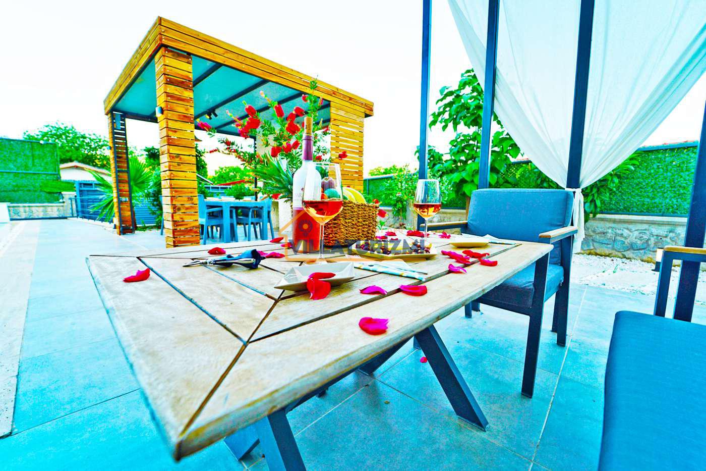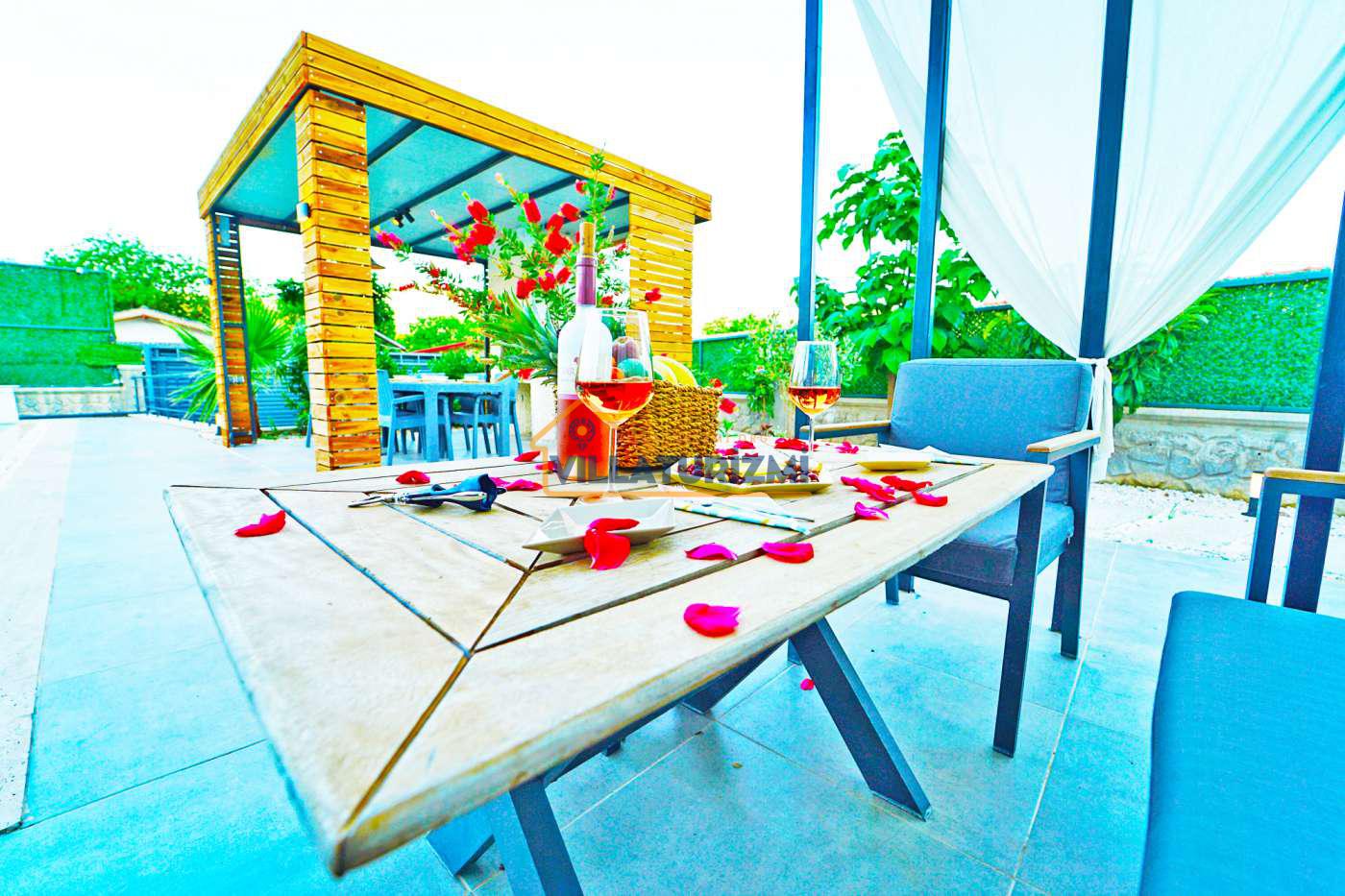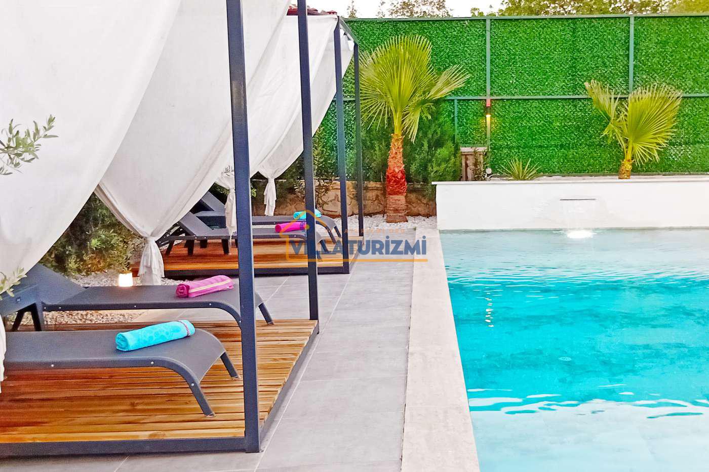 Özellikler: Özel açık yüzme havuzu, güneşlenme alanı, şezlonglar, özel bahçe, özel park yeri ve mangal alanı.
