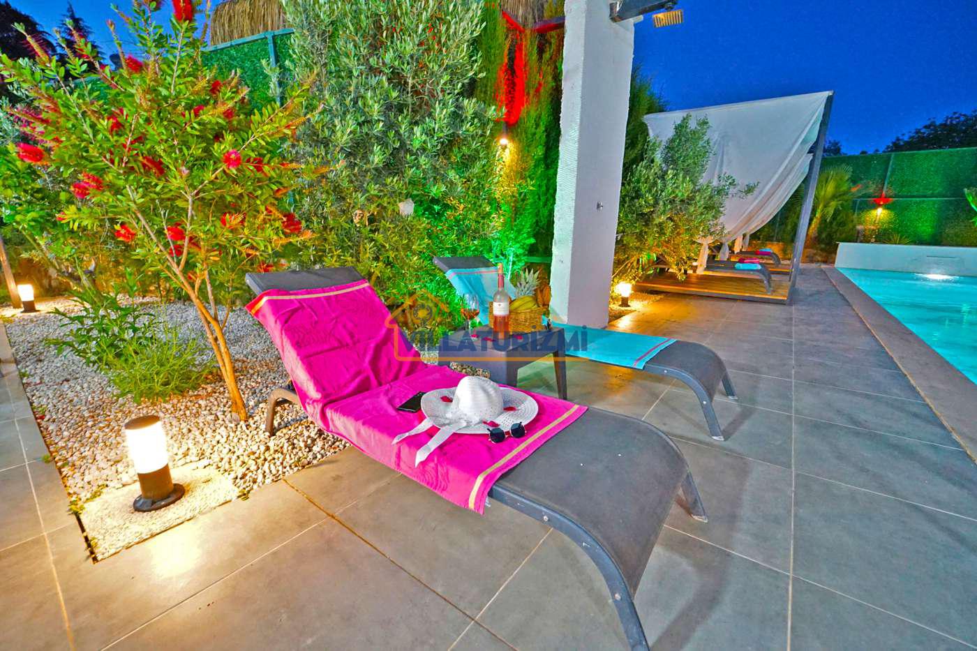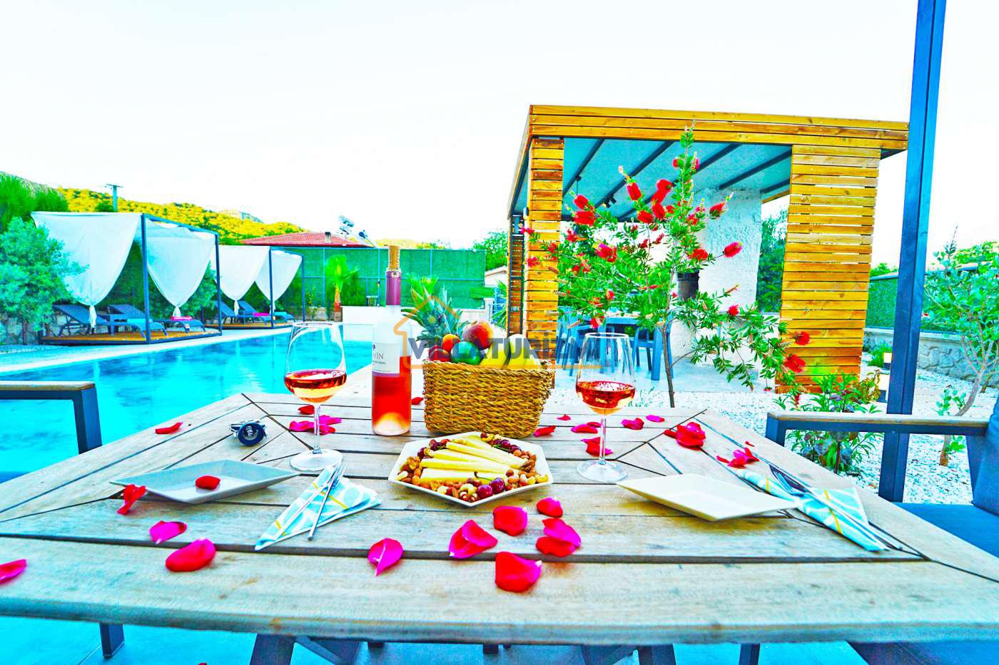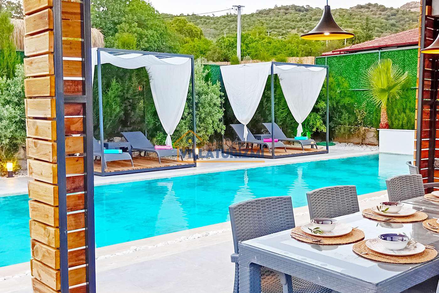 Özellikler: Özel açık yüzme havuzu, güneşlenme alanı, şezlonglar, özel bahçe, özel park yeri ve mangal alanı.