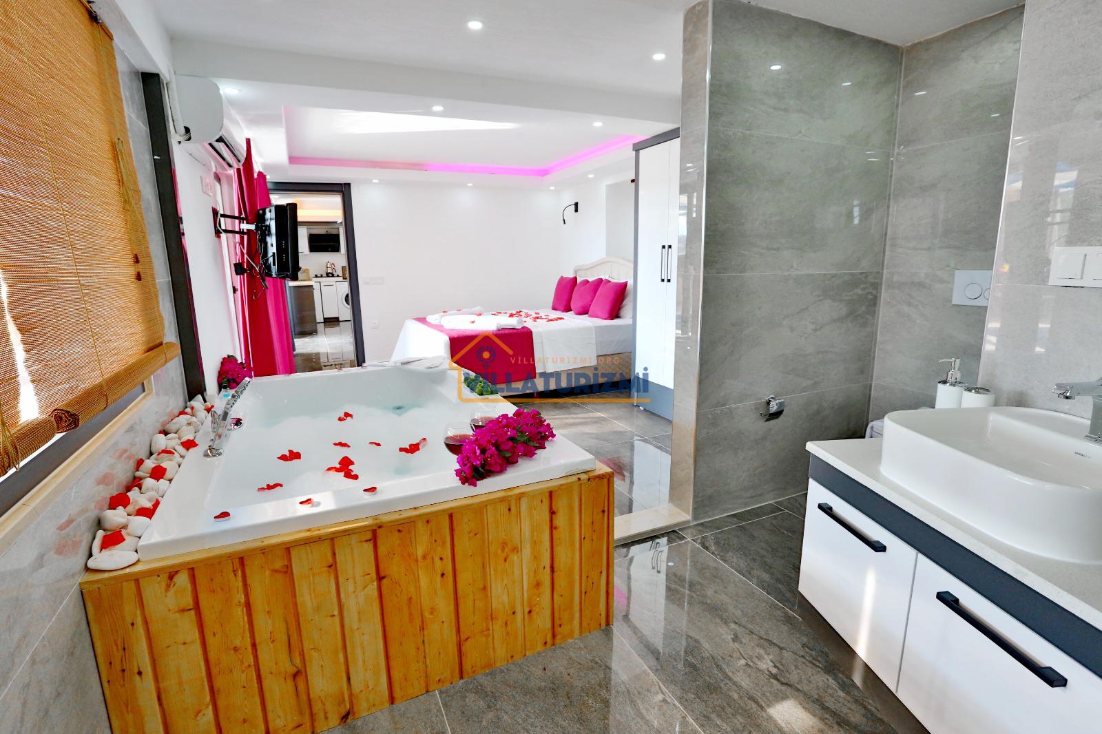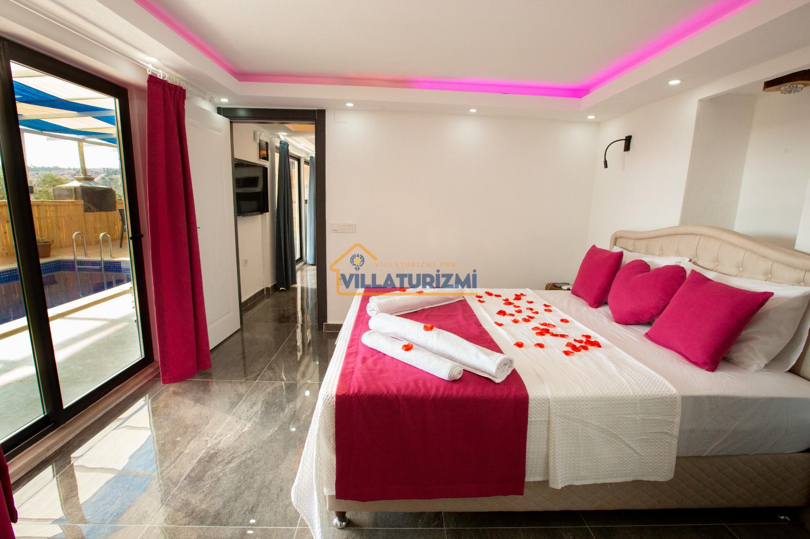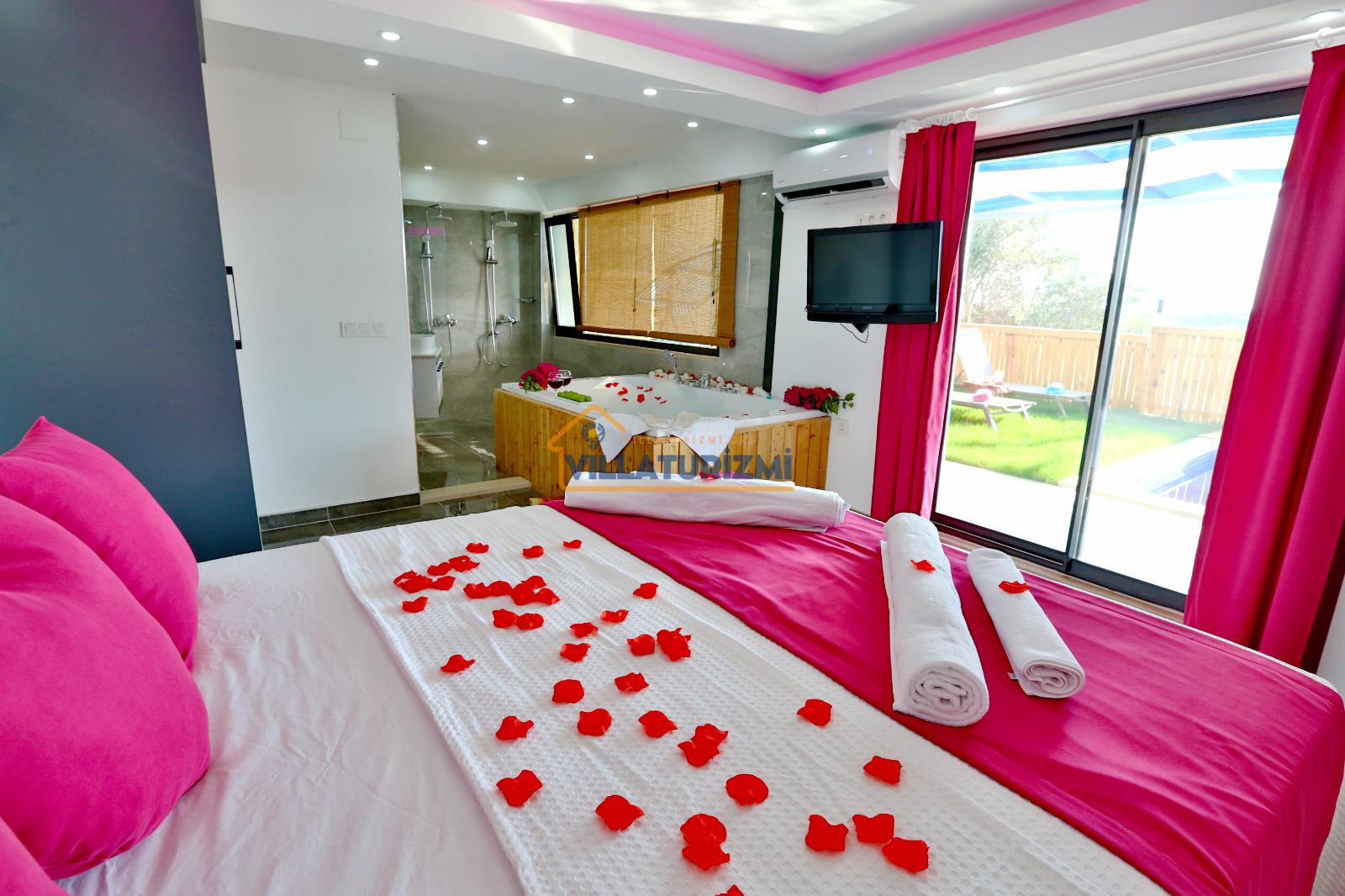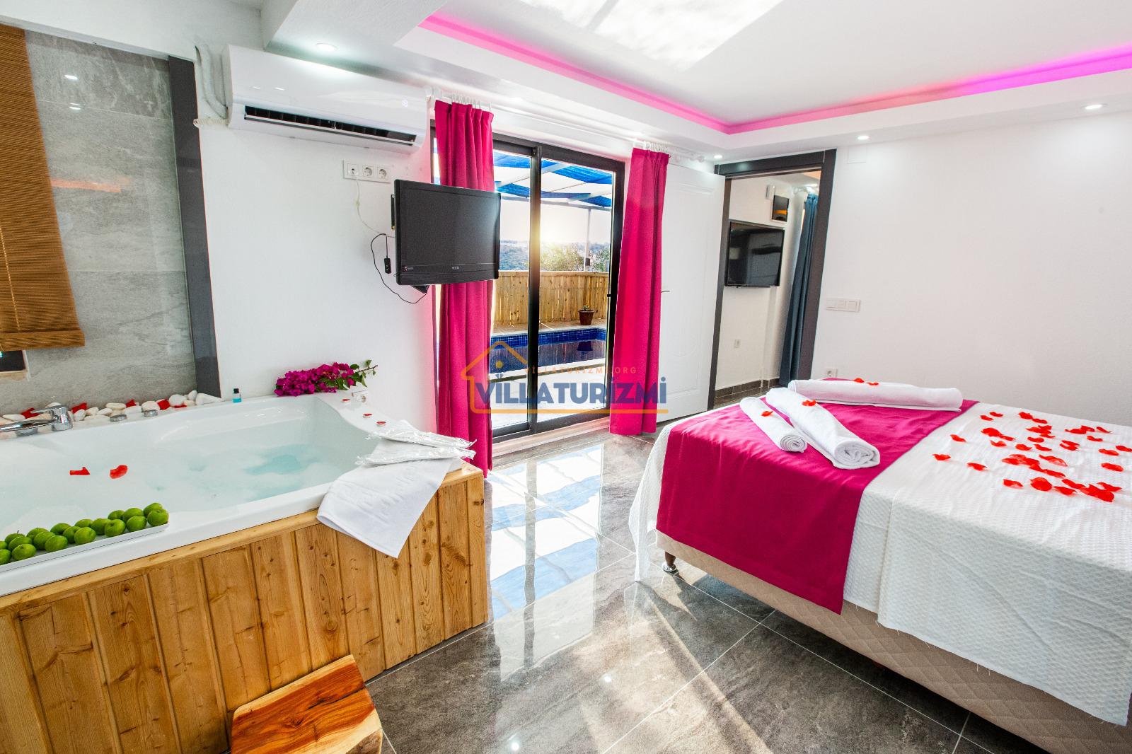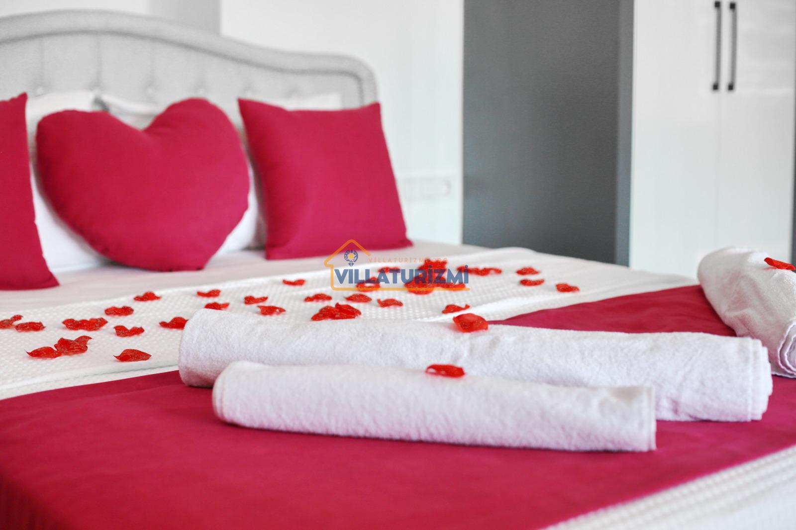 Yatak odası: 1 adet çift kişilik yatak, elbise dolabı, saç kurutma makinası ve klima mevcuttur. Ayrıca bu odamızda özel jakuzide bulunmaktadır.
