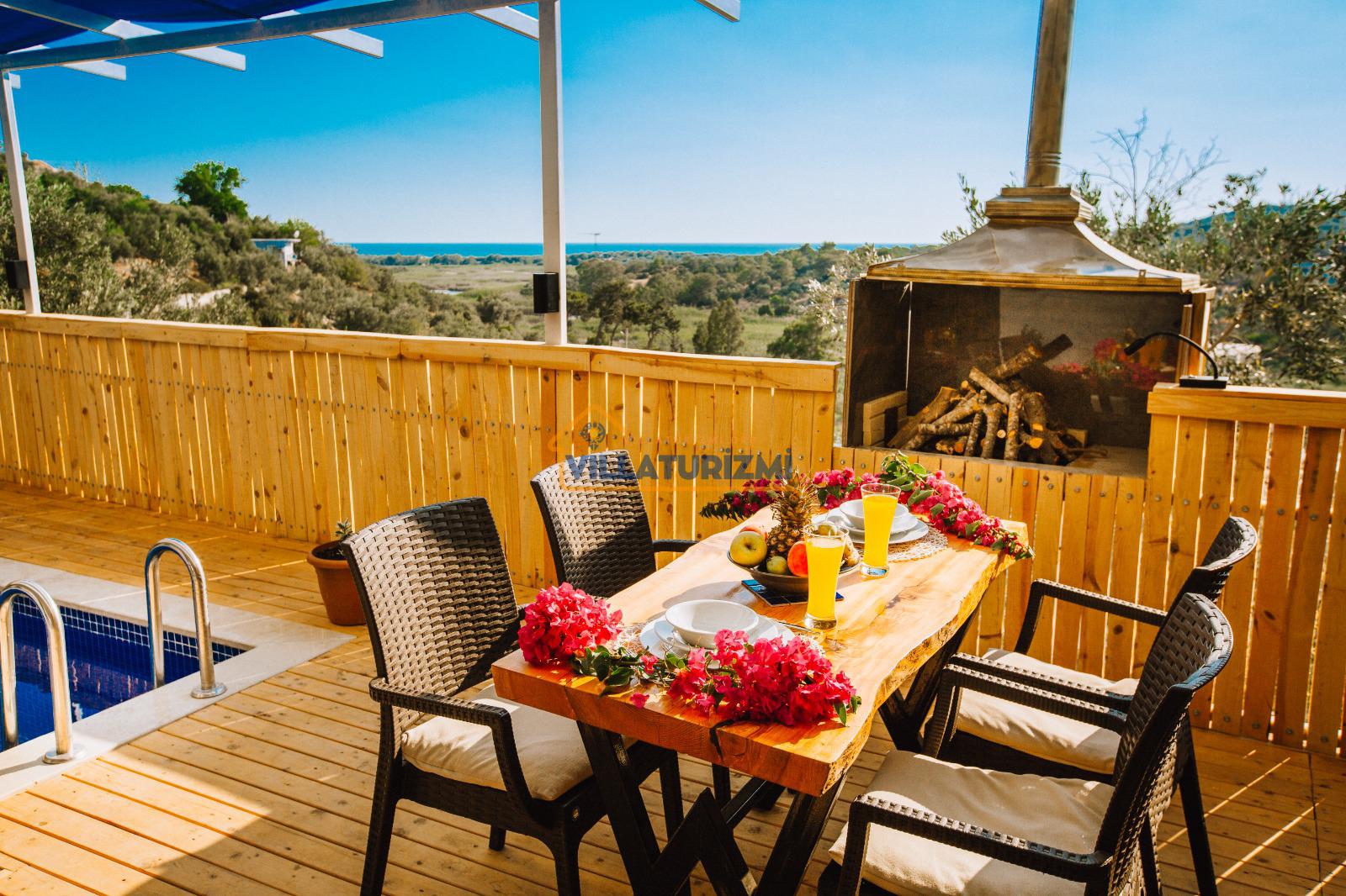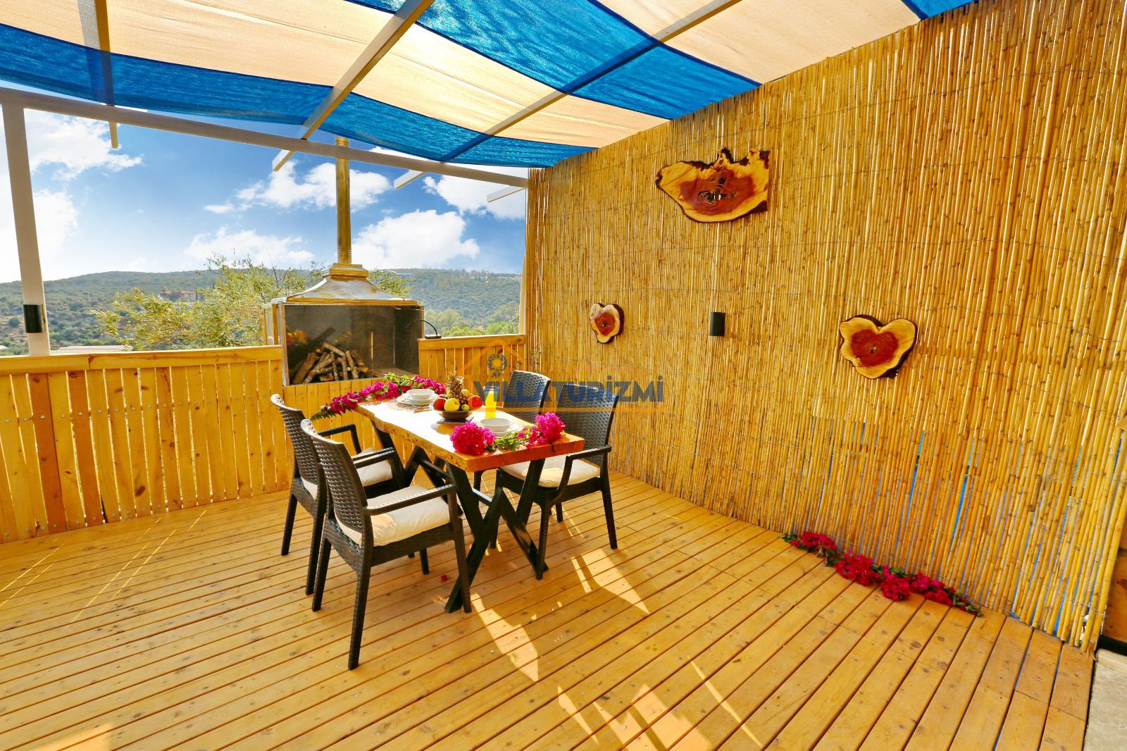 Bahçe: muhteşem dağ manzaralı huzurlu ortama sahiptir. Havuz terasımızda ve bahçemizde salıncak ve minderler, yeşillik alan, şezlong, şemsiye, barbekü, yemek masası ve sandalyeleri vardır.