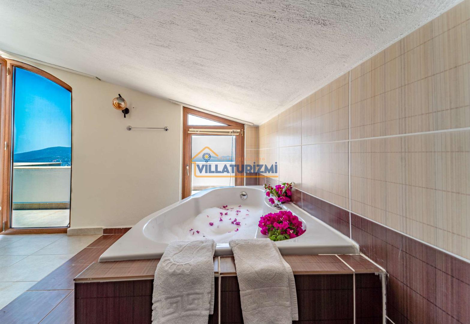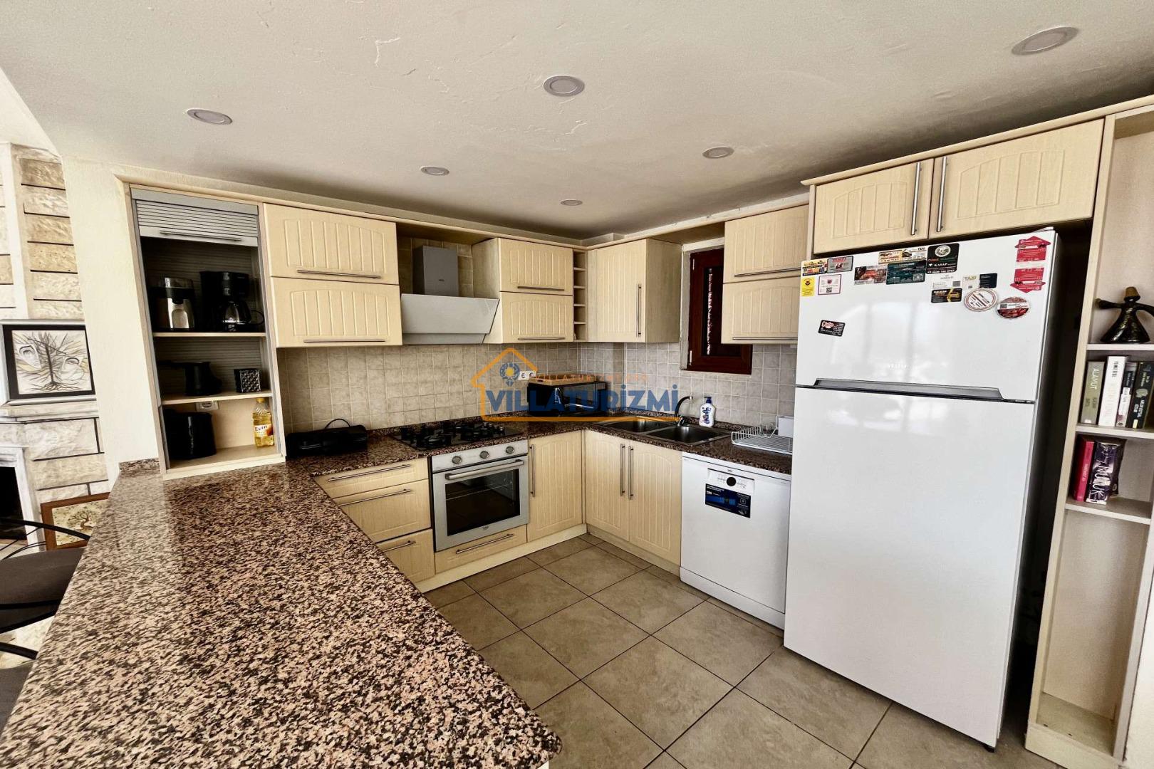 Villa Meltem isimli kiralık tatil villamız, sadece mimari yapısıyla değil, sunduğu muhteşem deniz manzarasıyla da misafirlerini büyülemektedir. Bu özel kiralık villamız, denizle bütünleşmiş bir konumda yer almakta olup, günün her saati farklı bir güzellikte izlenebilecek manzaralar sunmaktadır. Özellikle gün batımında gökyüzündeki renk cümbüşü, misafirler için unutulmaz anlar vadetmektedir. 4 yatak odasına sahip olan Villa Meltem, toplamda 8 kişiye kadar konaklama imkanı sunmaktadır. Bu özellik, geniş aileler veya arkadaş grupları için ideal bir tatil ortamı yaratmaktadır.
