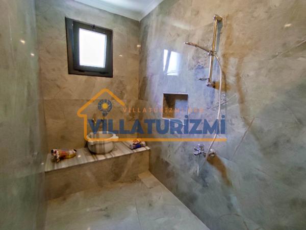 Villa Meşe, 1 yatak odası, 1 banyo ve açık plan salon mutfaktan oluşan, özenle tasarlanmış bir yaşam alanına sahiptir. Kiralık villanın en dikkat çekici özelliklerinden biri, yatak odasında yer alan jakuzidir. Bu jakuzi, romantik anlar yaşamak isteyen çiftler için ideal bir ortam sunarak, balayının büyüsünü artırmaktadır. Banyo ise, geleneksel Türk hamamından esinlenerek tasarlanmış hamam bölümü ile konuklarına rahatlama ve yenilenme imkanı sunar. Bu özel detaylar, Villa Meşe'nin konfor ve lüks anlayışının bir yansıması olarak, konukların rahatlığını her zaman ön planda tutmaktadır.