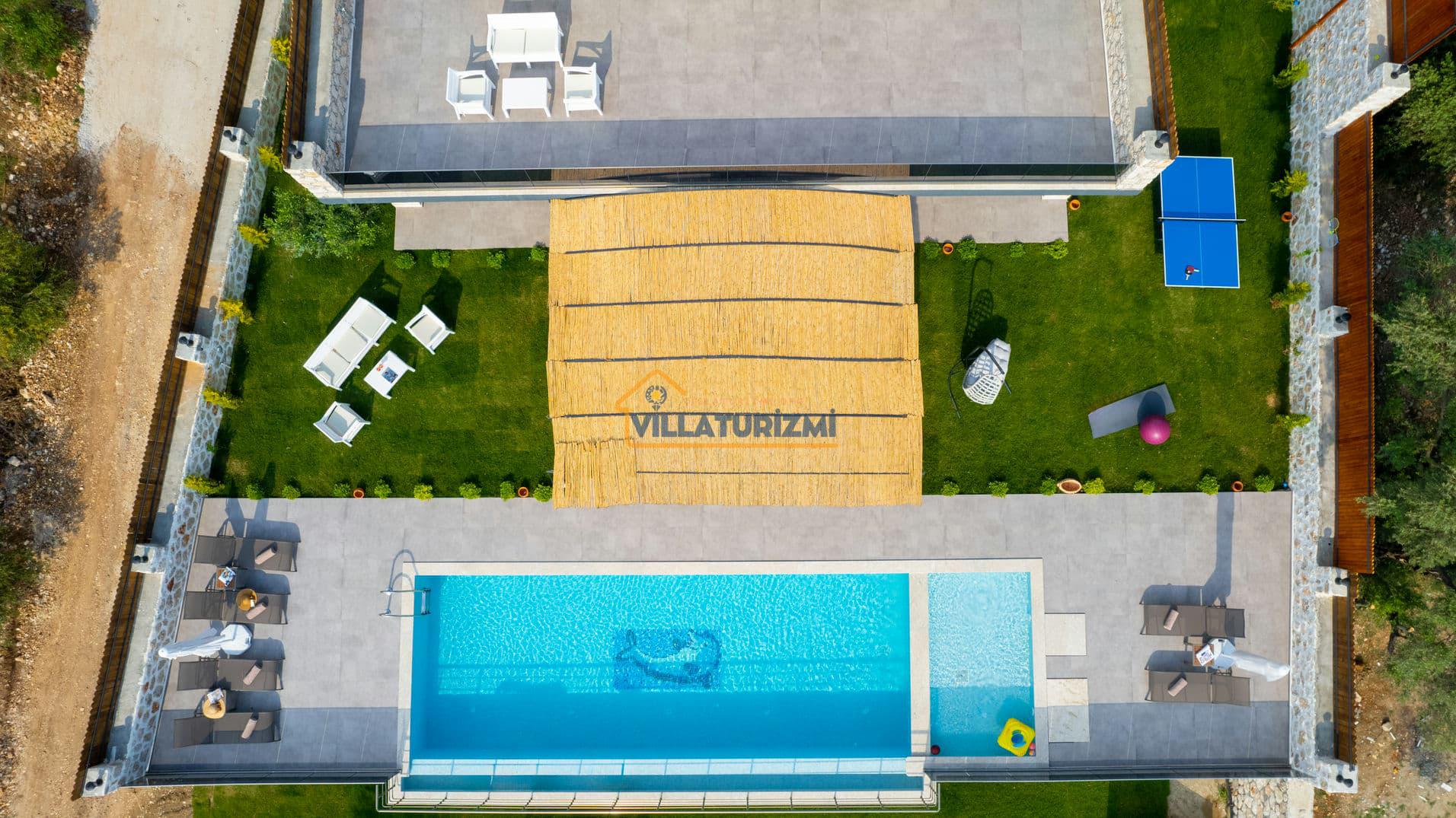 Özellikler: Korunaklı özel açık yüzme havuzu, güneşlenme alanı, şezlonglar, özel bahçe, özel park yeri ve mangal alanı.
