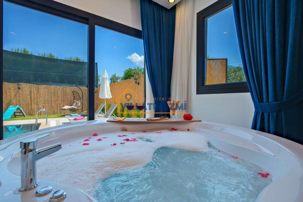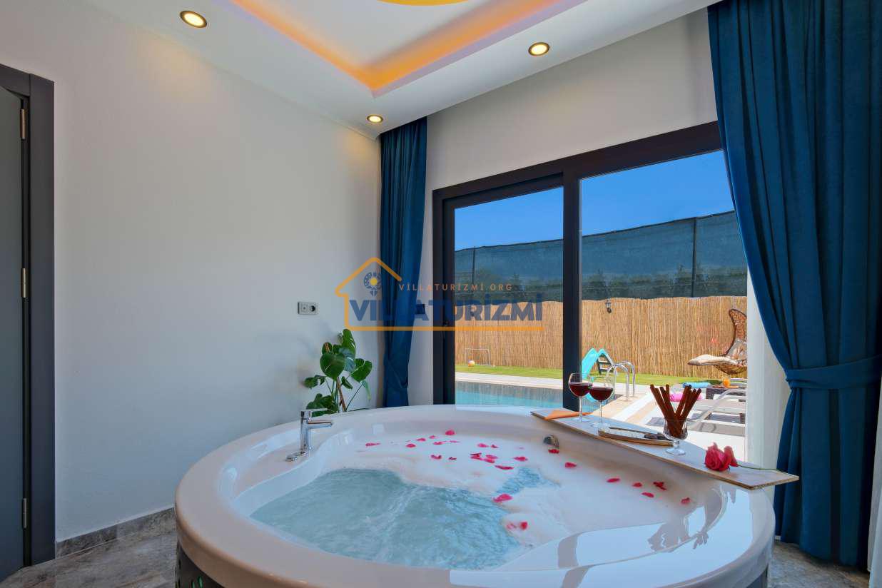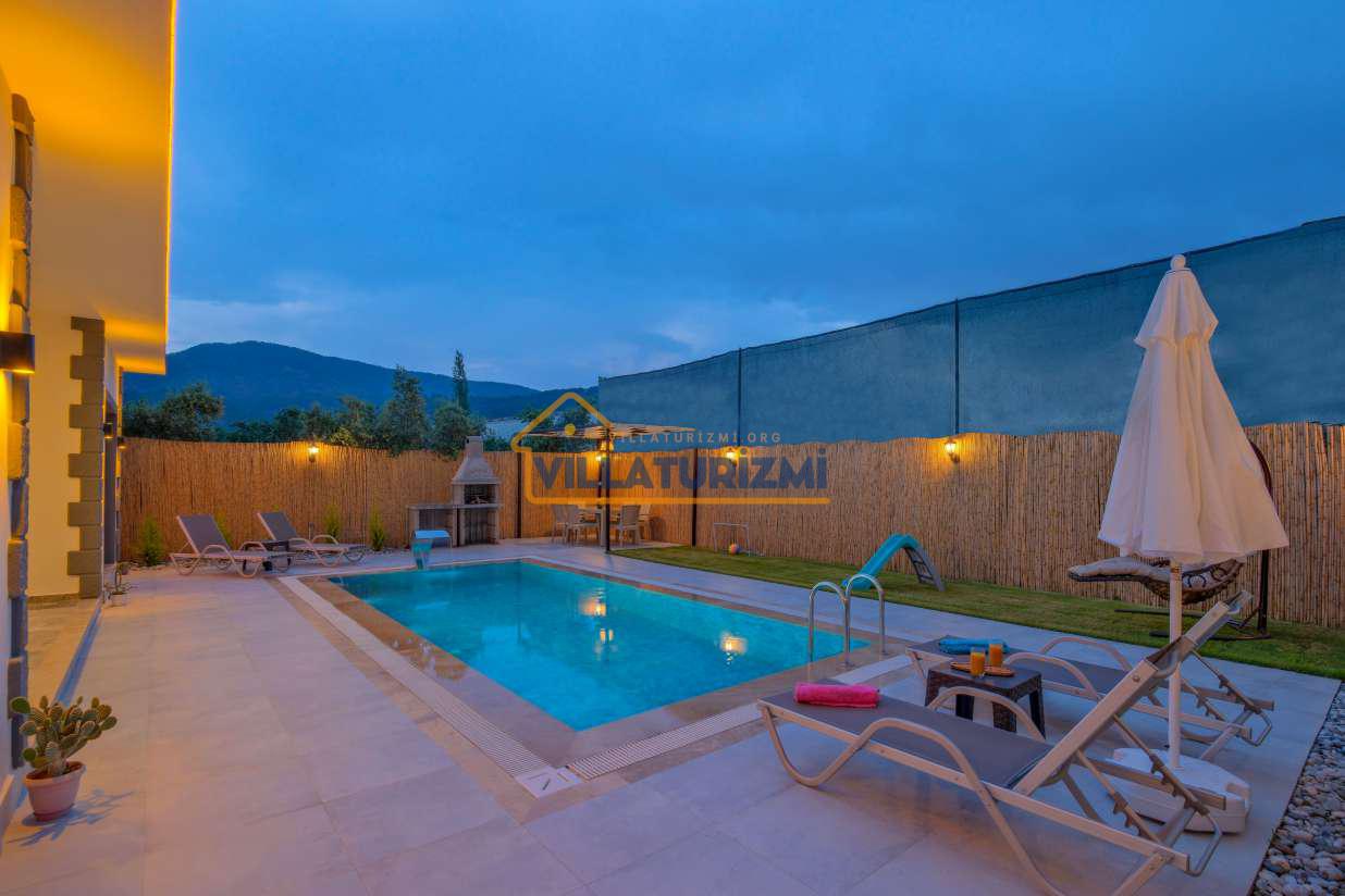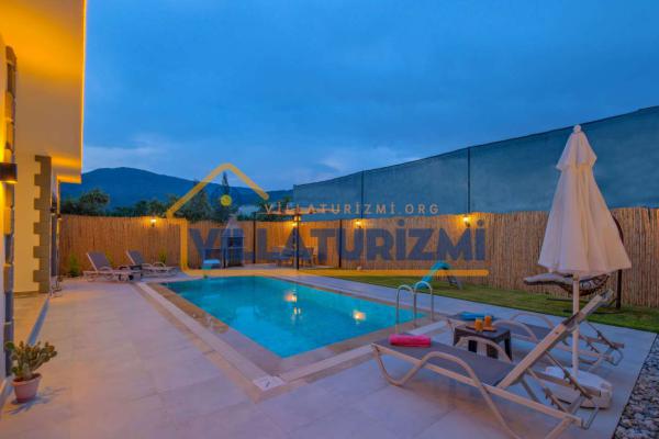 Havuz Terası :Tamamen villaya ait olan havuz çevresinde konaklayacak kişi sayısına yeterli şezlong ve şemsiye bulunmaktadır.