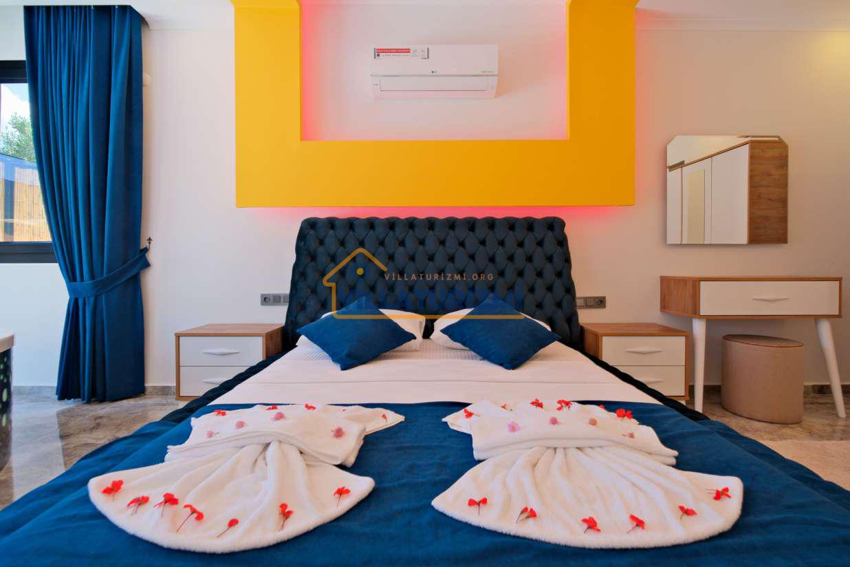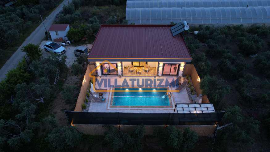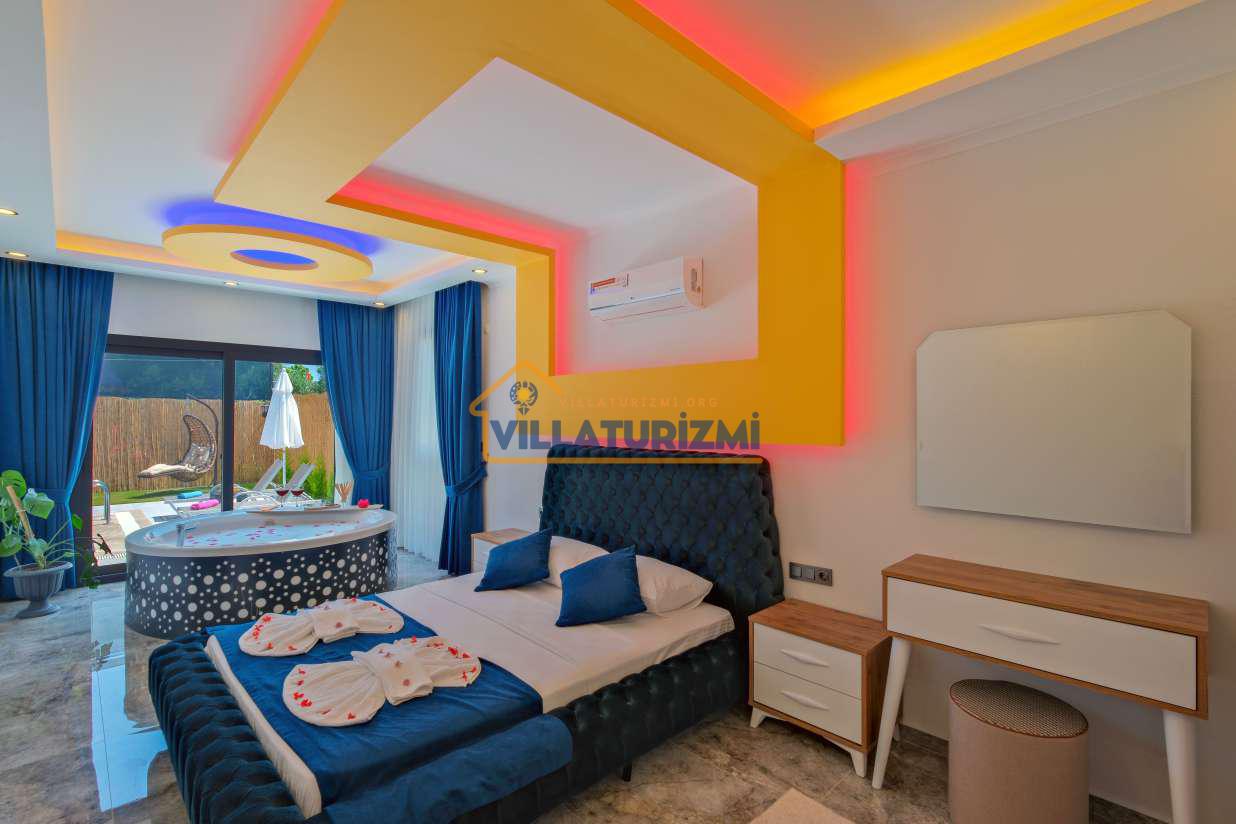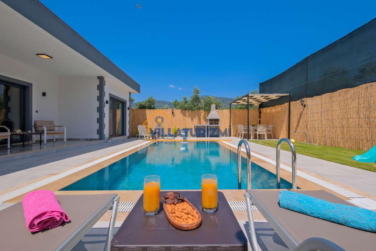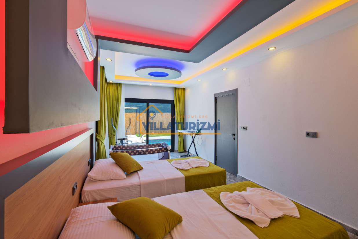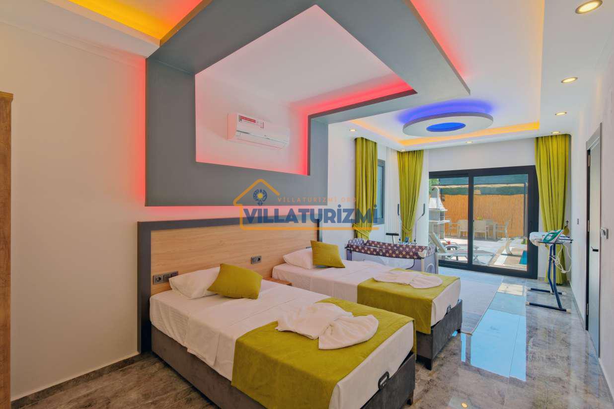 Özel havuzlu yazlık villamız, 2 yatak odasında 1 çift kişilik ve 2 tek kişilik yatak bulunmaktadır.