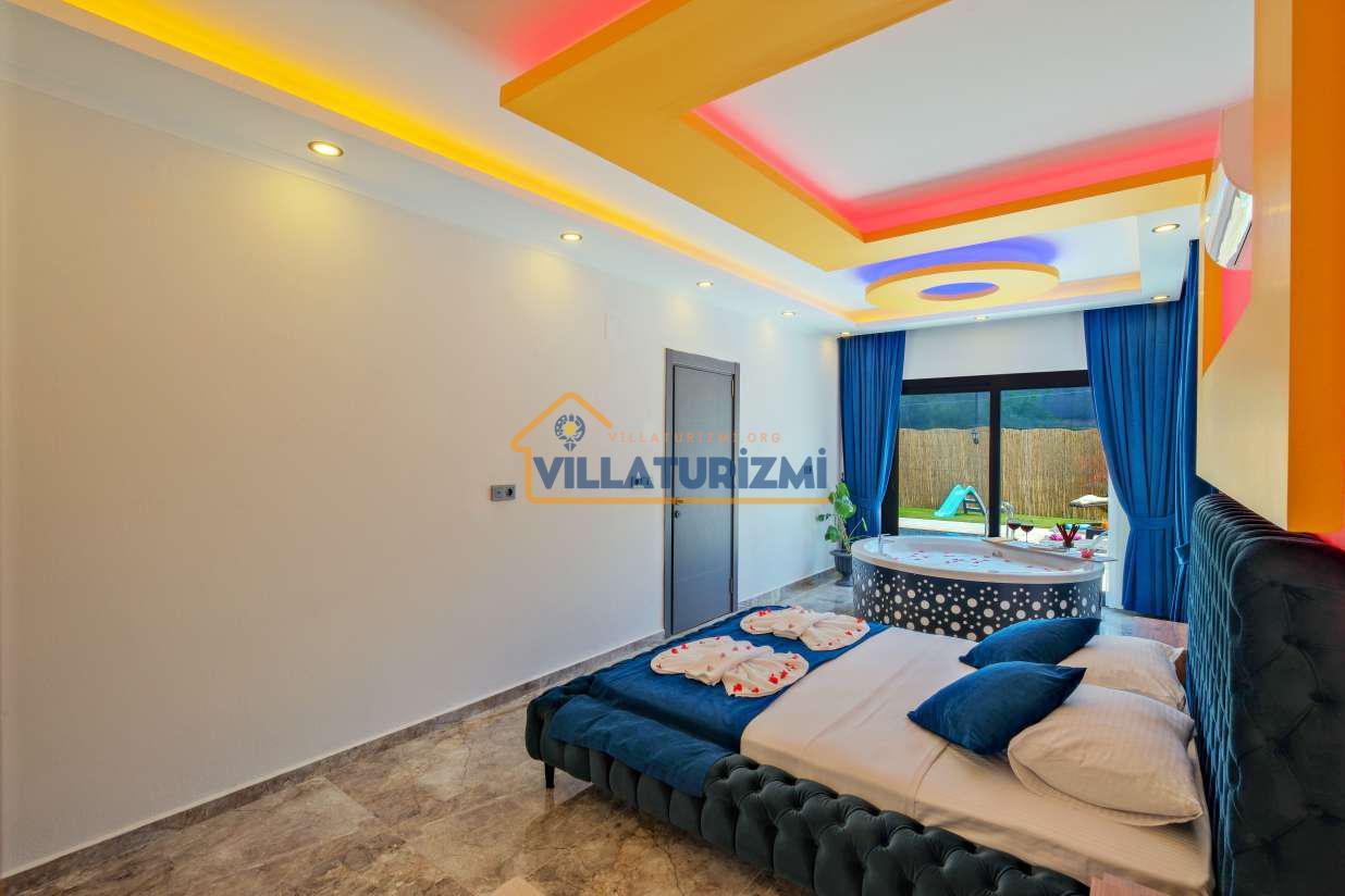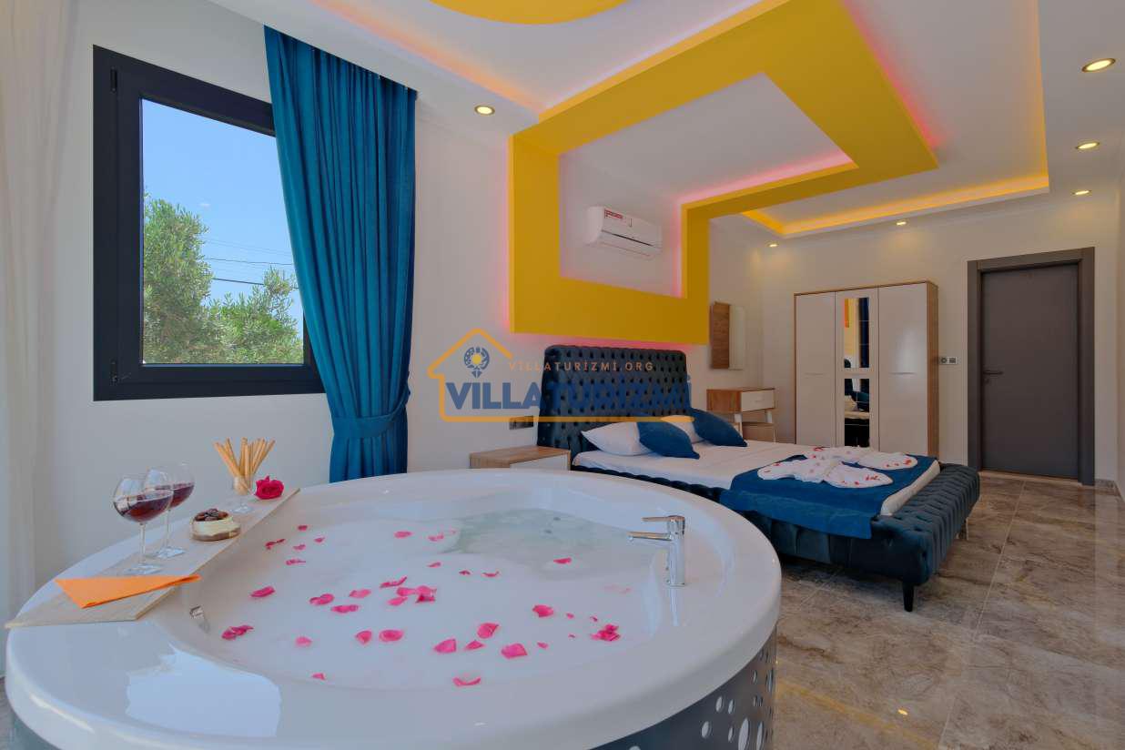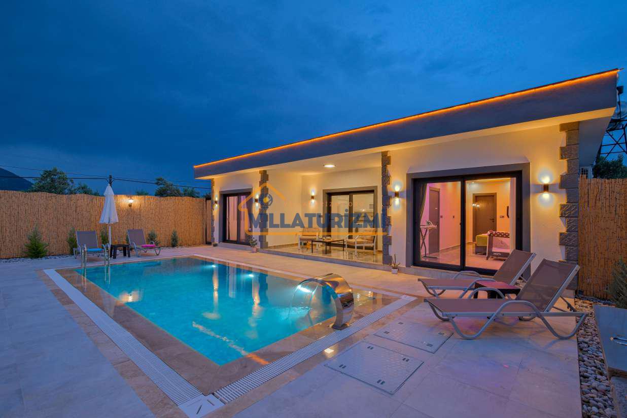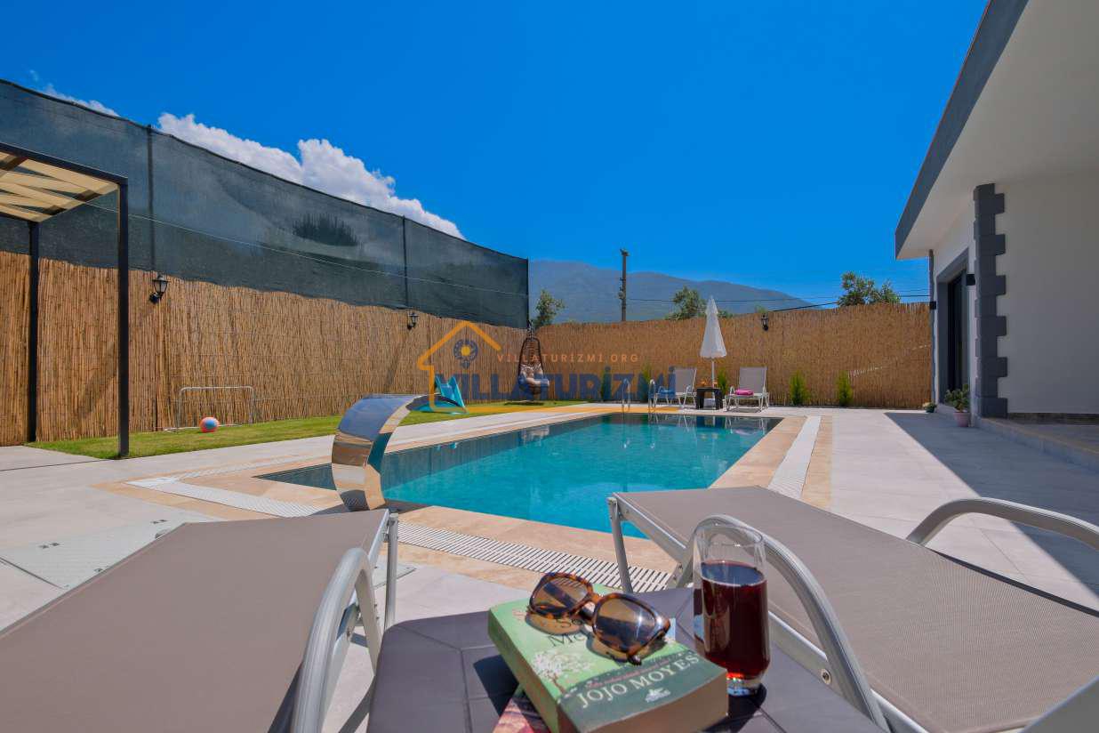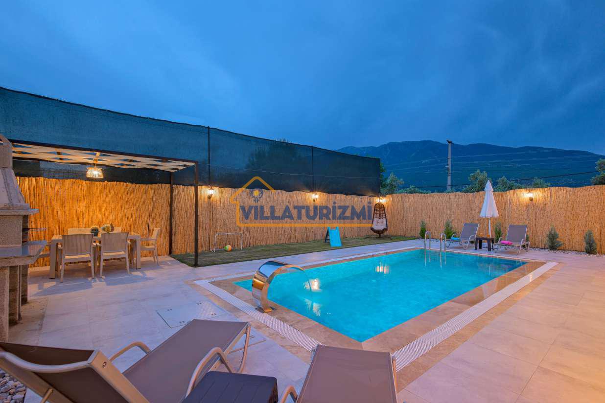 Özel havuzlu yazlık villamız, 2 yatak odasında 1 çift kişilik ve 2 tek kişilik yatak bulunmaktadır.