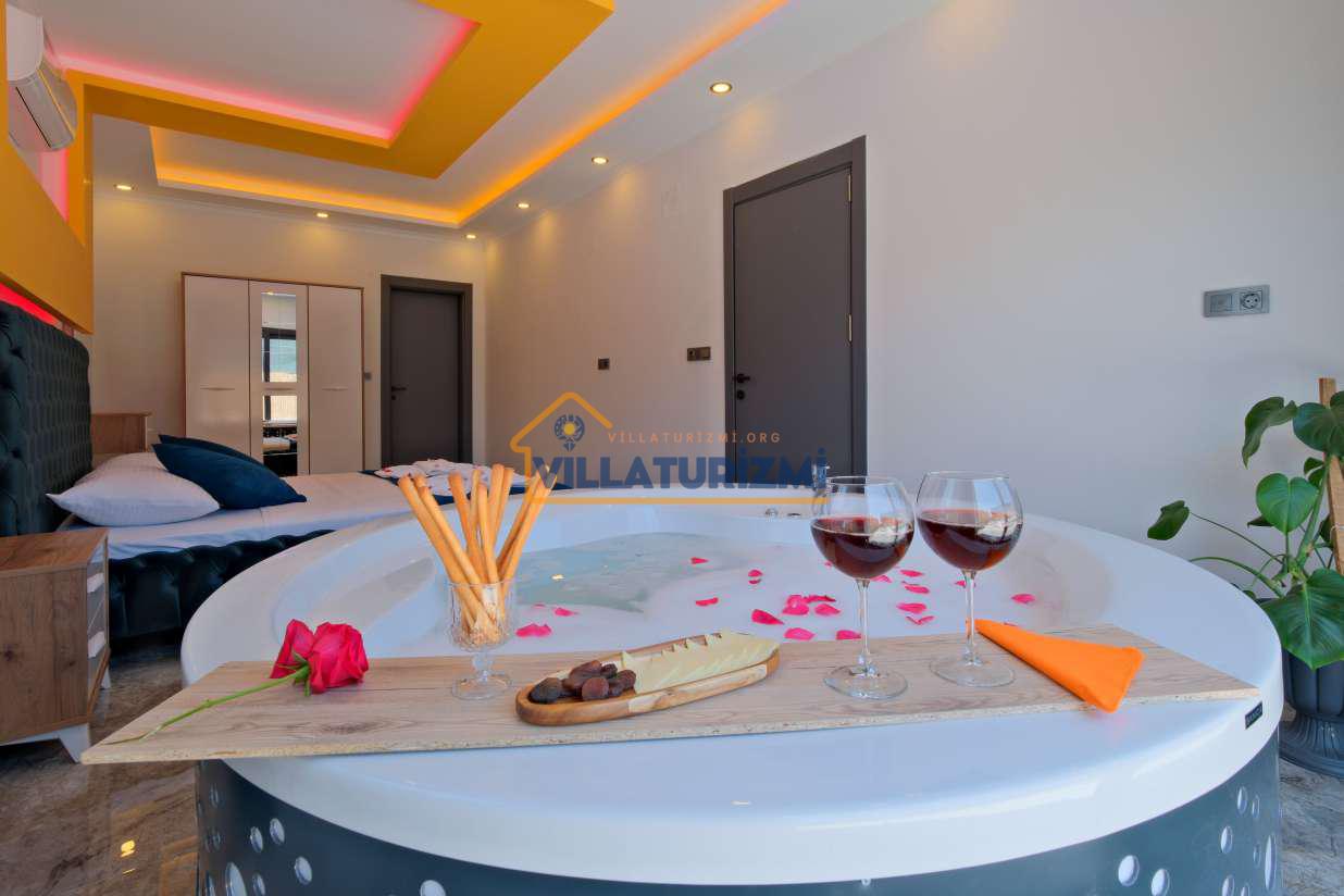 1.Yatak Odası:1 adet çift kişilik yatak, komodin, klima banyo ve jakuzi bulunmaktadır.