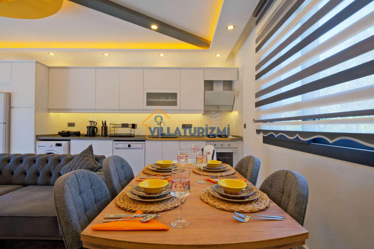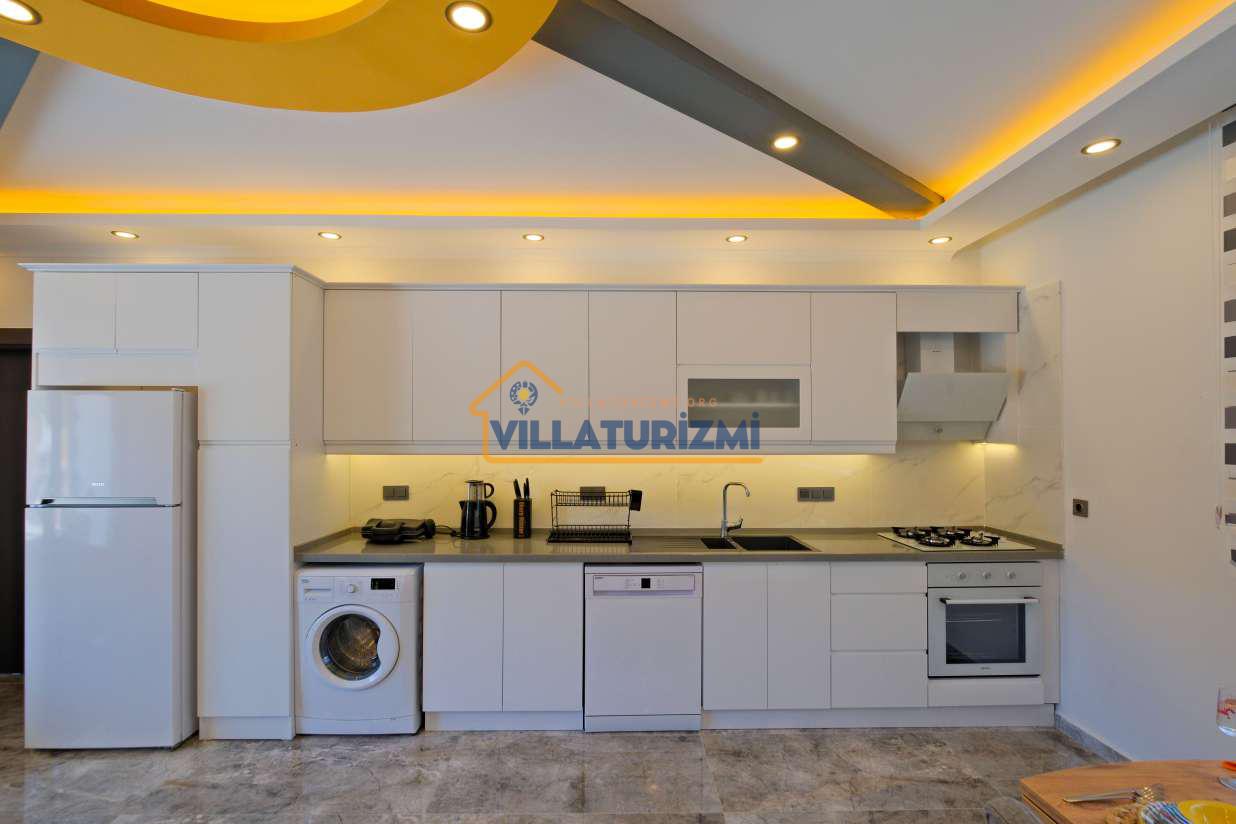Mutfak:Lüks ve geniş bir mutfağa sahiptir. Buzdolabı, bulaşık makinası, çamaşır makinesi, fırın, 4´lü ocak, kettle, 8 kişilik yemek takımı, tava, tencereler, çatal, bıçak vb. Mutfağımız ´da misafirlerimiz için her şey düşünülmüştür.