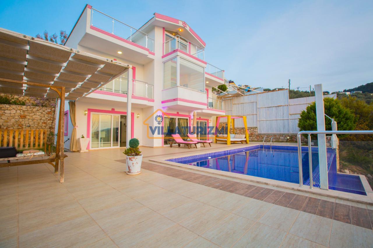 Villa Pinky, Kalkan Akbel'de konumlanmış 2 yatak odalı 4 kişilik doğa ve deniz manzaralı, jakuzili, sinema salonlu, korunaklı havuzlu, çok özel yazlık kiralık villamız'dır. Villamızda özel yüzme havuzu, havuz terası, geniş oturma odası, açık plan mutfak, oyun odası, sinema odası, spor odası, Türk hamamı, geniş ultra lüks jakuzili ve lüks 2 yatak odası mevcuttur.