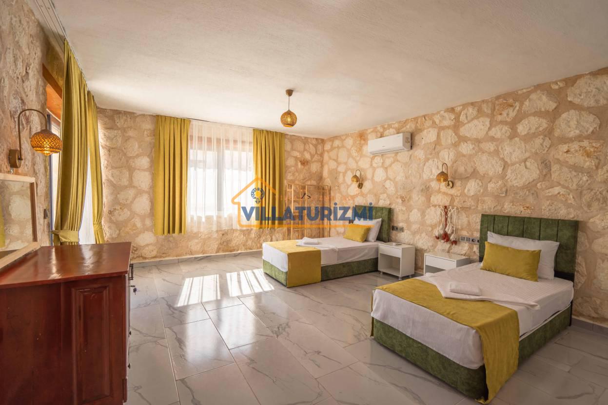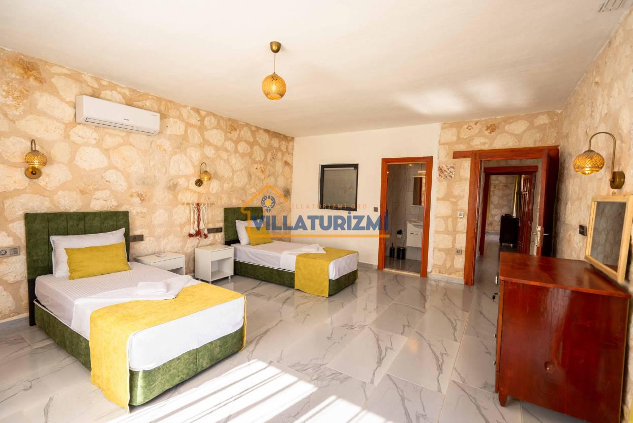 2. Yatak Odası: 2 tek kişilik yatak, klima, komodin, makyaj masası, elbise dolabı, banyo tuvalet bulunmaktadır.