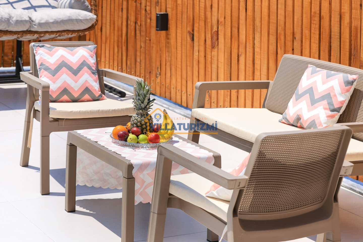 Villa Seyran'ın en önemli özelliklerinden biri de, özel korunaklı havuzudur. Misafirlerin mahremiyetini ön planda tutarak tasarlanan havuz, dışarıdan gözetlenmeden rahatça yüzme ve güneşlenme imkanı sunmaktadır. Özellikle yaz aylarında serinlemek ve güneşin tadını çıkarmak isteyen konuklar için bu havuz, eşsiz bir olanak sağlamaktadır. Havuz çevresinde yer alan rahat şezlonglar ve dinlenme alanları, tatilin keyfini çıkarırken aynı zamanda dinlenme imkanı da sunmaktadır. Bu korunaklı alan, tatilcilerin sevdikleriyle birlikte huzurlu anlar geçirebilecekleri bir ortam yaratmaktadır.