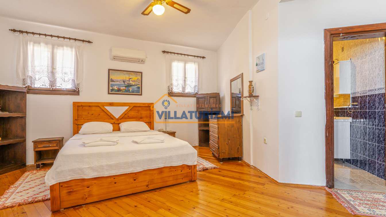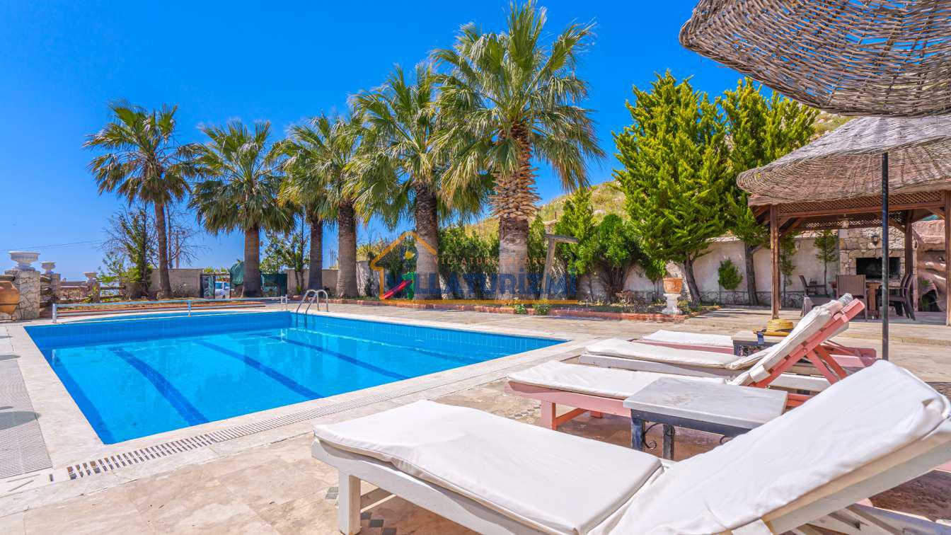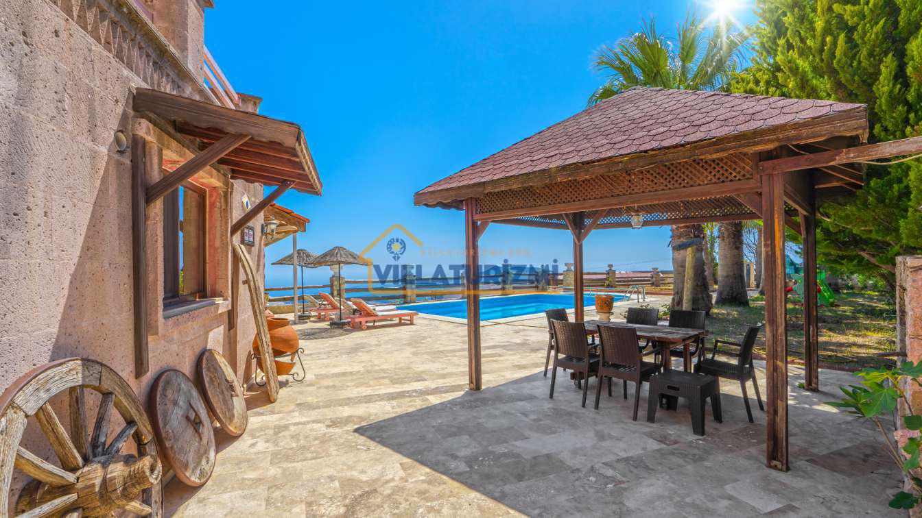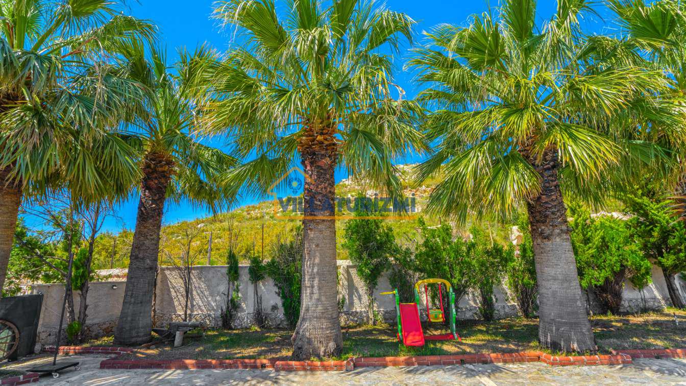 Ayrıca, geniş bahçe alanı villanın sunduğu olanaklar arasında öne çıkmaktadır. Bahçe, palmiye ağaçlarıyla süslü olup, misafirlerin doğayla iç içe bir ortamda dinlenmelerine olanak tanır. Çocuk oyun alanı, masa tenisi ve güneşlenme alanları sayesinde, aileler ve arkadaş grupları için çeşitli aktiviteler yapma imkanı sağlanır. Şezlonglarda uzanarak deniz manzarasını izlemek veya havuzda serinlemek, tatilin tadını doyasıya çıkarmak için ideal seçeneklerdir. Doğanın güzellikleri eşliğinde geçirilen saatler, misafirlerin stres ve yoğunluk dolu günlük yaşamlarından uzaklaşmalarını sağlayarak, zihinsel ve fiziksel bir yenilenme süreci başlatmaktadır.