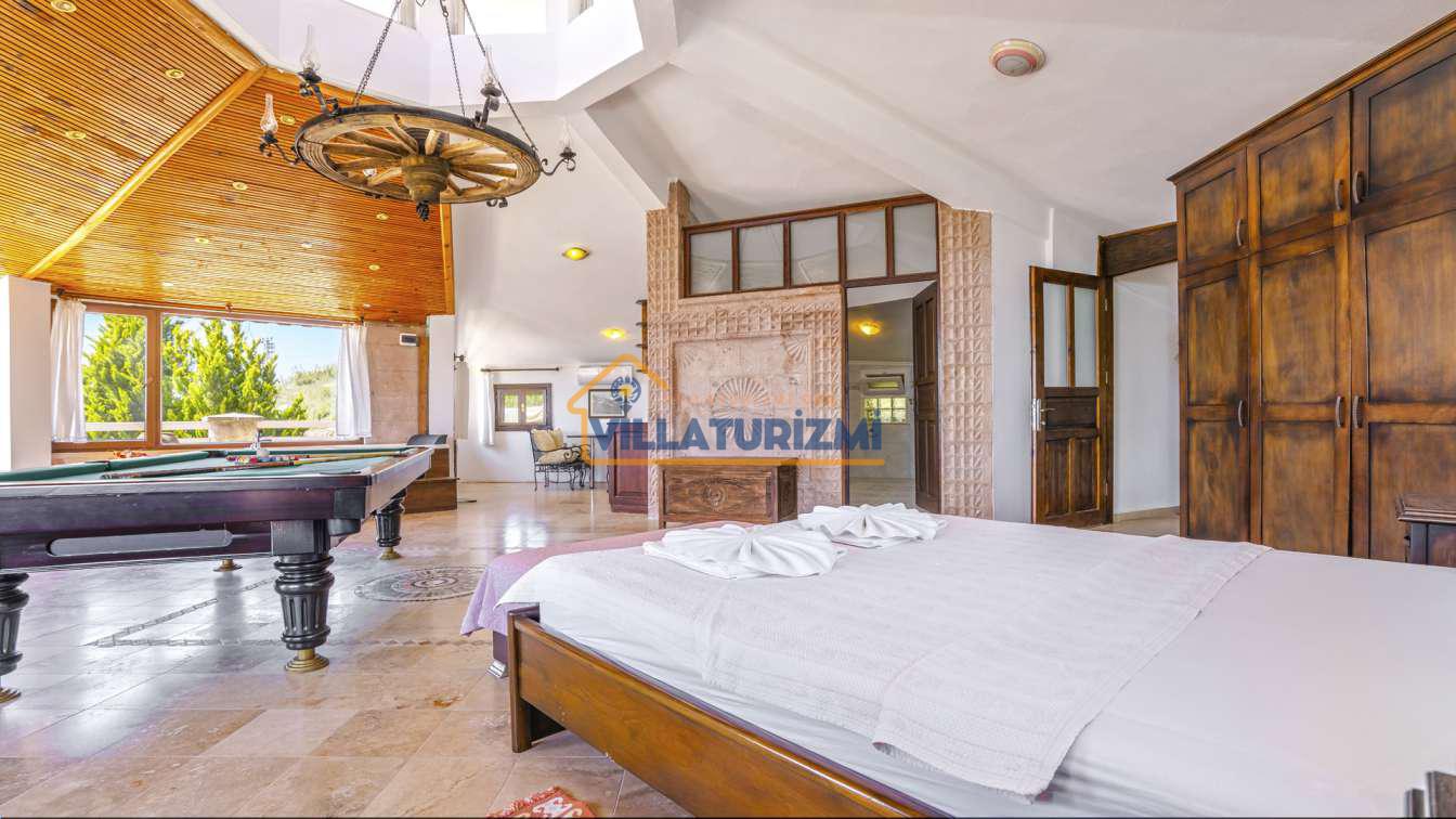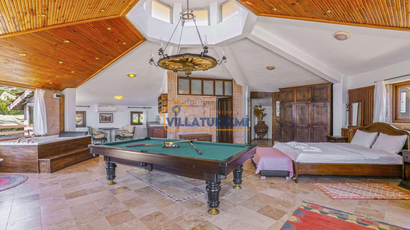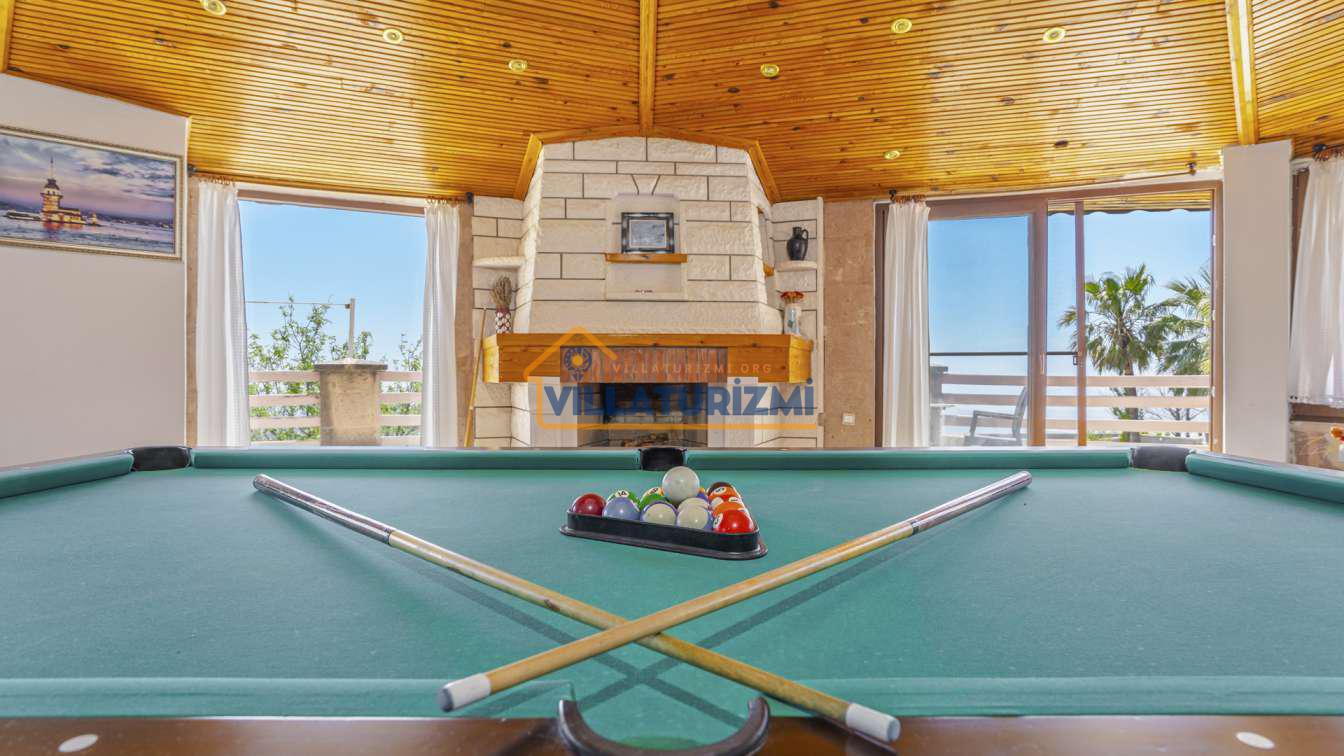 Villamızın ana yatak odasında bulunan bilardo ve çift kişilik jakuzi ise konuklara eğlenceli ve rahatlatıcı bir zaman geçirme imkanı sunmaktadır. Ayrıca geniş bahçe alanında yer alan palmiye ağaçları, çocuk oyun alanı, masa tenisi, güneşlenme alanı ve şezlonglar sayesinde konuklar, doğanın keyfini çıkarırken dinlenme ve eğlence imkanlarından da faydalanabilmektedir.