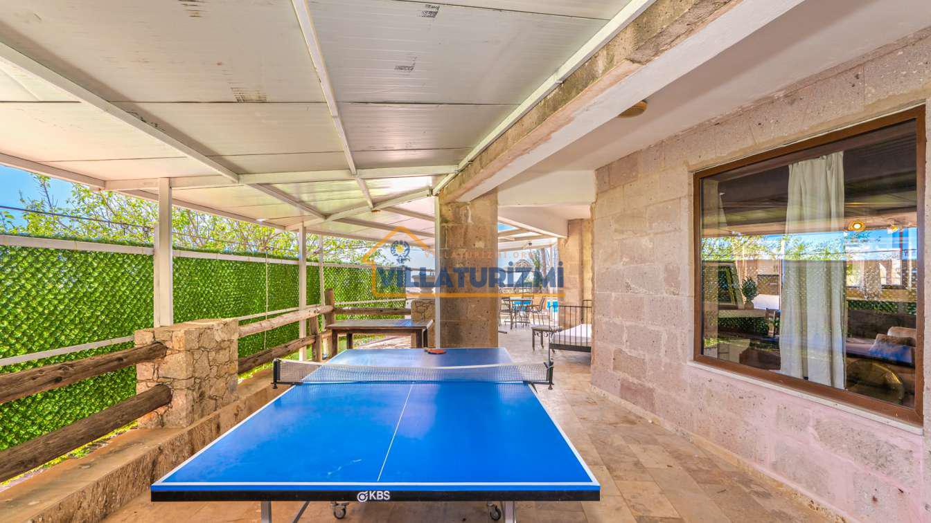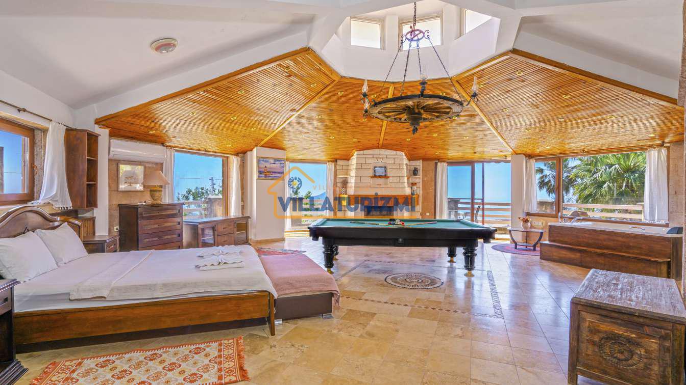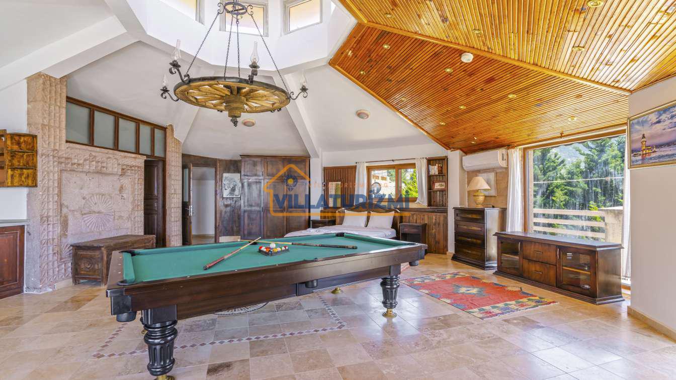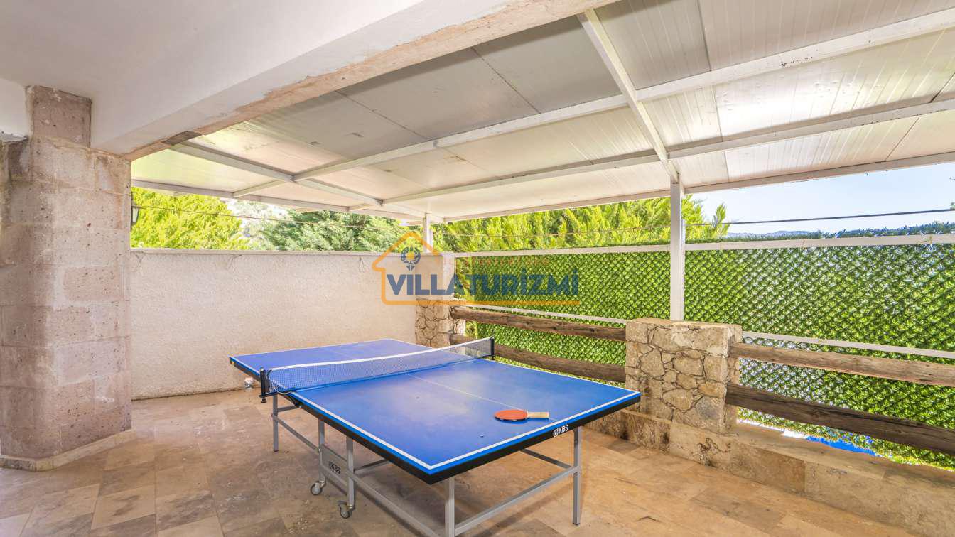 Villamızın ana yatak odasında bulunan bilardo ve çift kişilik jakuzi ise konuklara eğlenceli ve rahatlatıcı bir zaman geçirme imkanı sunmaktadır. Ayrıca geniş bahçe alanında yer alan palmiye ağaçları, çocuk oyun alanı, masa tenisi, güneşlenme alanı ve şezlonglar sayesinde konuklar, doğanın keyfini çıkarırken dinlenme ve eğlence imkanlarından da faydalanabilmektedir.