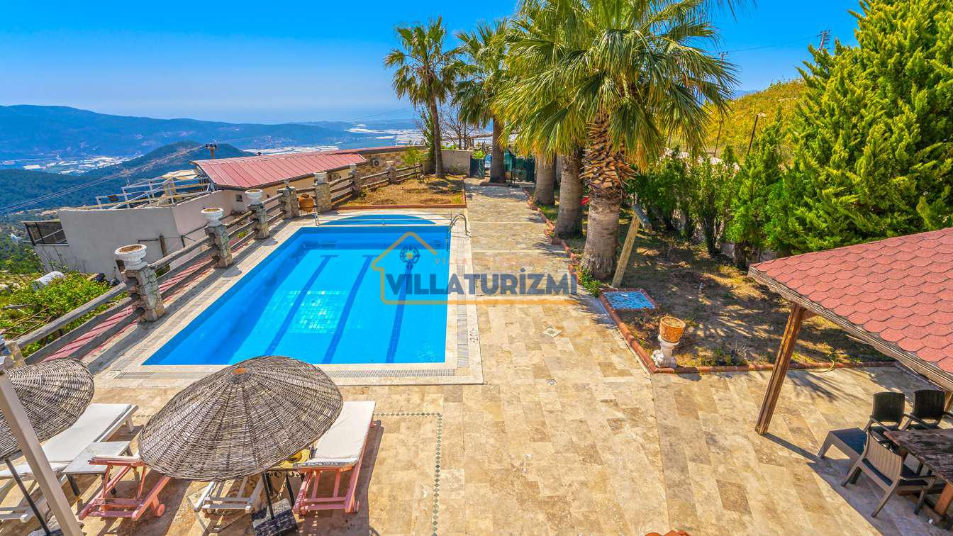 Villa’nın en dikkat çeken özelliklerinden biri, içerisinde bulunan çocuk havuzudur. Bu özel alan, çocukların serin suların tadını güvenli bir biçimde çıkarmasına olanak tanırken, aileler için de için rahat bir ortam yaratmaktadır. Havuzun yanı sıra, 65 metrekarelik geniş yüzme havuzu da misafirlerin tüm gün boyunca rahatça vakit geçirebilecekleri bir alan sağlamaktadır. Panoramik deniz manzarası, tatil boyunca misafirlere huzur verici bir atmosfer sunarak, unutulmaz anılara ev sahipliği yapmaktadır.