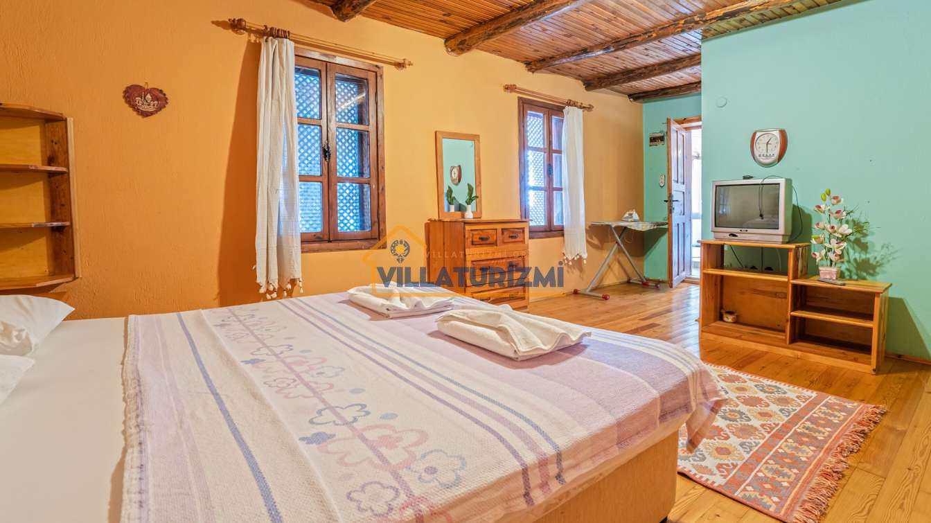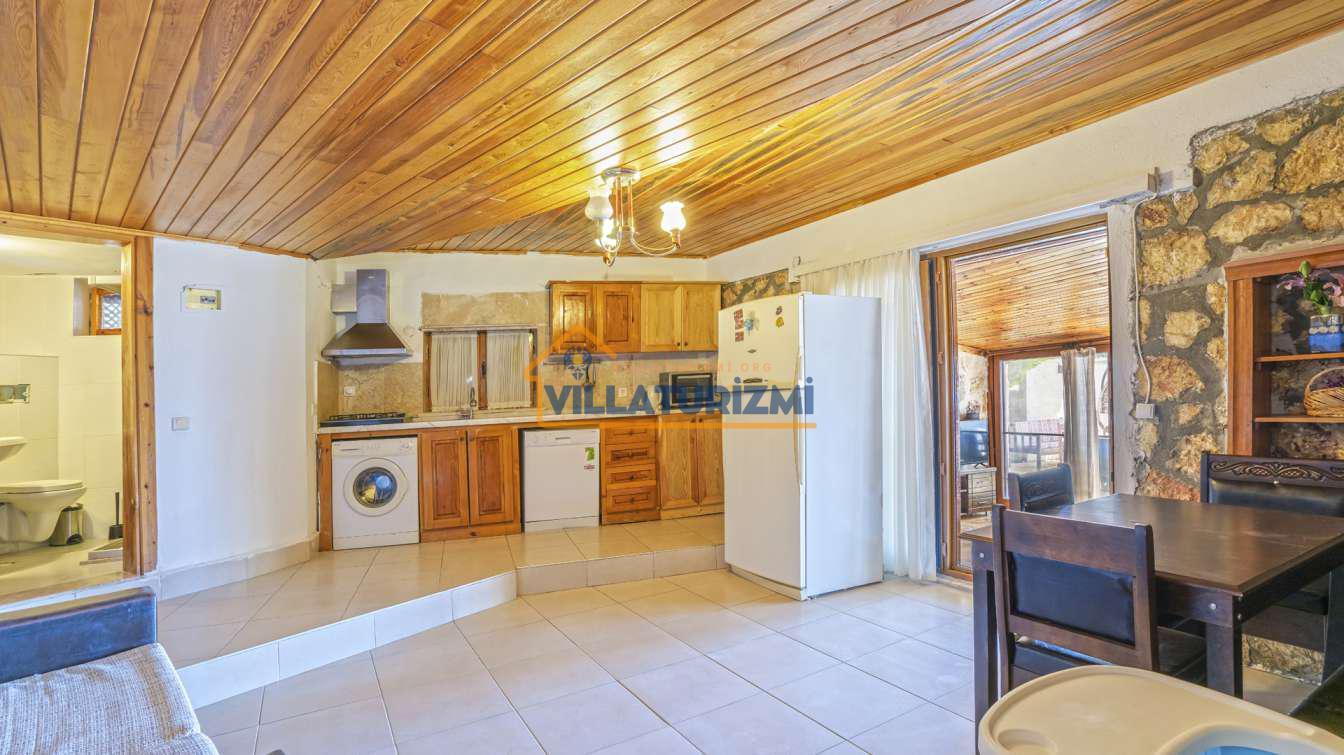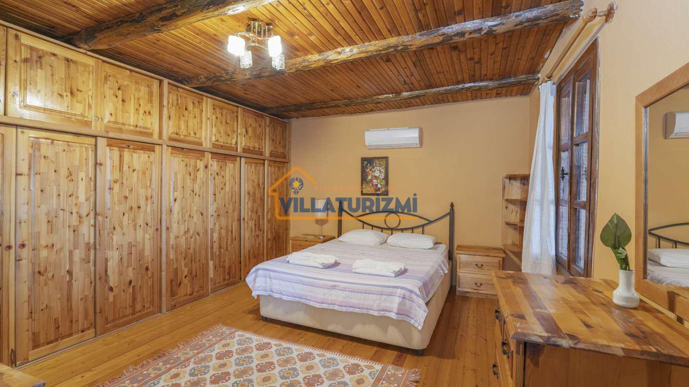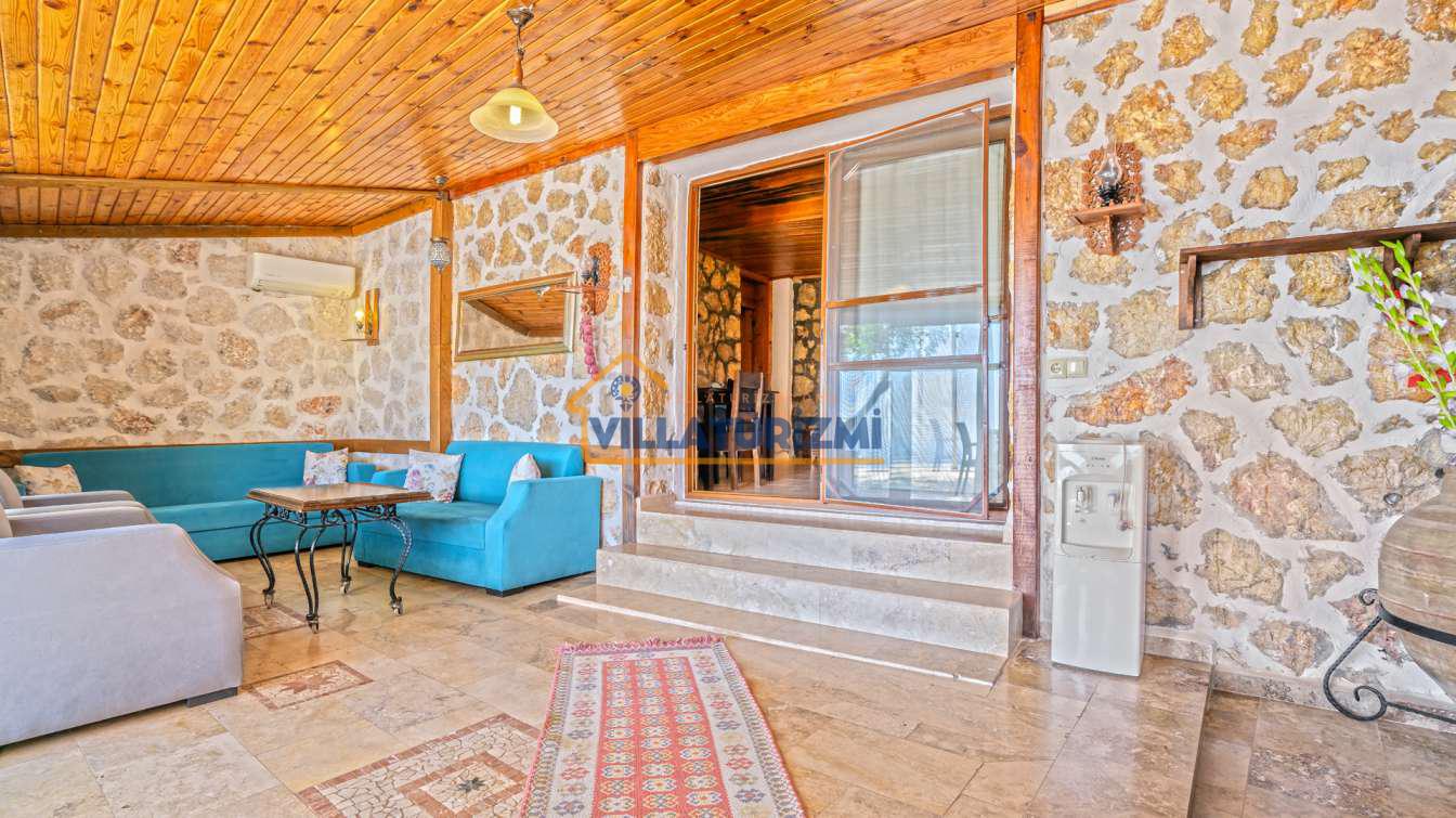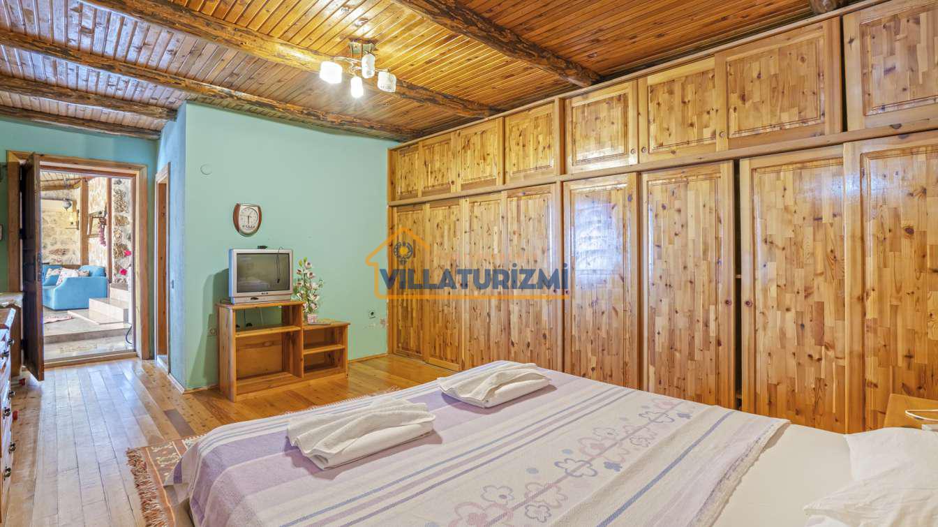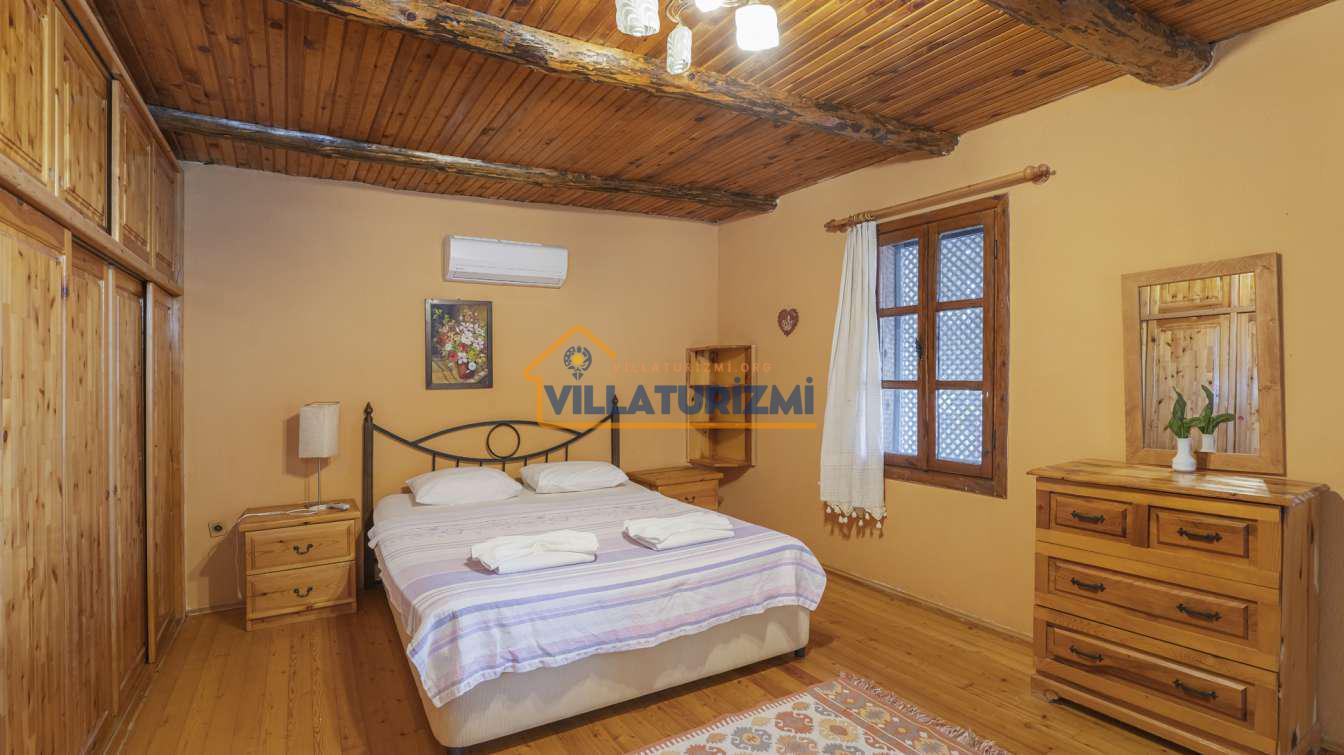 Villa'nın iç mekan tasarımı, estetik bir anlayış ve işlevsellik gözetilerek oluşturulmuştur. Her detayın özenle düşünüldüğü bu mekan, otantik ve şık bir atmosfere sahiptir. Yatak odaları, konforlu yatakları ve zarif mobilyalarıyla misafirlerin rahat bir uyku çekmelerini sağlamaktadır. Ayrıca, villa içerisinde yer alan tam donanımlı mutfak, konukların kendi yemeklerini hazırlama imkanı sunmakla kalmayıp, aynı zamanda yerel lezzetleri keşfetmeleri adına da bir fırsat oluşturmaktadır. Misafirler, açık terasta yer alan yemek alanında sevdikleriyle keyifli sofralar kurarak, hem yemeklerini hem de sohbetlerini paylaşabilirler.