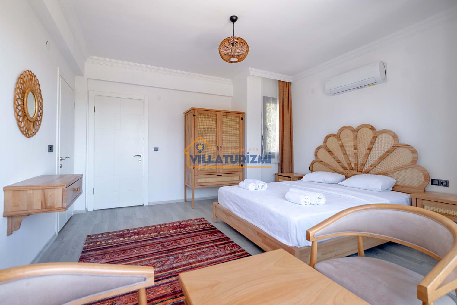 2. Yatak Odası:Çift kişilik yatak, klima, elbise dolabı, makyaj masası, giyinme odası, banyo ve lavabo bulunmaktadır.