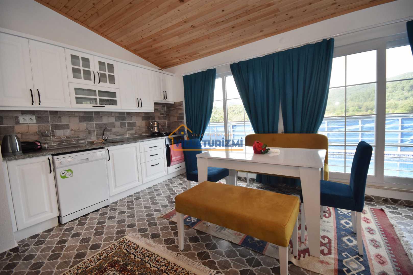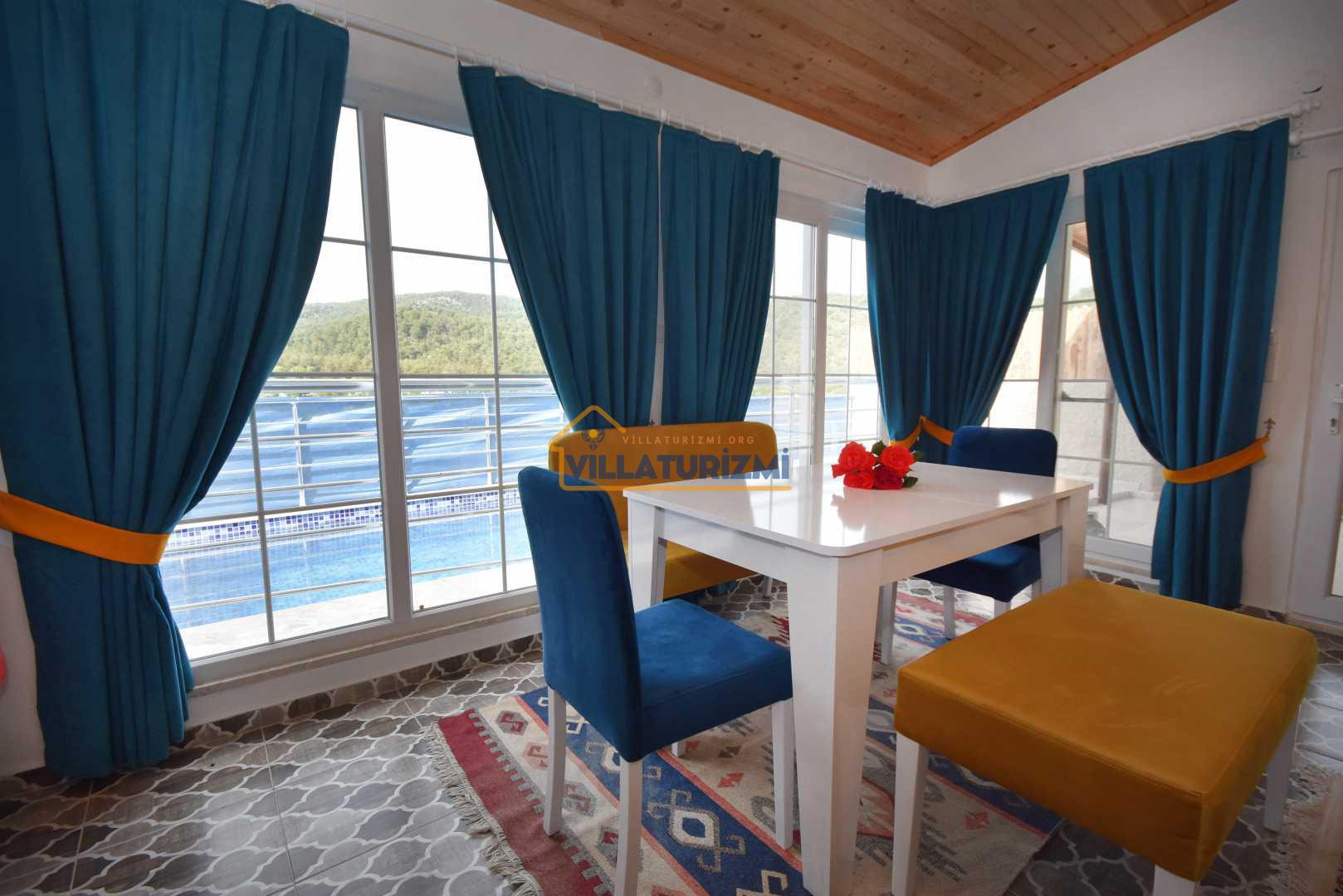 Villa Teo 3'te 1 adet yatak odası ve yüzme havuzuna açılan açık mutfaklı oturma/yemek odasından oluşur. Mutfak kısmında bulunan yemek masası 4 kişi kapasitelidir.