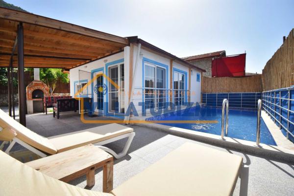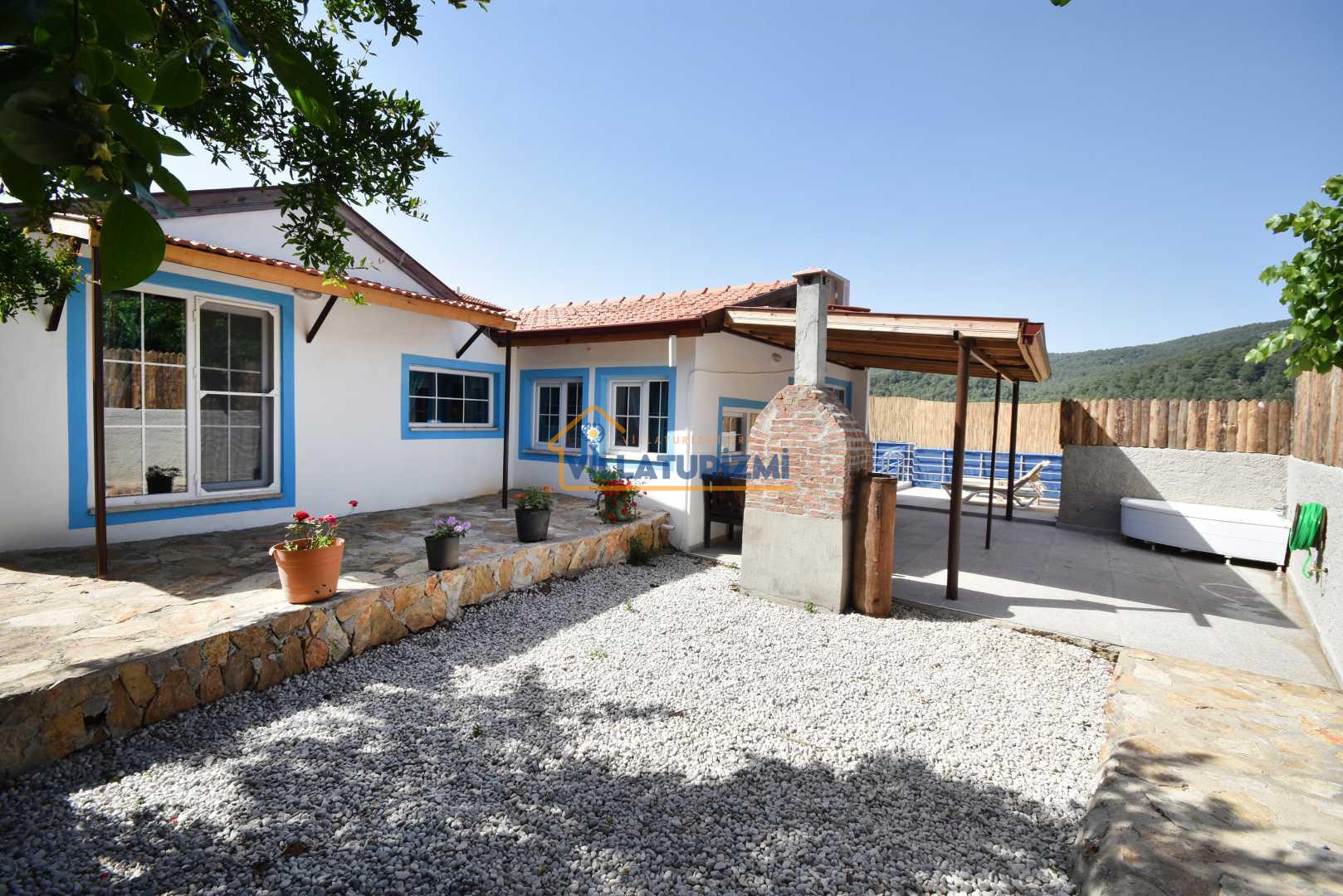 Özellikler: Özel açık yüzme havuzu, güneşlenme alanı, şezlonglar, özel bahçe, özel park yeri ve mangal alanı.