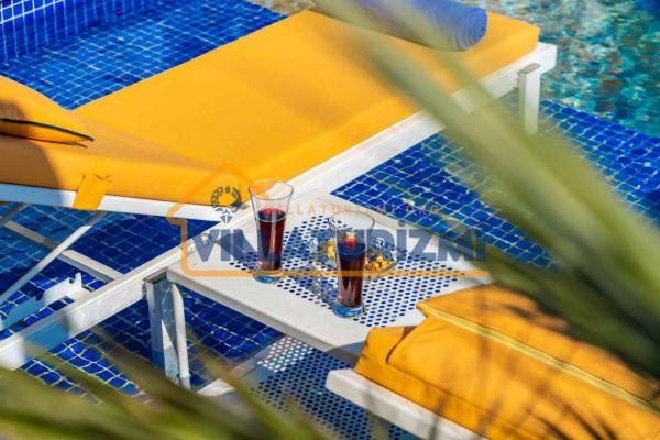 Kiralık Villa’nın tasarımı, hem şıklığı hem de fonksiyonelliği bir araya getirmektedir. İç mekânda kullanılan kaliteli ve lüks eşyalar, konforu ön planda tutarken, estetik bir atmosfer sunmaktadır. Her ayrıntı incelikle düşünülmüş olup, misafirlerin rahatı ve huzuru için gerekli olan her şey eksiksiz bir şekilde yer almaktadır. Misafirlerin, yıllardır biriktirdikleri yorgunlukları geride bırakarak, kendilerini şımartabilecekleri bir ortamda bulunmaları, tatilin en önemli unsurlarından birisidir. Fotoğraflardan da görüldüğü gibi bir deniz manzarasına sahip tatil villamız şık bir mimariye sahiptir. İçerisinde kaliteli ve lüks eşyalar kullanılmış olup, siz değerli misafirlerimizin rahatlığı için her şey en ince ayrıntısına kadar düşünülmüştür.