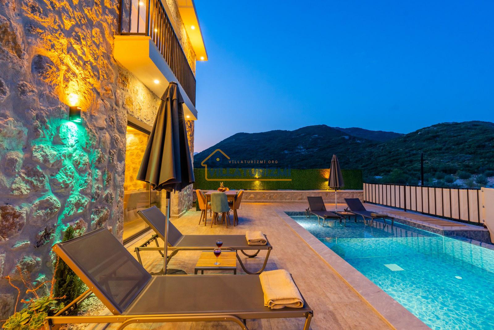 Kalkan İkizce'de bulunan villamızın etrafı tamamen korunaklı hale getirilmiş olup çekirdek aileler ve balayı çiftleri için muhteşem bir tatil imkanı sunmaktadır.