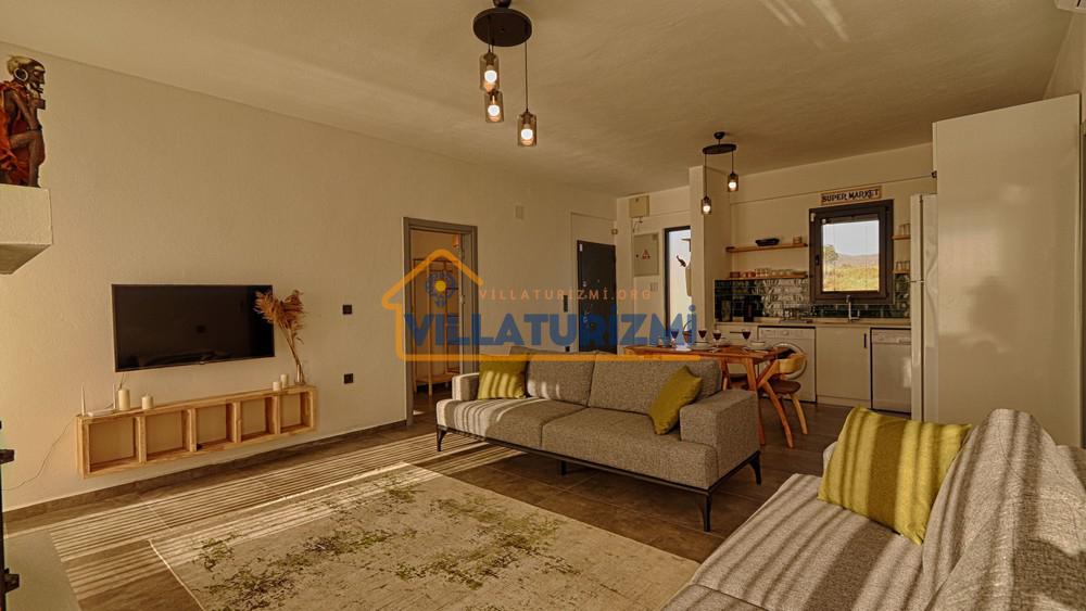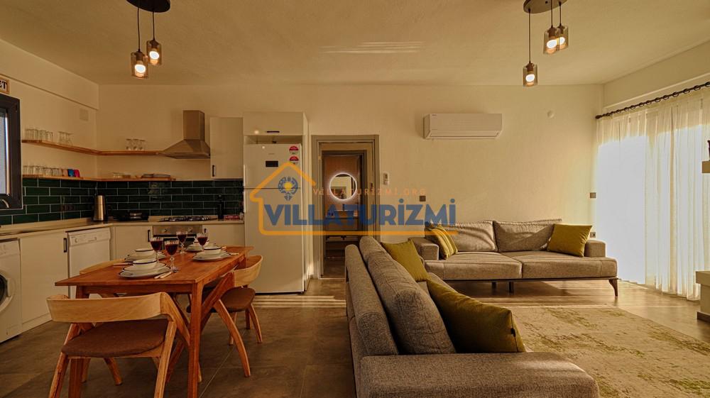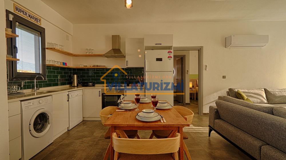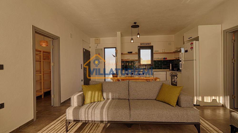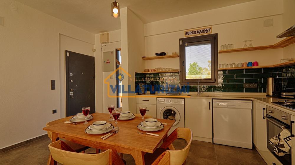 Salon, Mutfak :salonunda oturma grubu, televizyon, uydu alıcı, Modern Amerikan tarzı mutfağımızda buzdolabı, bulaşık makinesi, çamaşır makinesi, tost makinesi, elektrikli su ısıtıcı, ankastre 4'lü ocak, klima, yemek masası, gerekli tüm mutfak araç ve gereçleri bulunmaktadır.